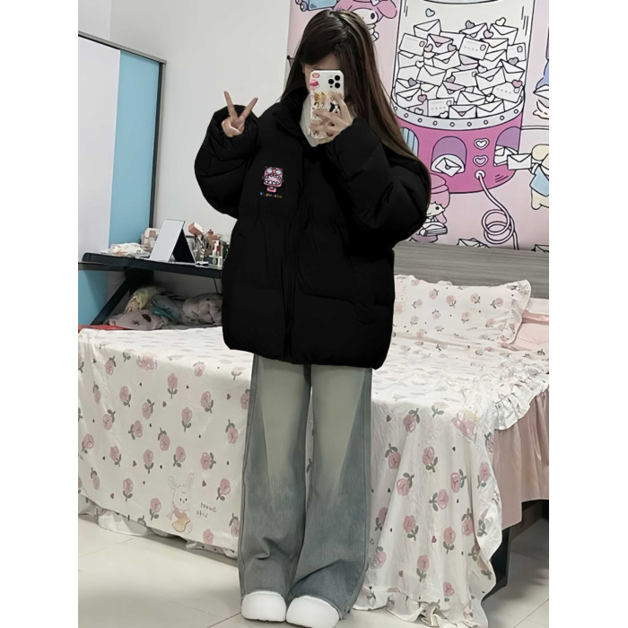 黑色羽絨棉服女大童冬季2025新款初中高中學生加厚麵包服外套棉襖