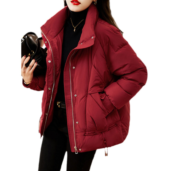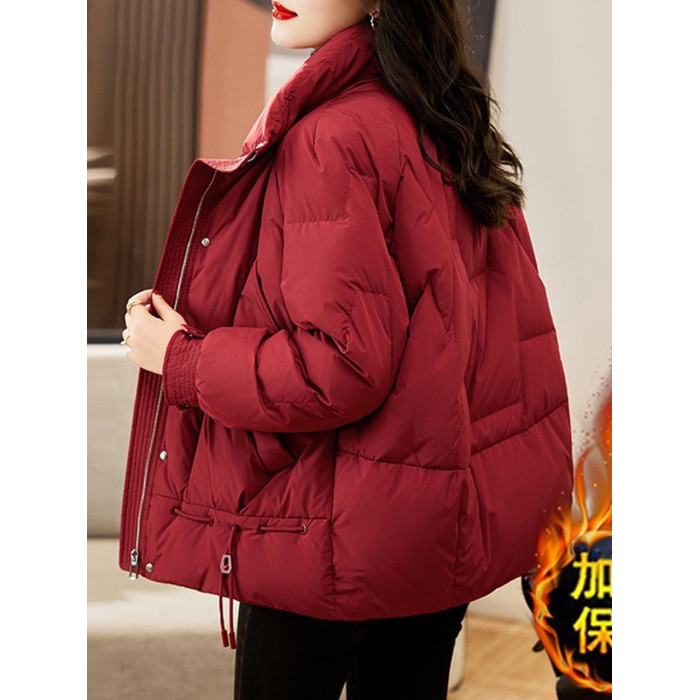 今年流行爆款紅色羽絨棉服女款2025新款冬季加厚設計感棉衣外套女