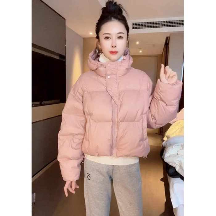 高級感連帽粉色羽絨棉服女冬季加厚保暖麵包服小個子短款棉衣外套