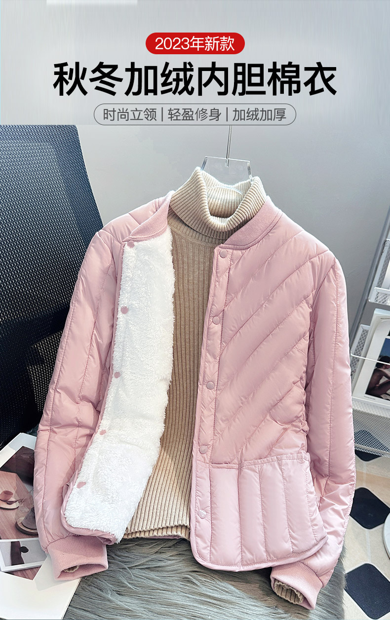 2024秋冬新加絨加厚內膽棉衣女工作服內穿小棉襖學生打底羽絨棉服