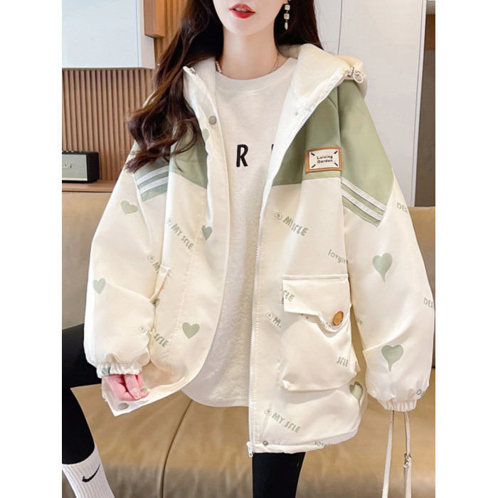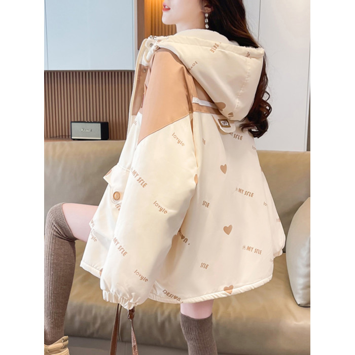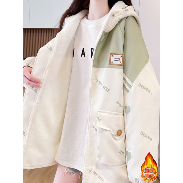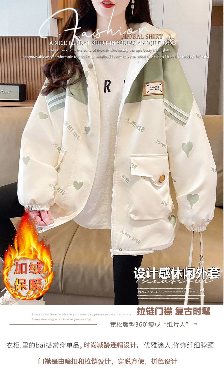工裝沖鋒衣女春秋冬季加絨加厚外套新款爆款初中高中學生大童風衣