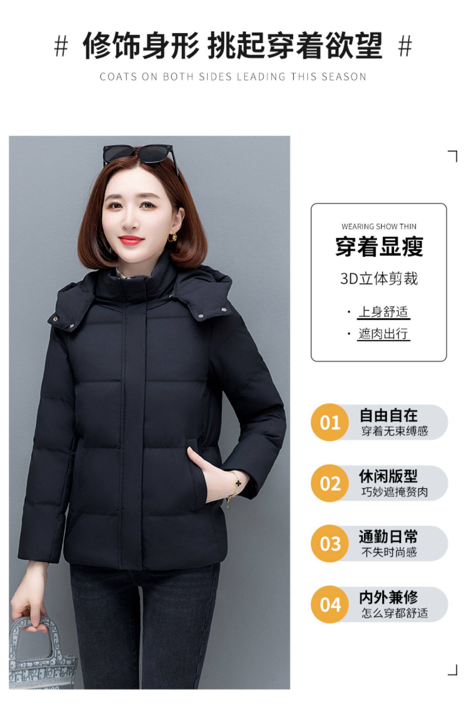 羽絨棉衣女短款冬裝2025新款中年媽媽加厚棉服連帽可拆卸女式棉襖