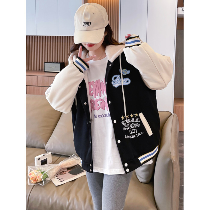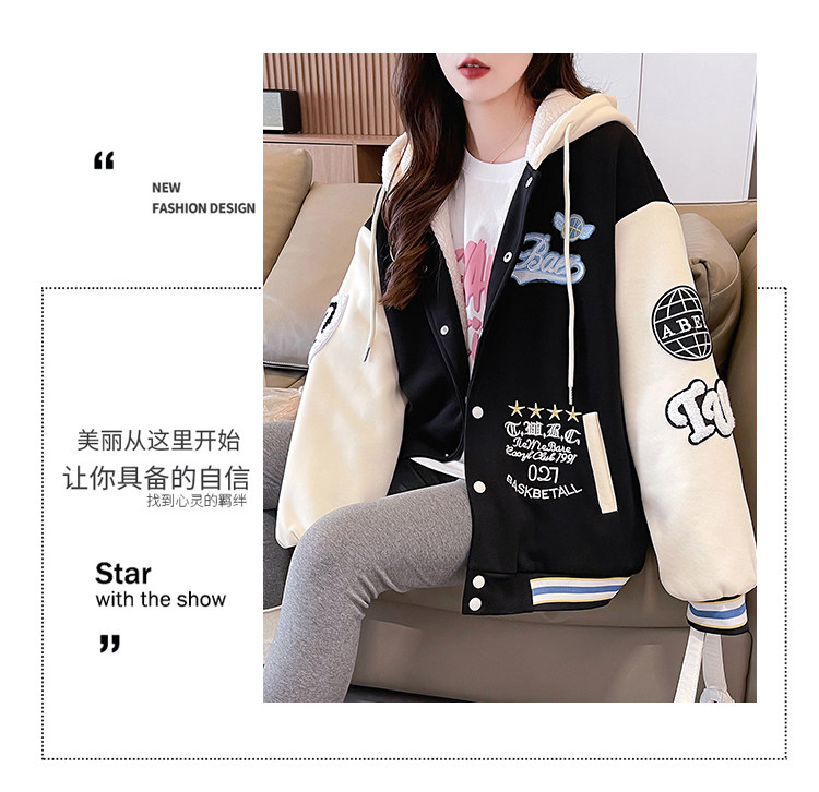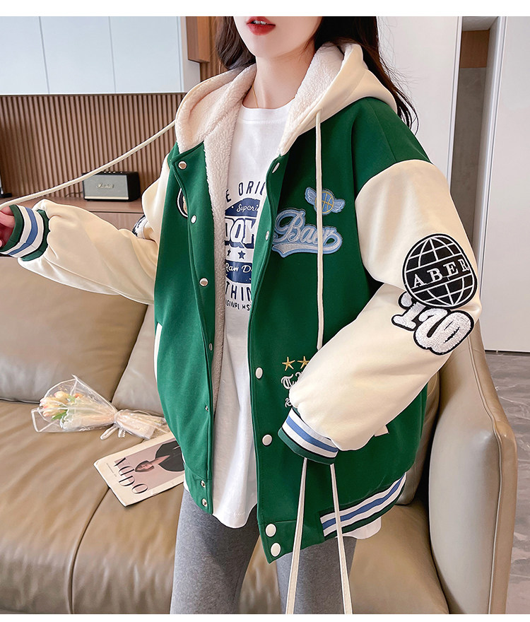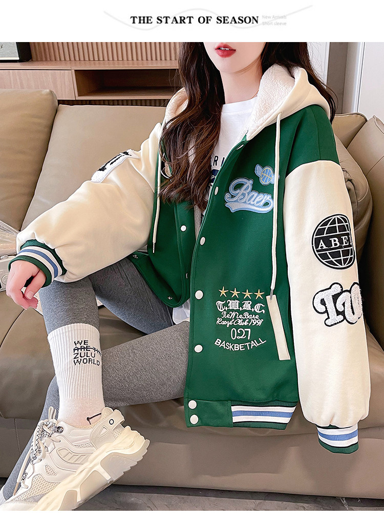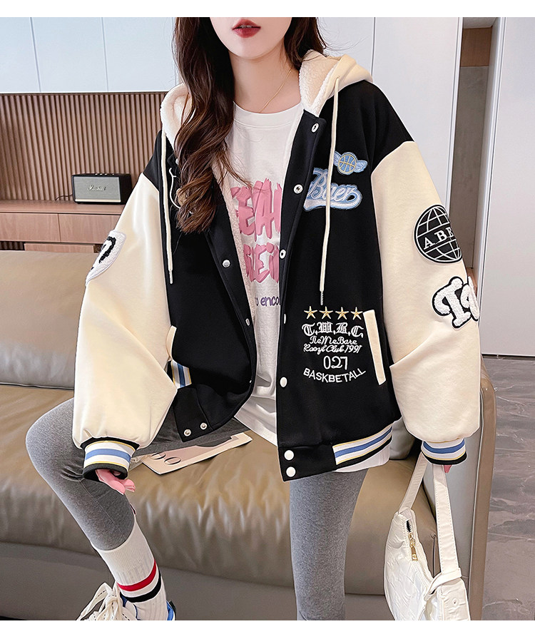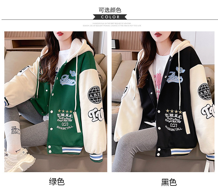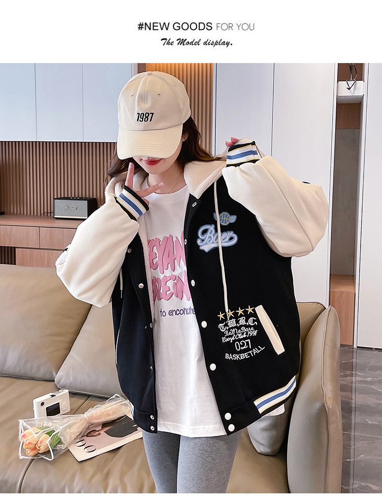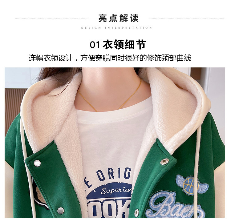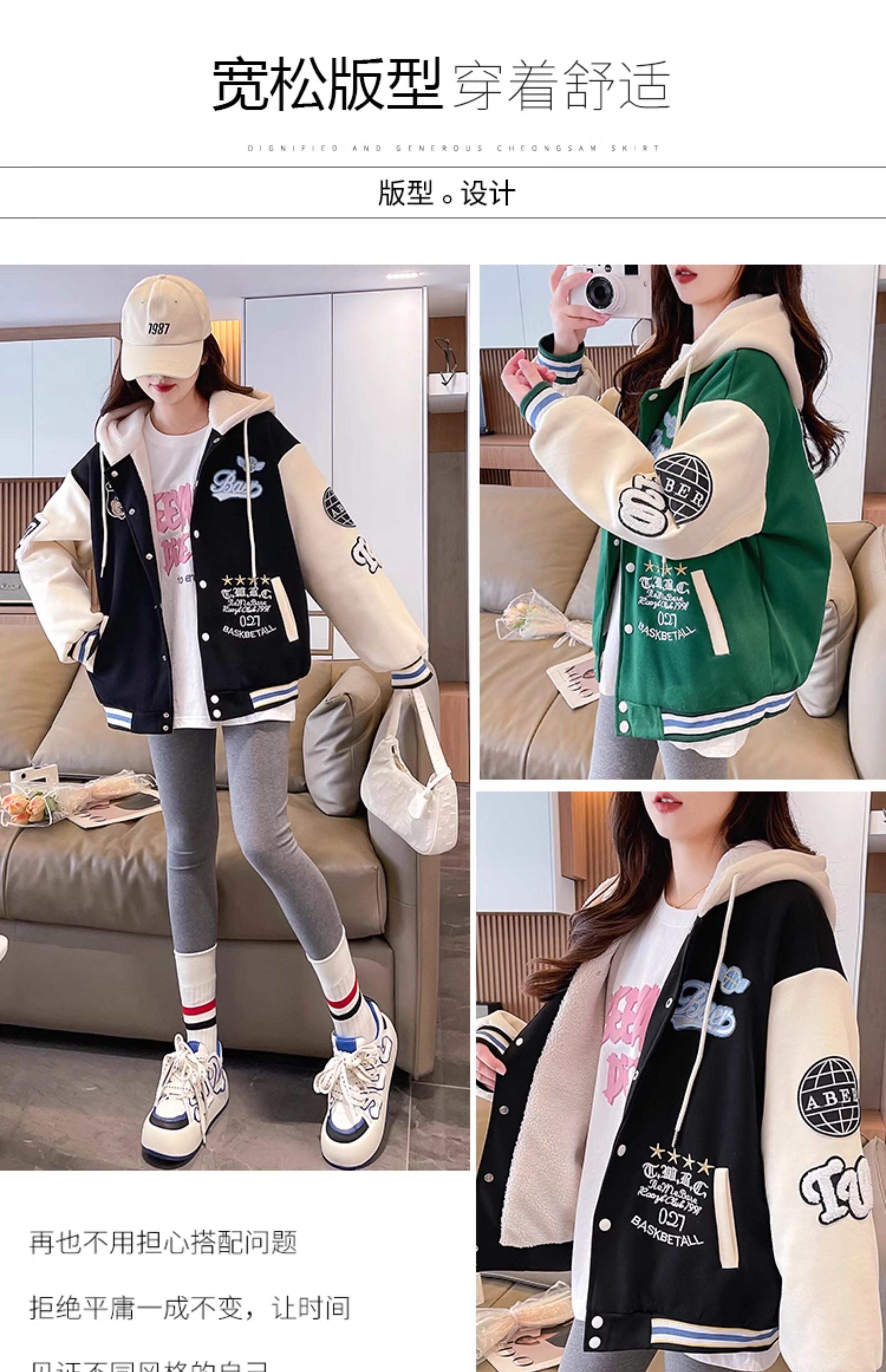 羊羔毛棉服女秋冬季小個子2025新款中學生衛衣加絨加厚棒球服外套