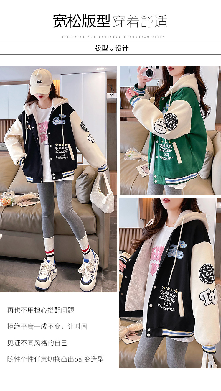羊羔毛棉服女秋冬季小個子2026新款中學生衛衣加絨加厚棒球服外套
