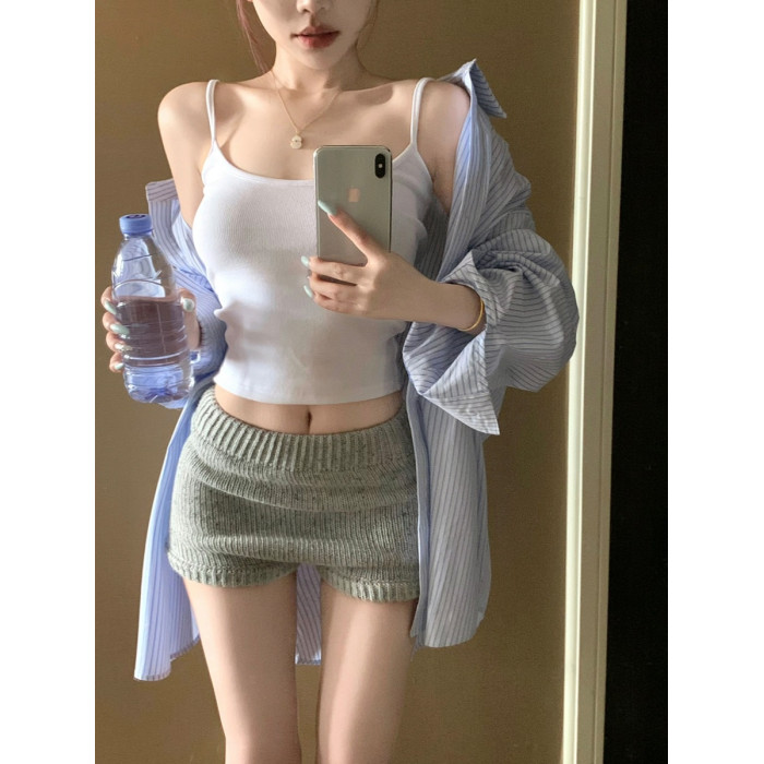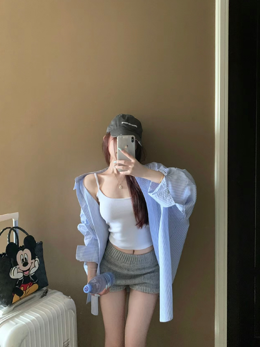 條紋度假休閒長袖襯衫女秋冬慵懶風韓版寬松曡穿上衣內搭襯衣外套
