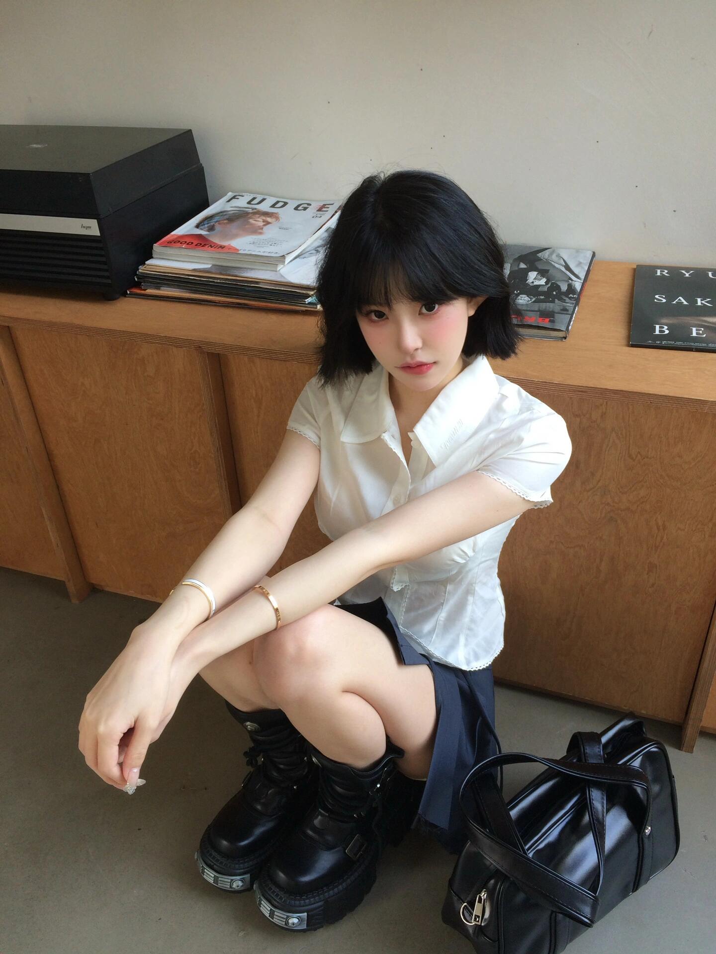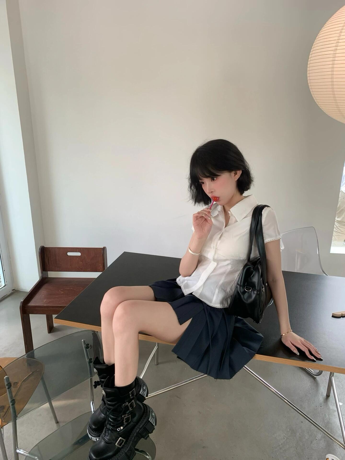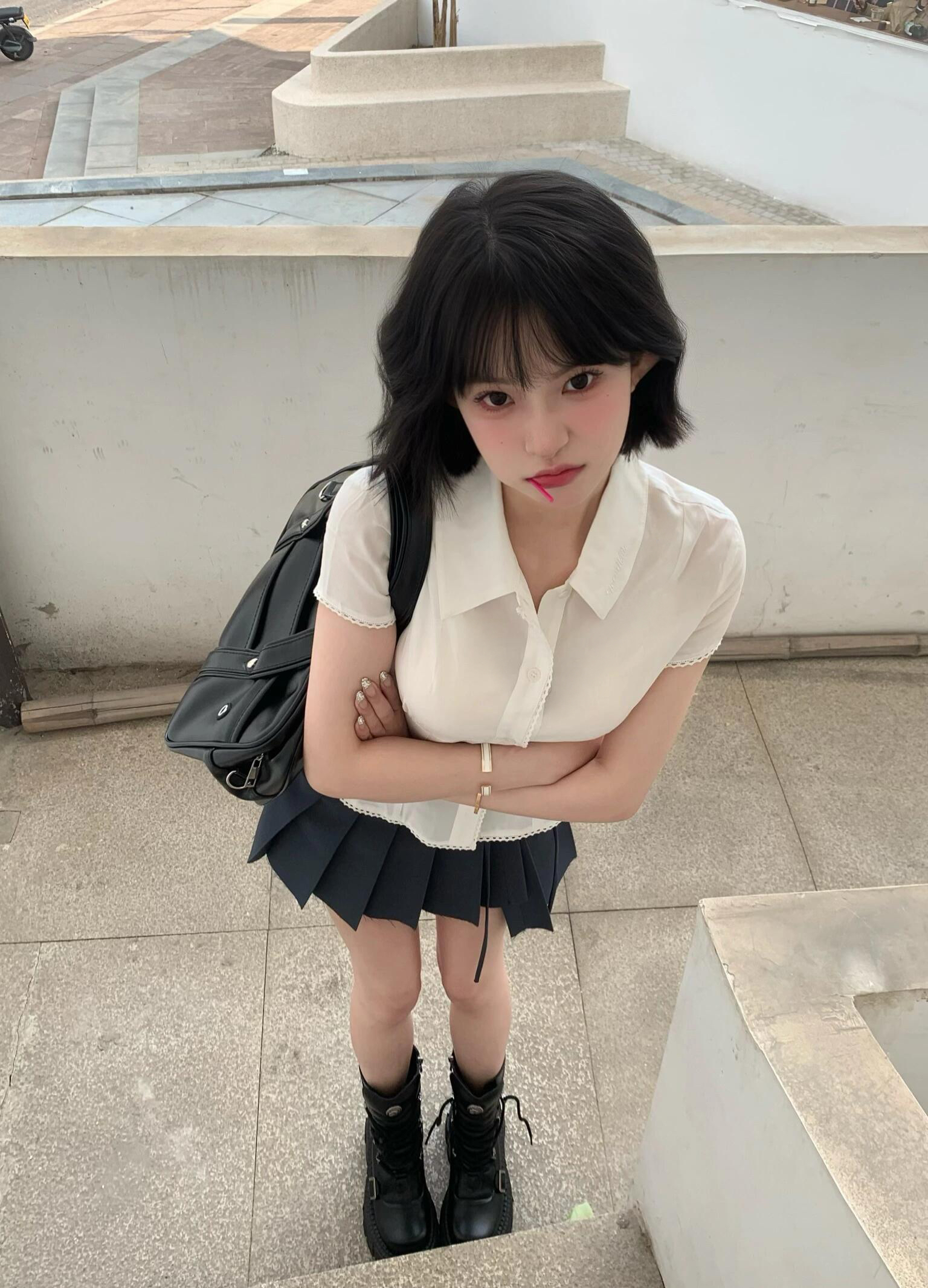 白色蕾絲拼接短袖襯衫女夏季2024新款修身顯瘦小衆甜辣妹短款上衣