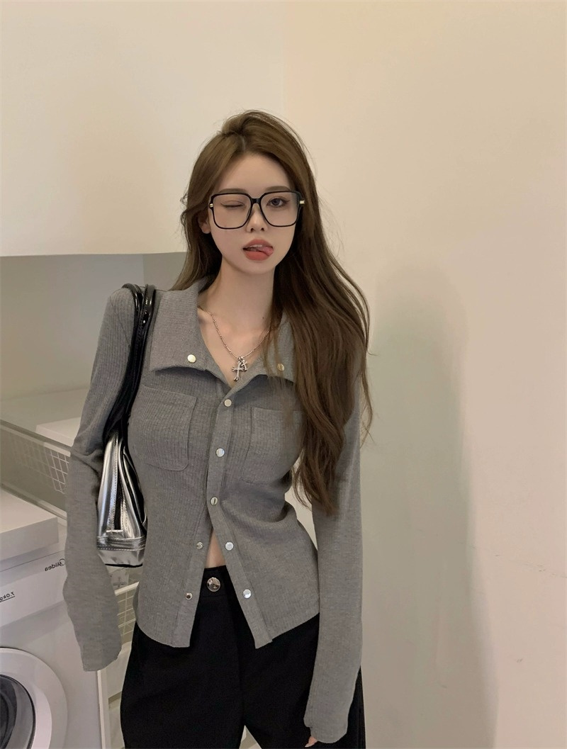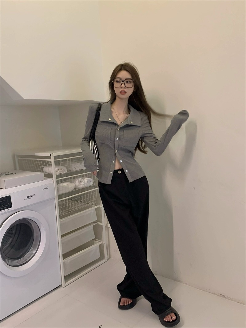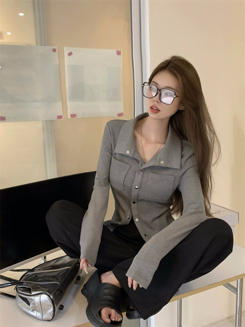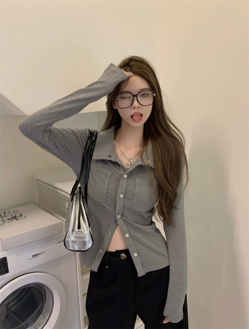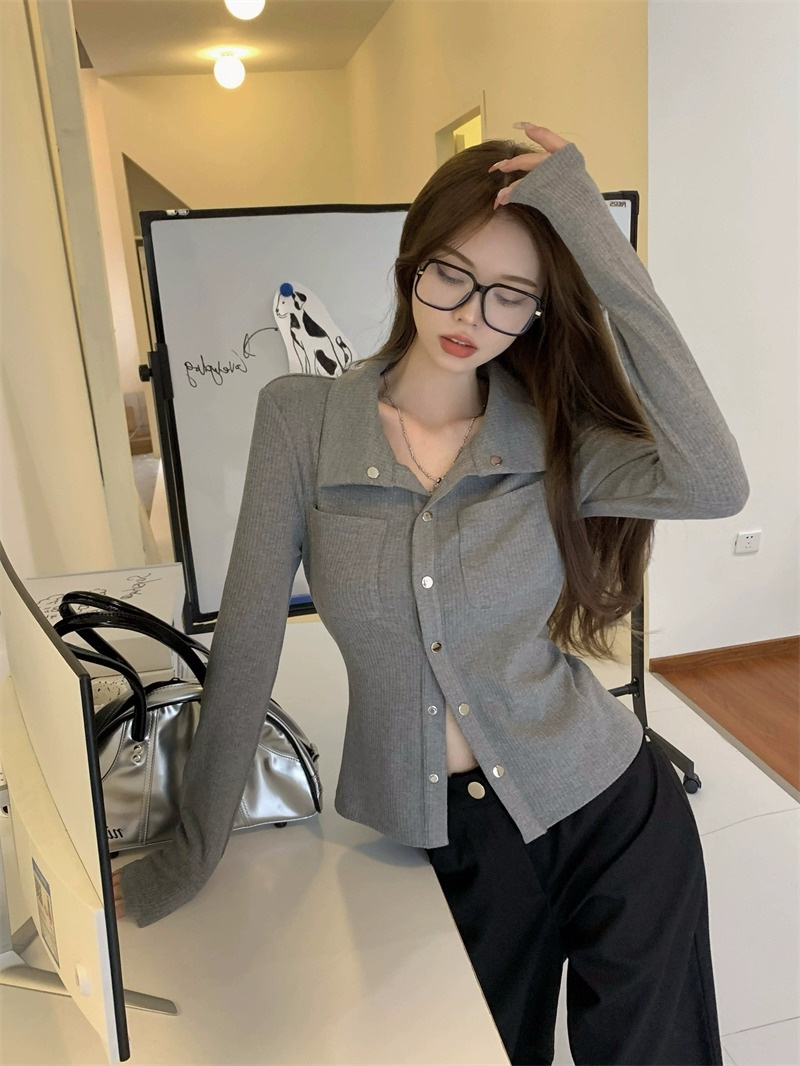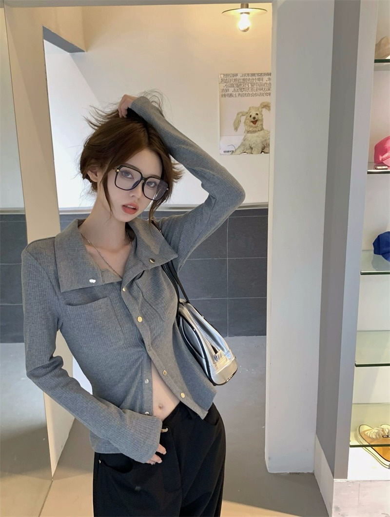 灰色內搭打底衫女秋季小衆設計感新款韓版襯衫氣質別致長袖上衣潮