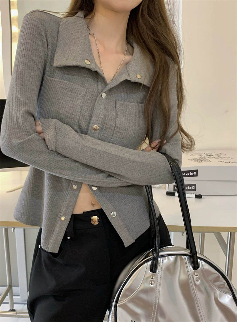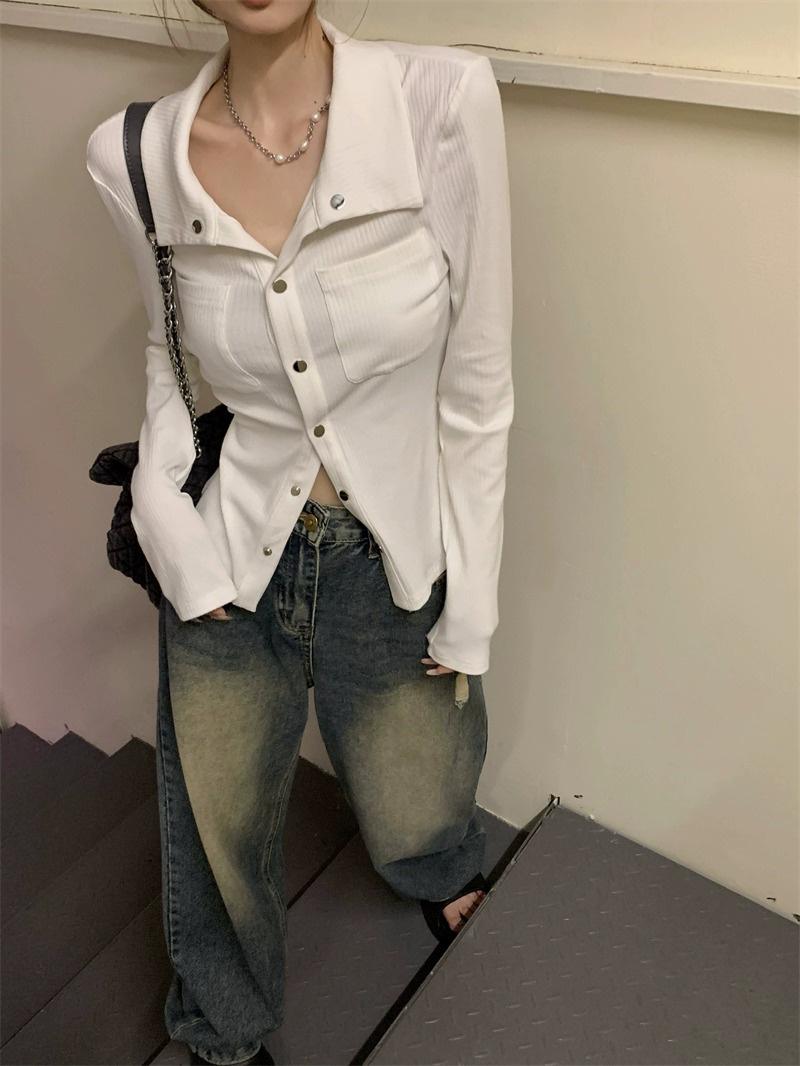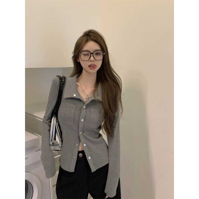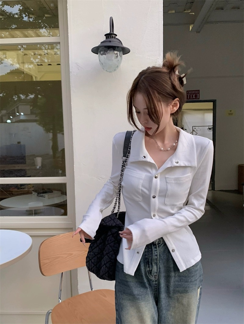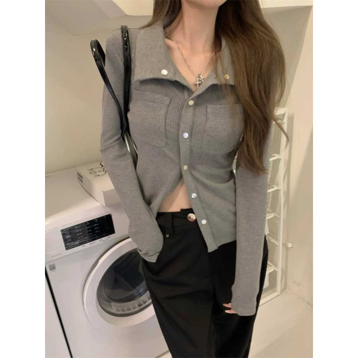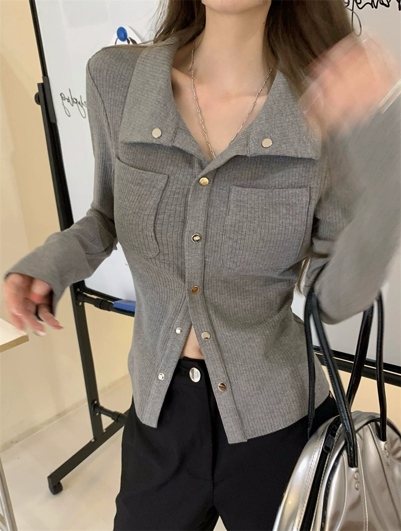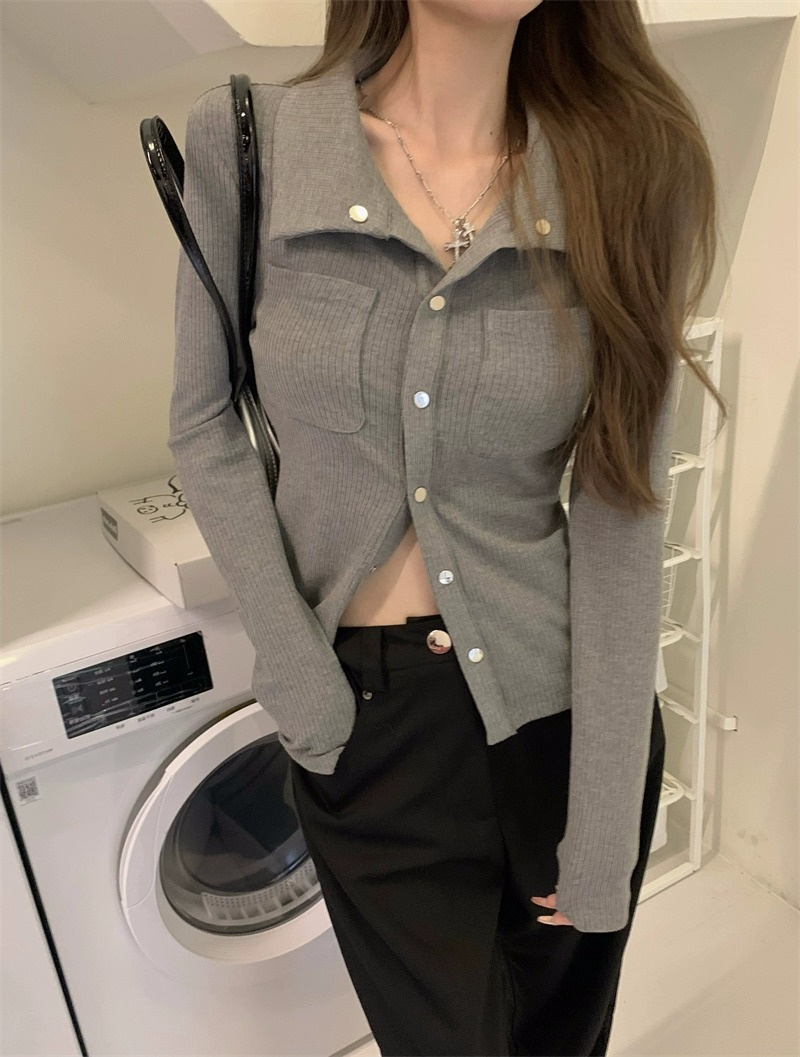 灰色內搭打底衫女秋季小衆設計感新款韓版襯衫氣質別致長袖上衣潮