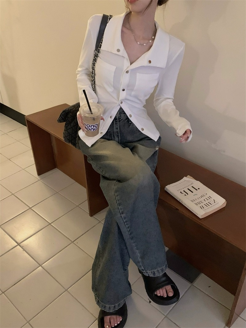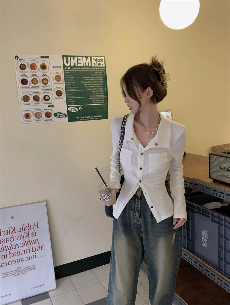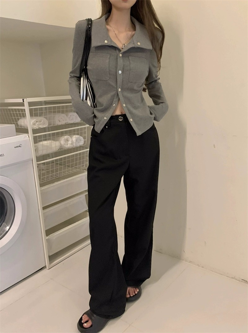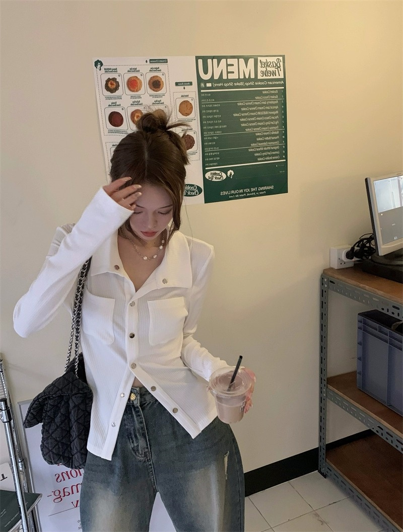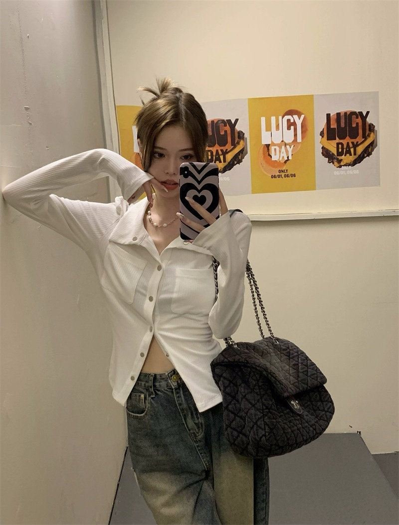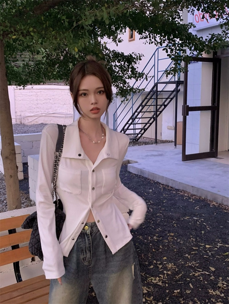 灰色內搭打底衫女秋季小衆設計感新款韓版襯衫氣質別致長袖上衣潮