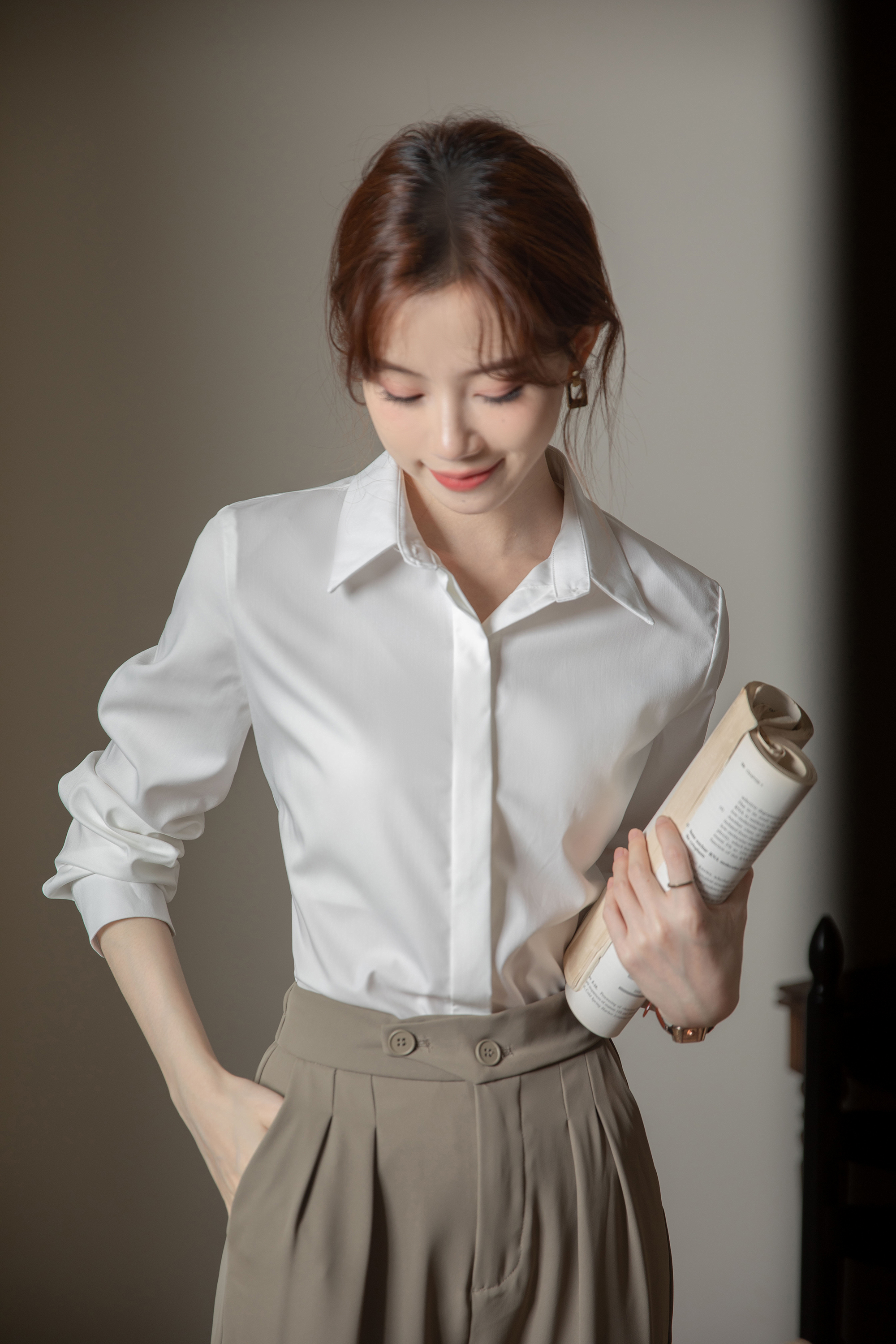 白色抗皺襯衫女長袖春秋職業正裝商務職場教資面試套裝女西裝褲