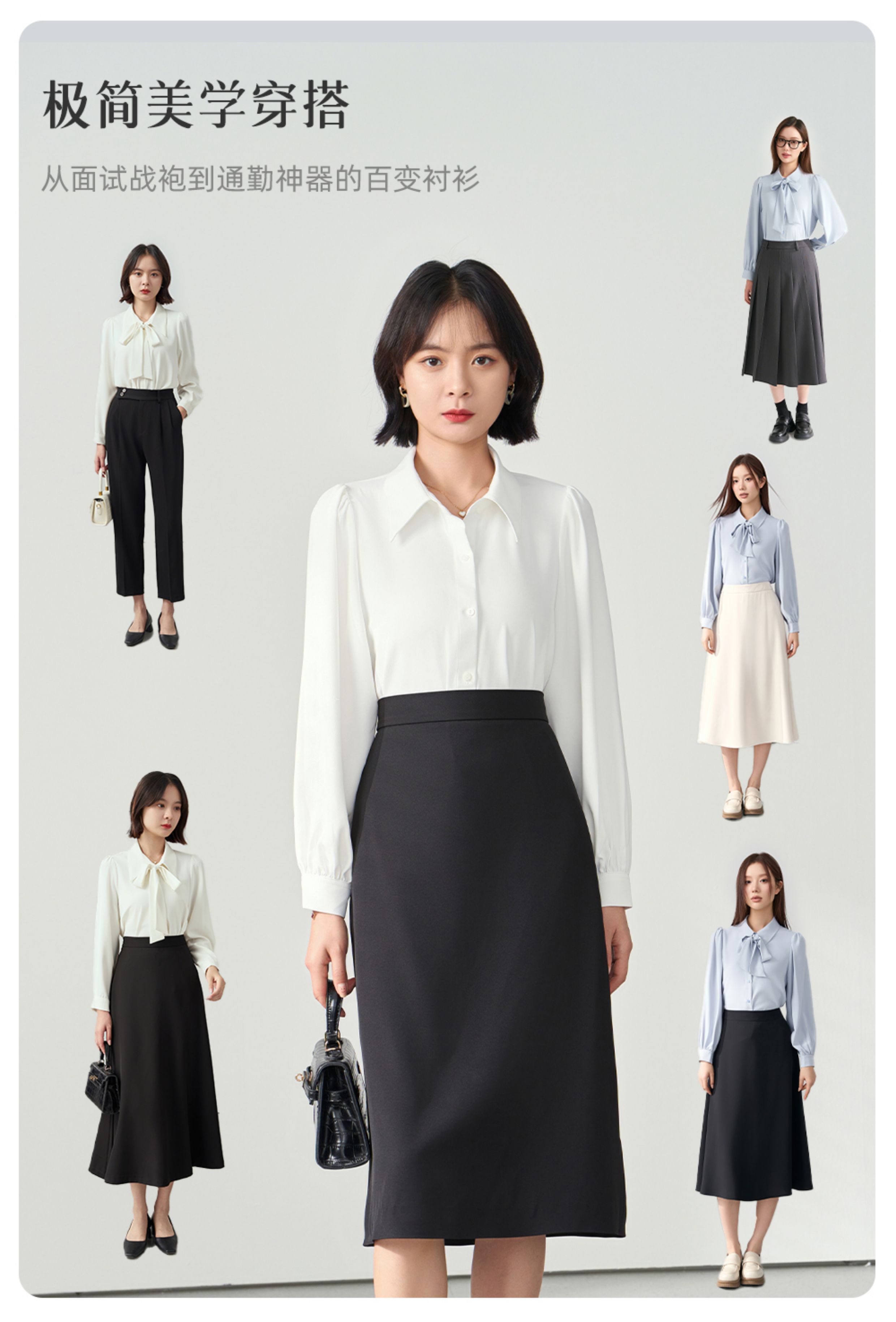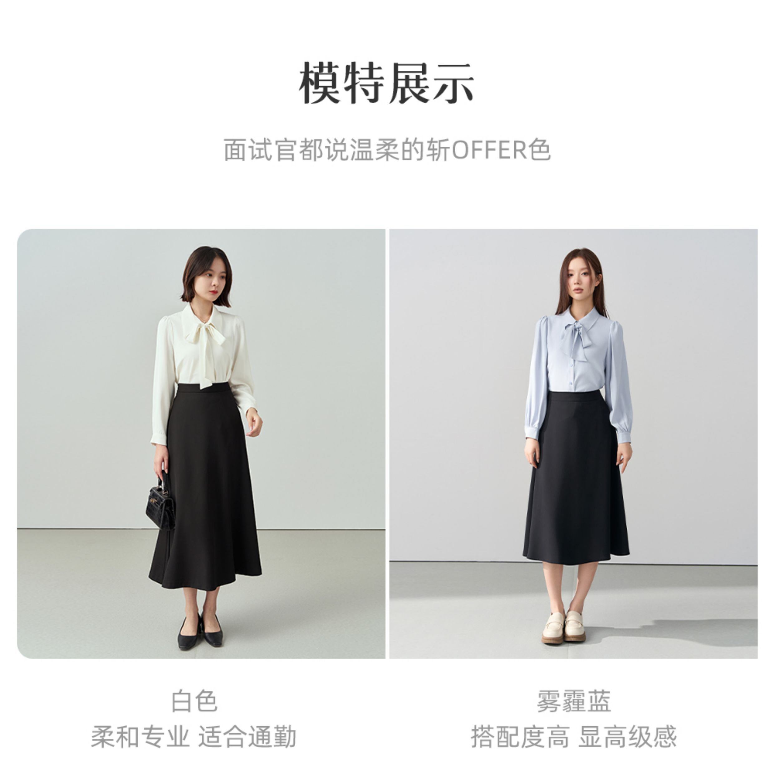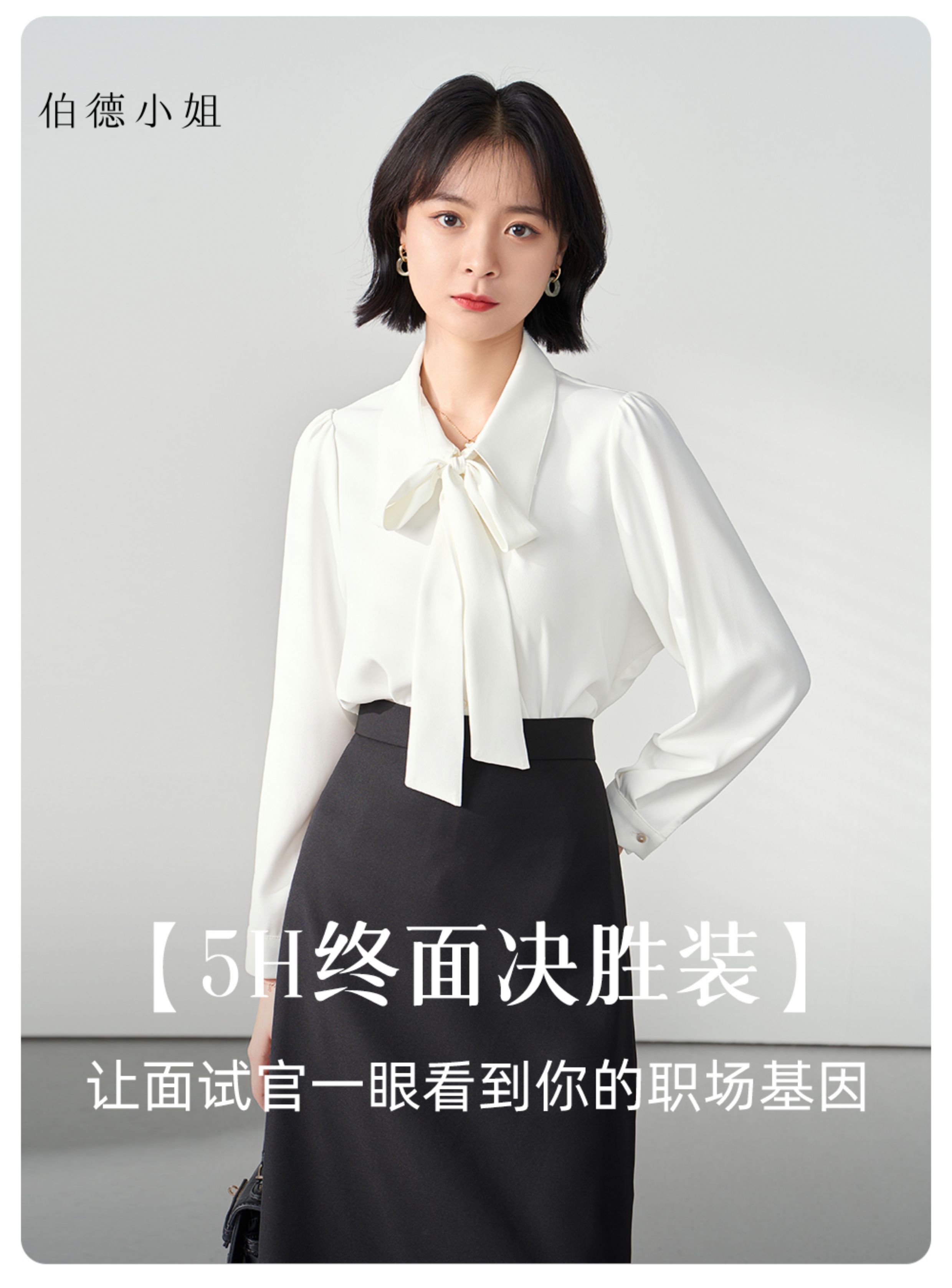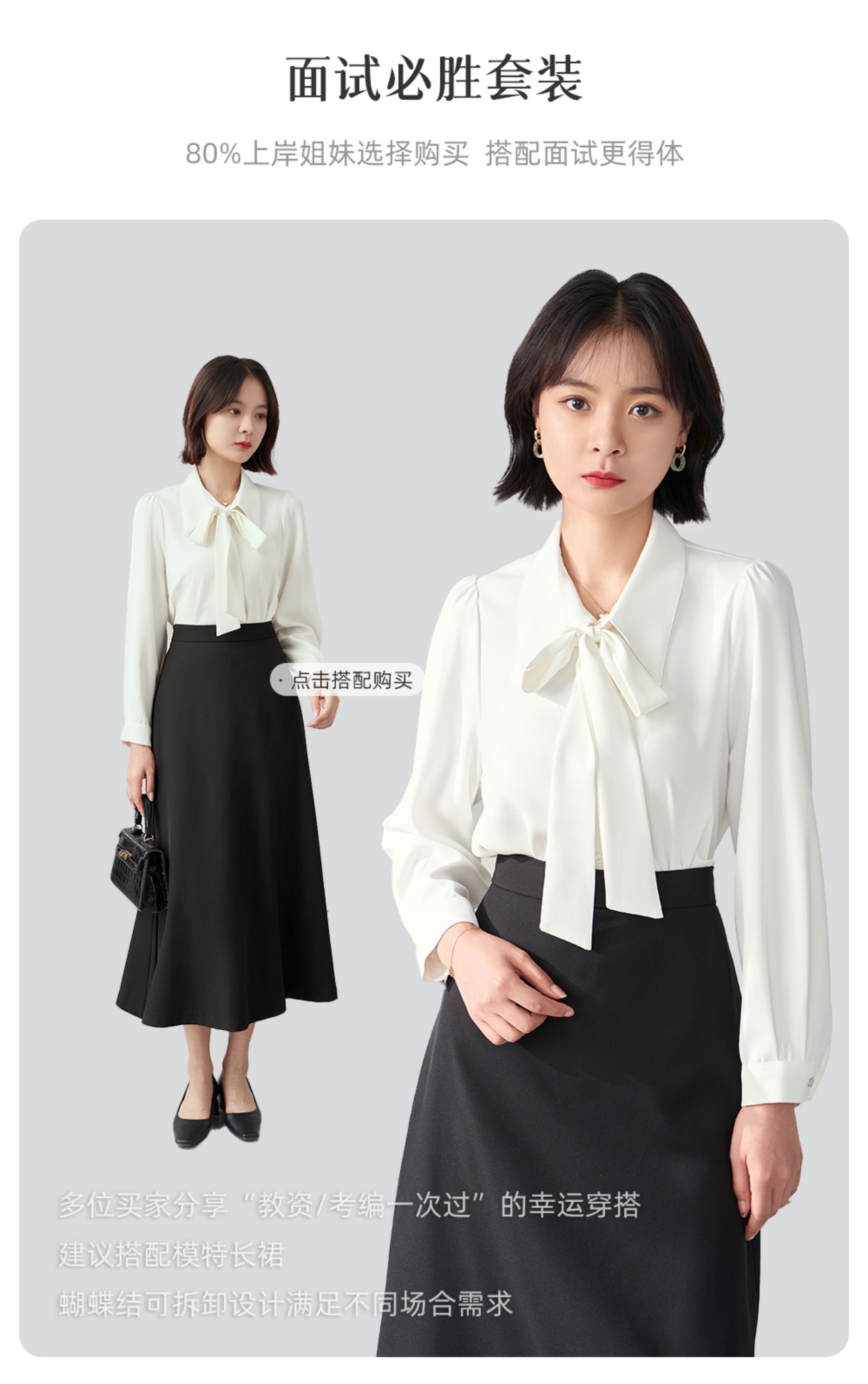伯德小姐雪紡襯衫女士職業穿搭正裝白色通勤上衣教師面試套裝襯衣