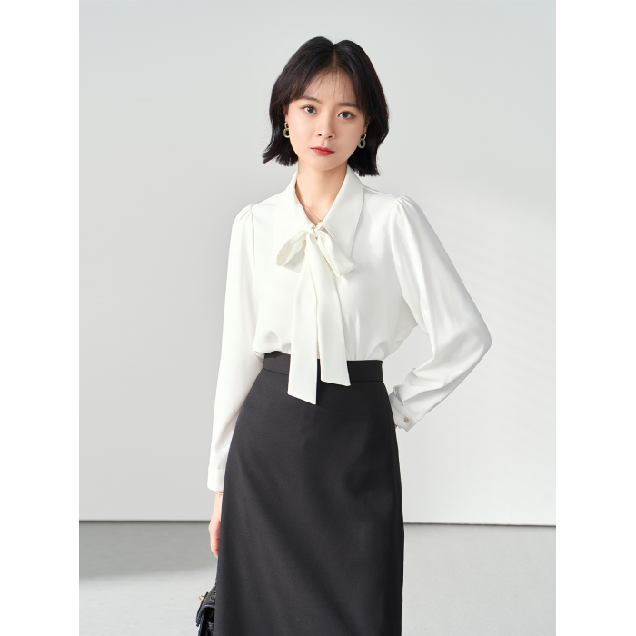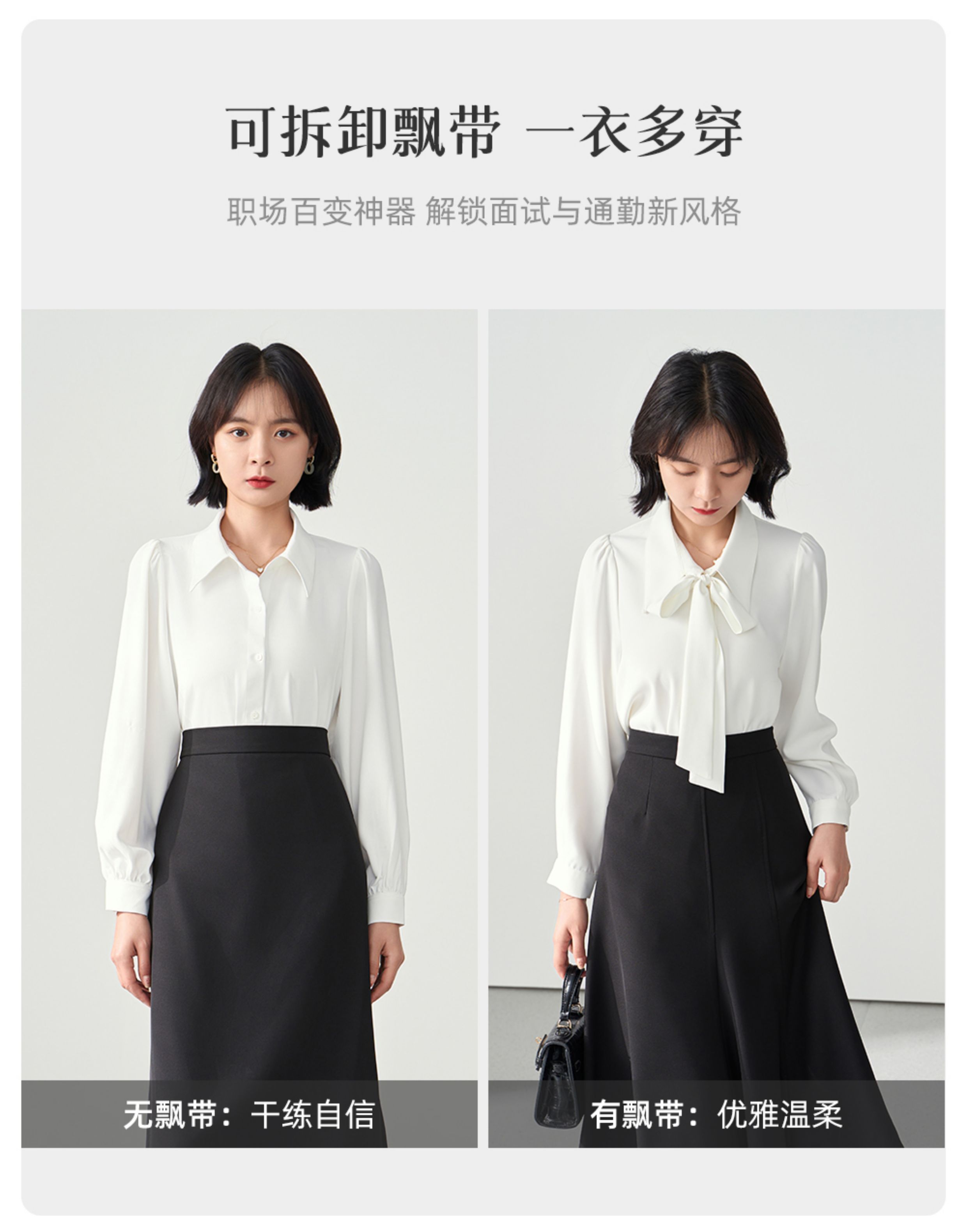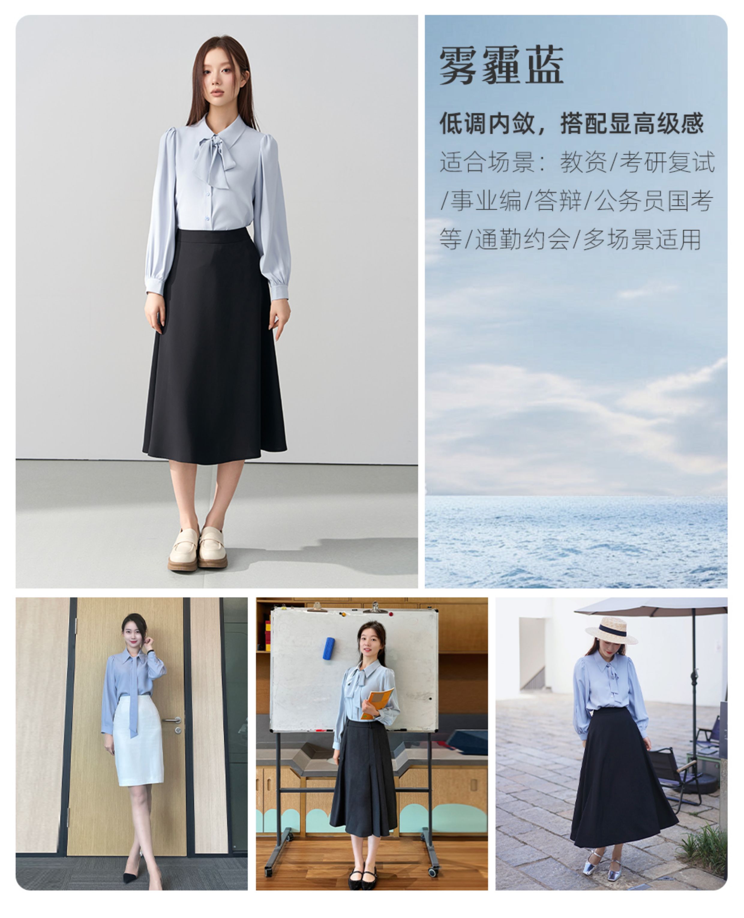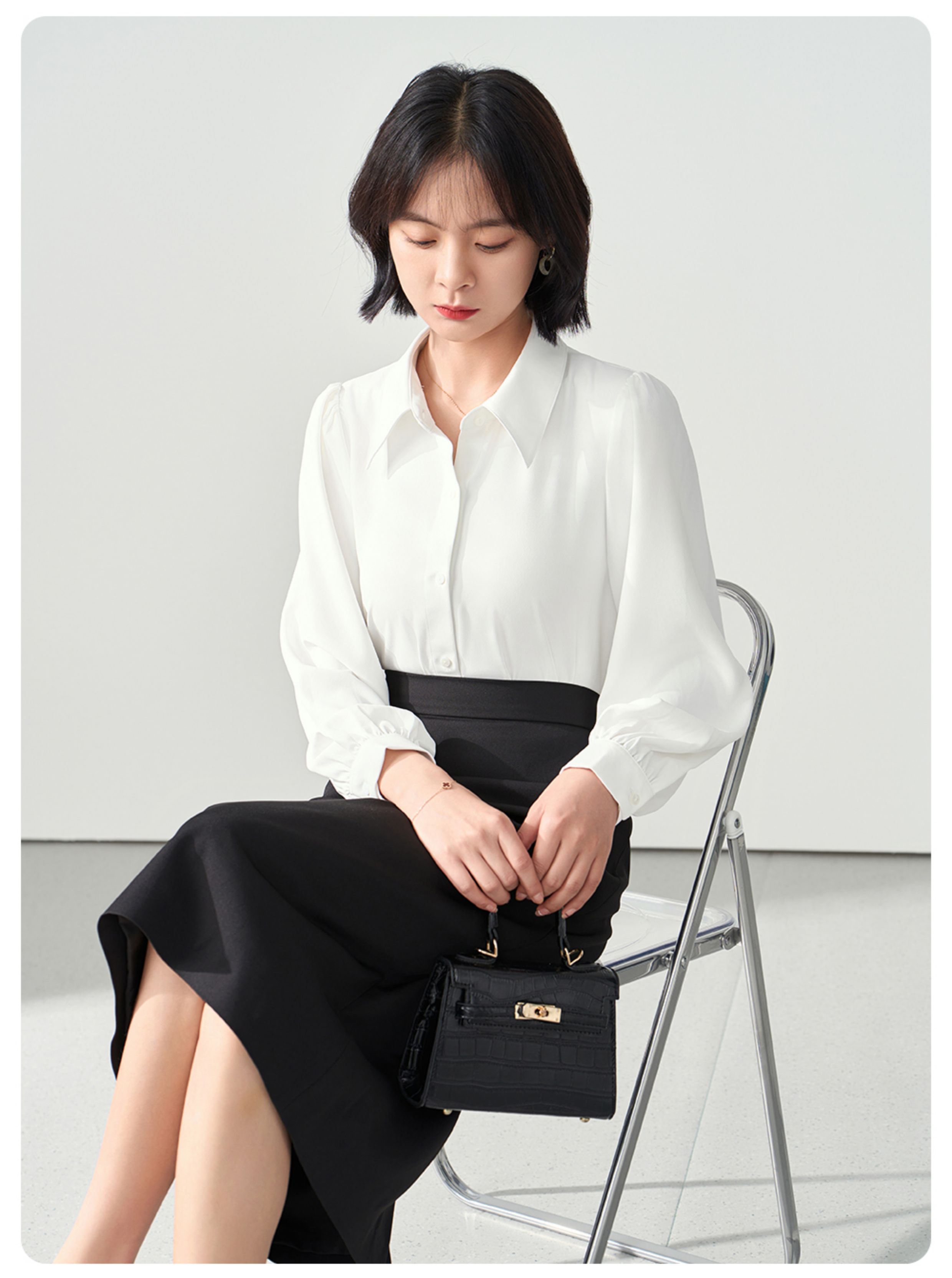 伯德小姐雪紡襯衫女士職業穿搭正裝白色通勤上衣教師面試套裝襯衣