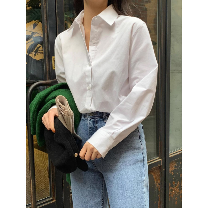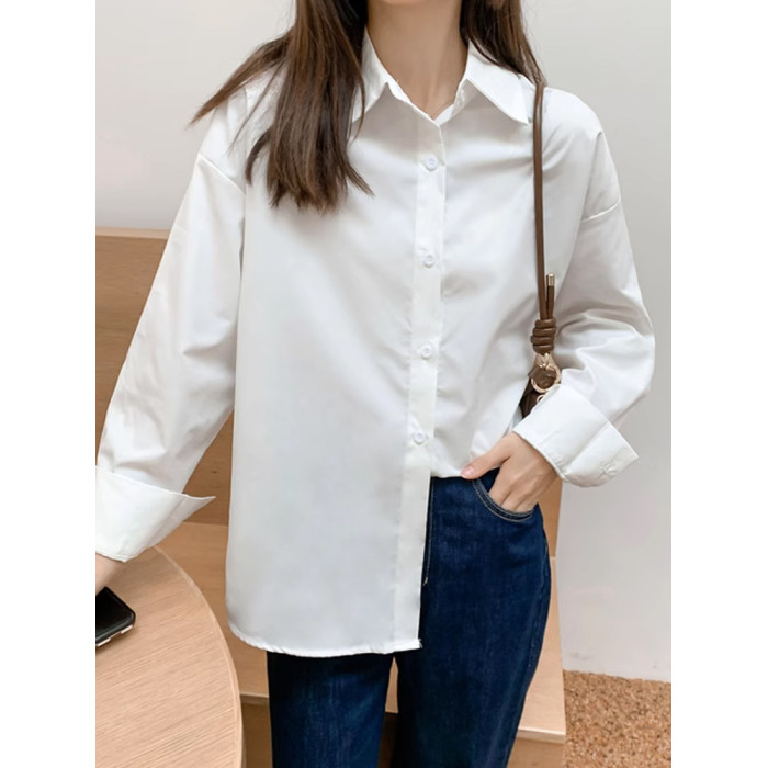 白色襯衫女2025新款爆款氣質襯衣小個子韓系通勤穿搭純色長袖上衣