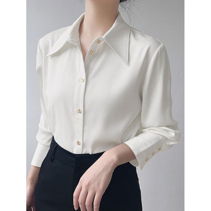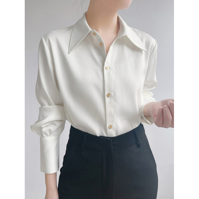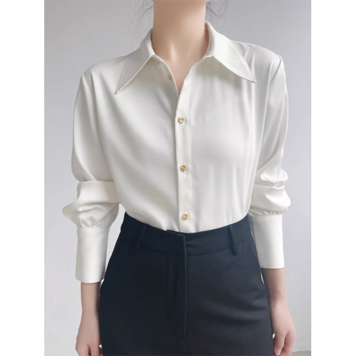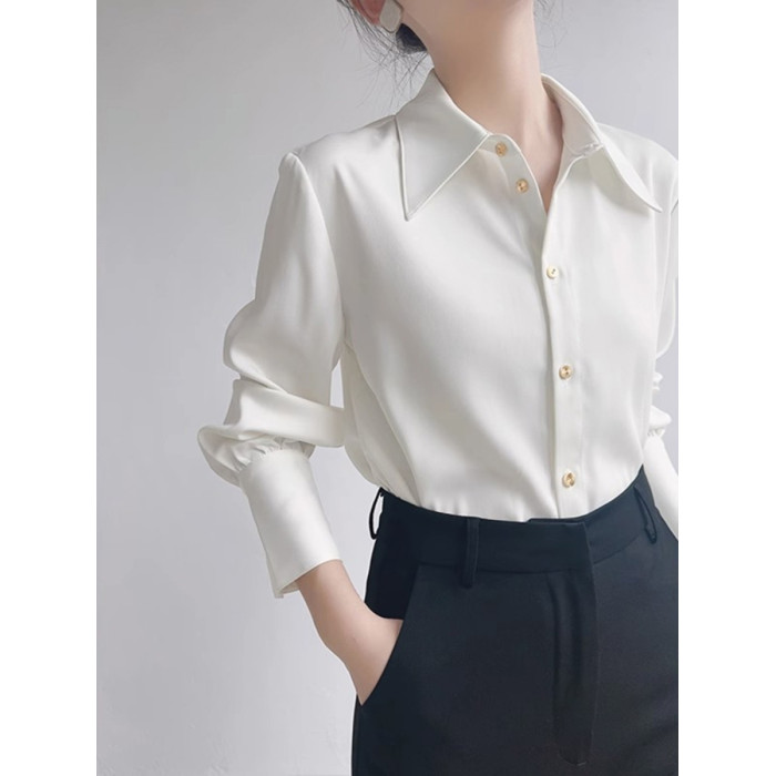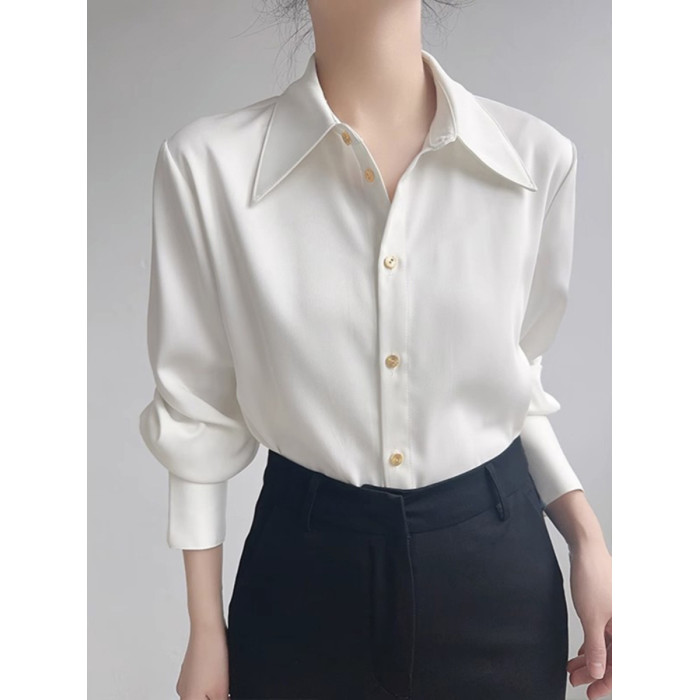 法式高級感白襯衫女秋季新款氣質通勤職業襯衣設計感小衆長袖上衣