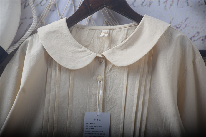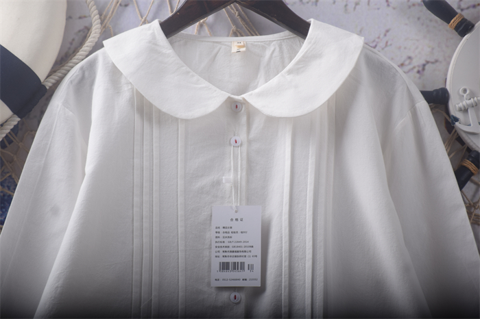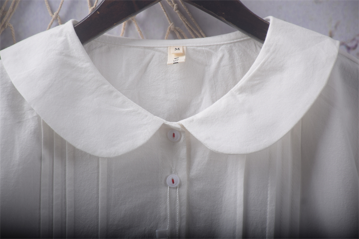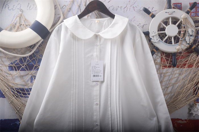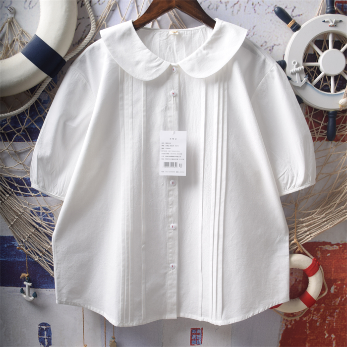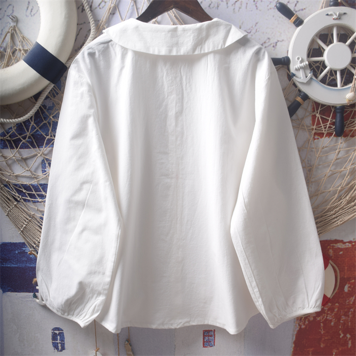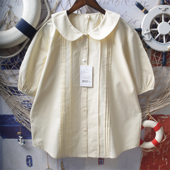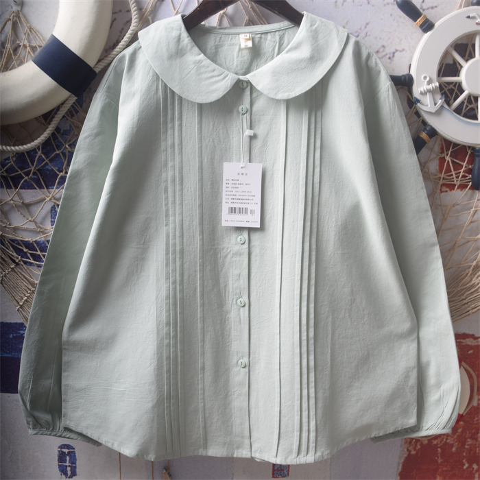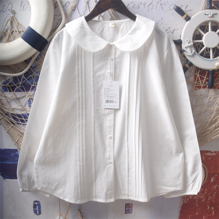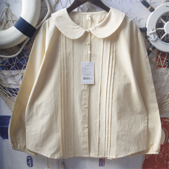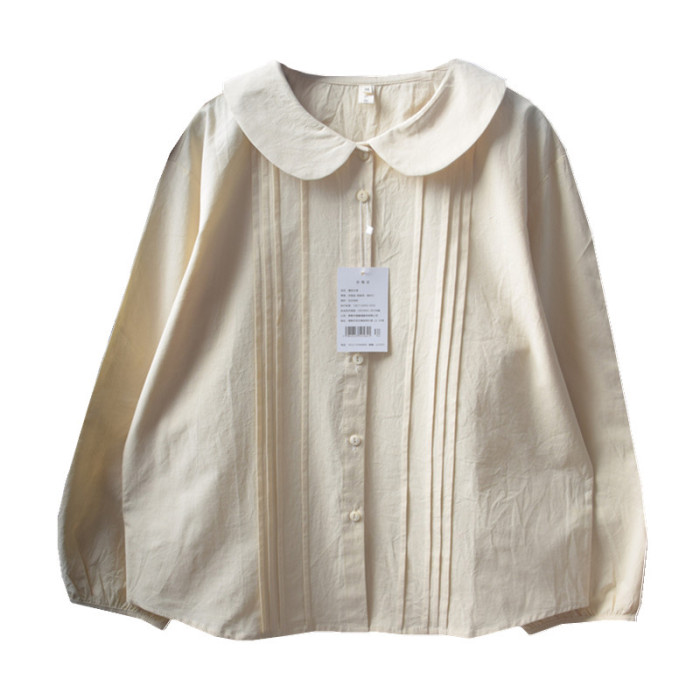 日系軟妹風琴壓褶寬松文藝娃娃領襯衫長袖女上衣氣質百搭純棉襯衣