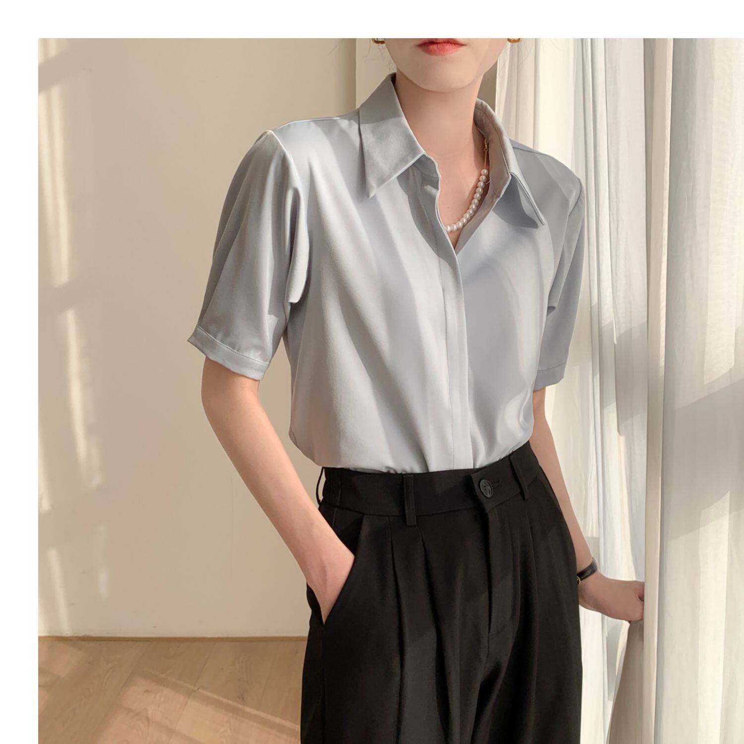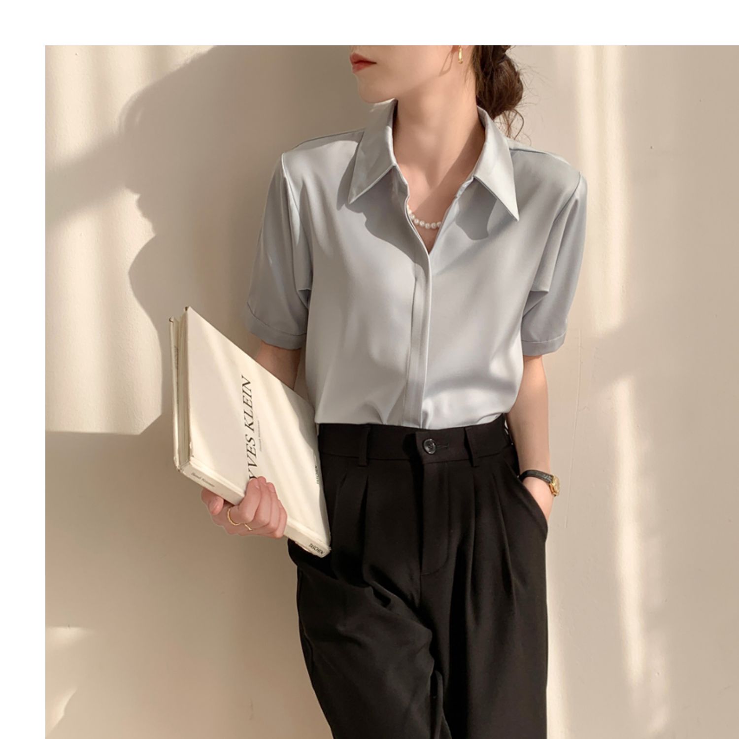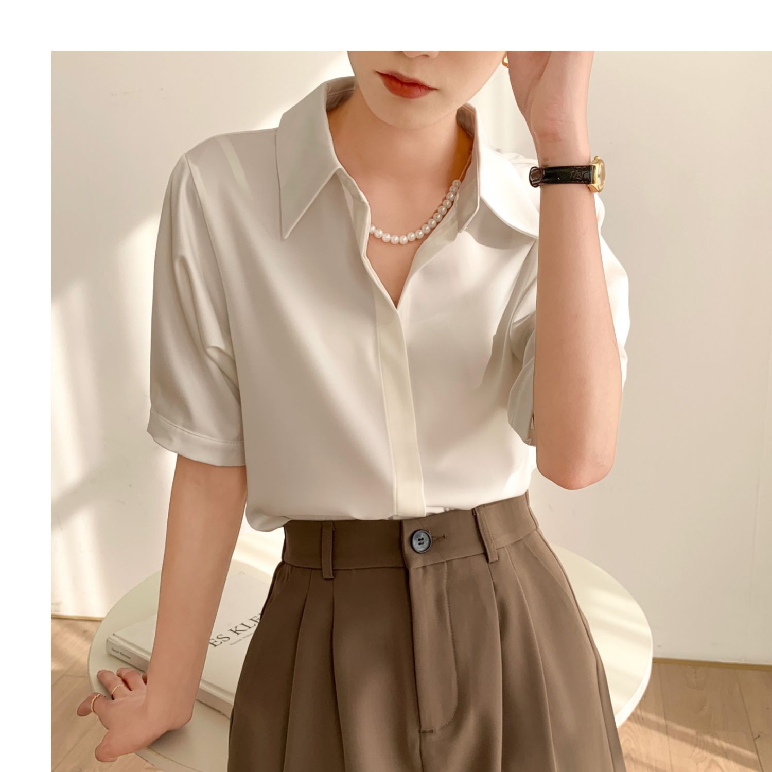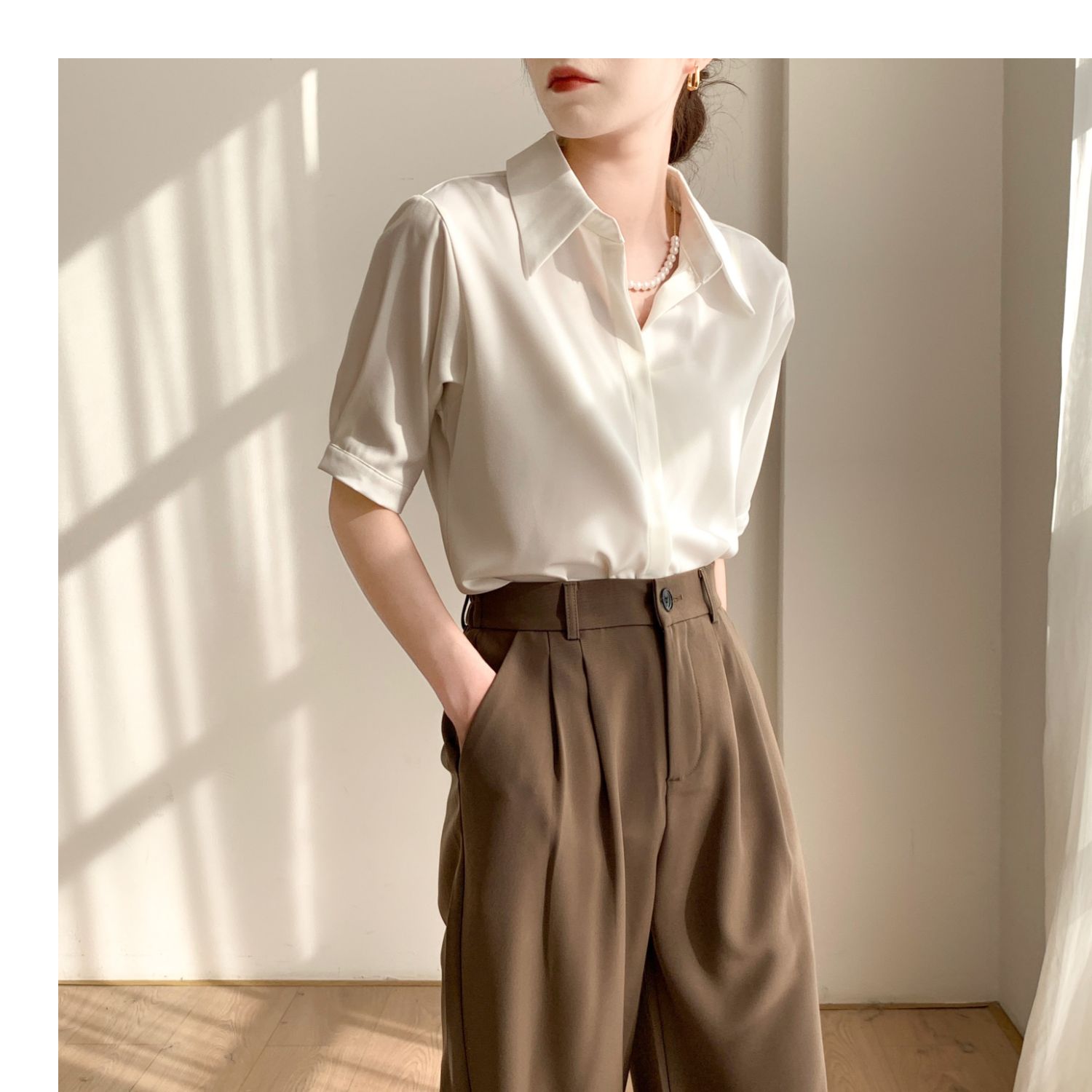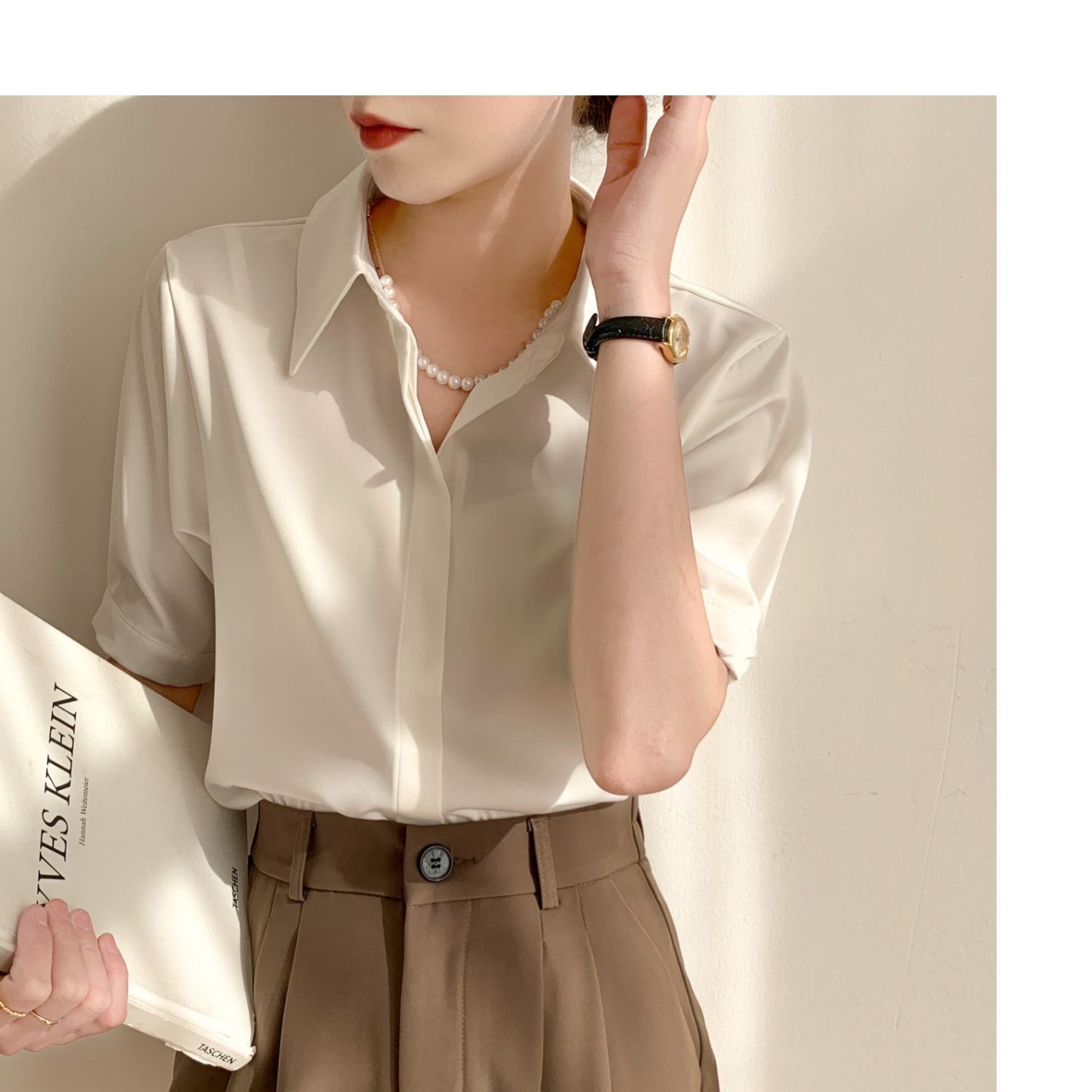白色襯衫女短袖夏季薄款職業氣質面試套裝中袖正裝免燙襯衣上衣