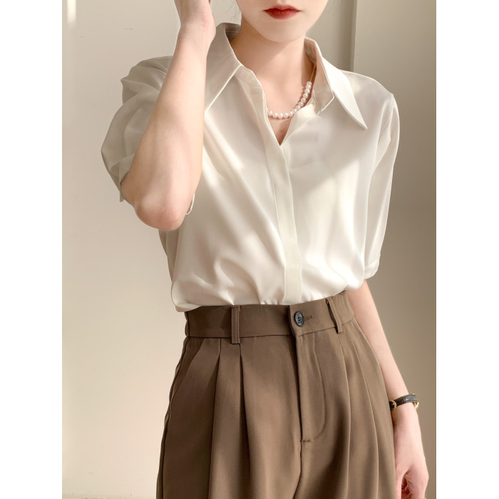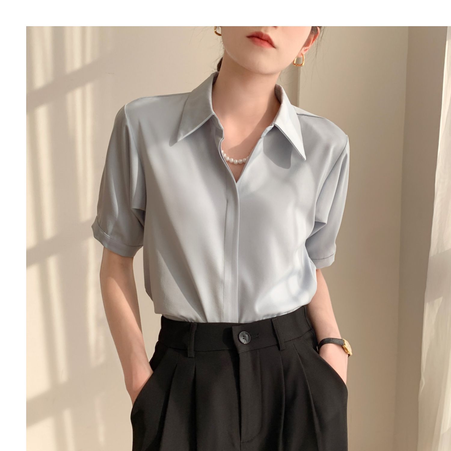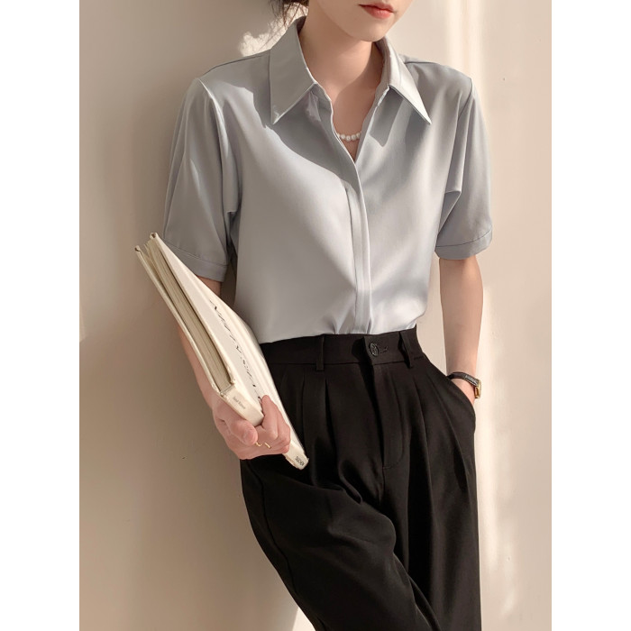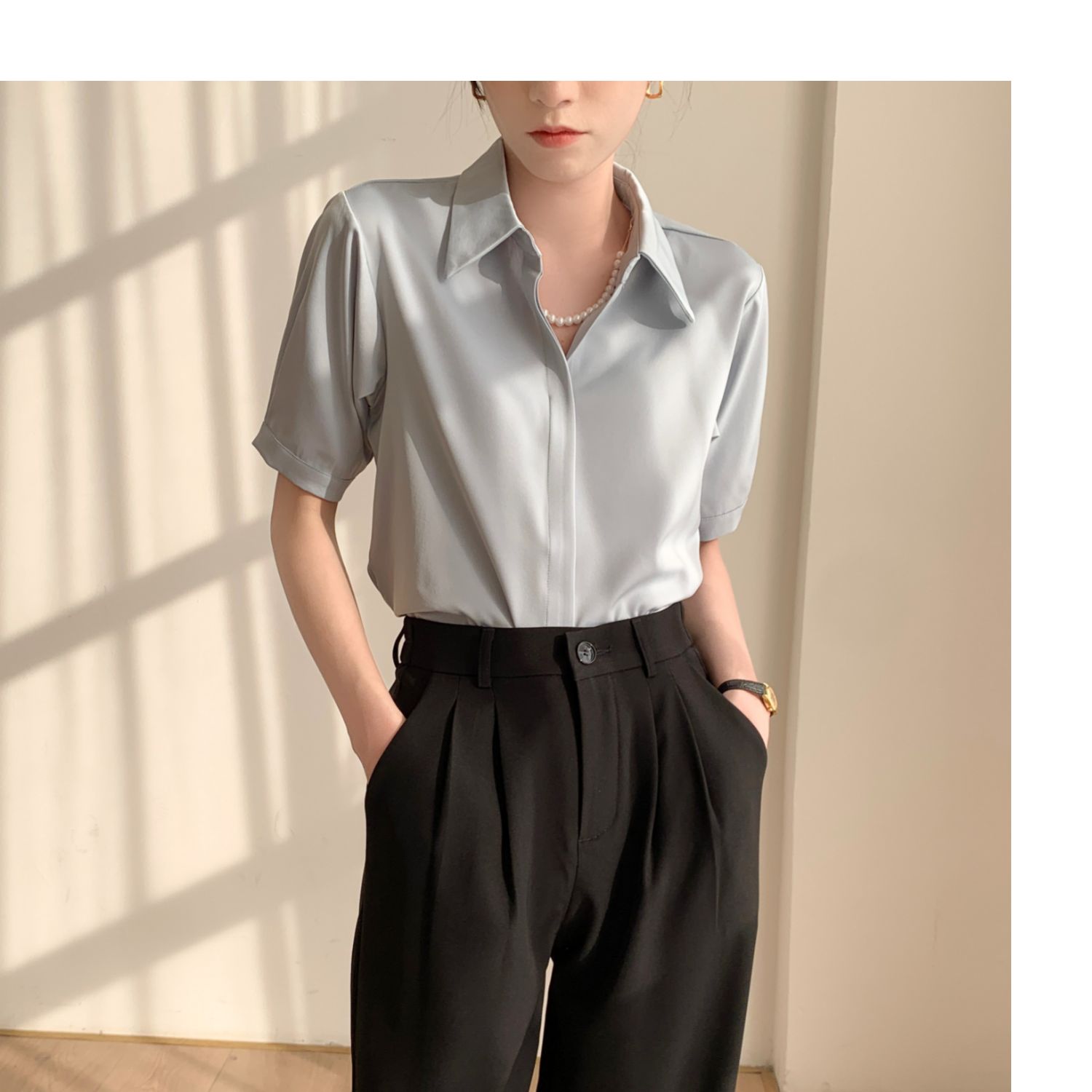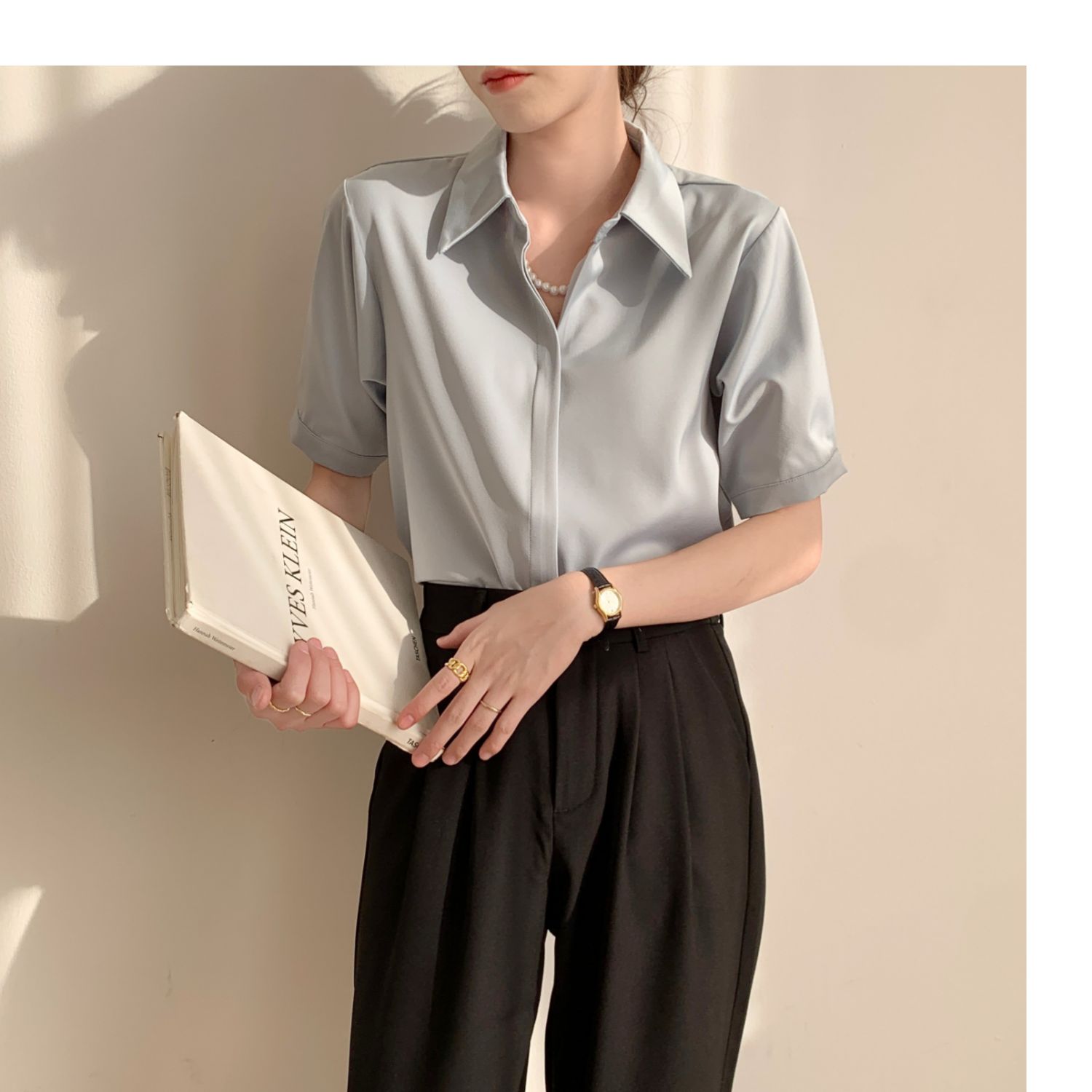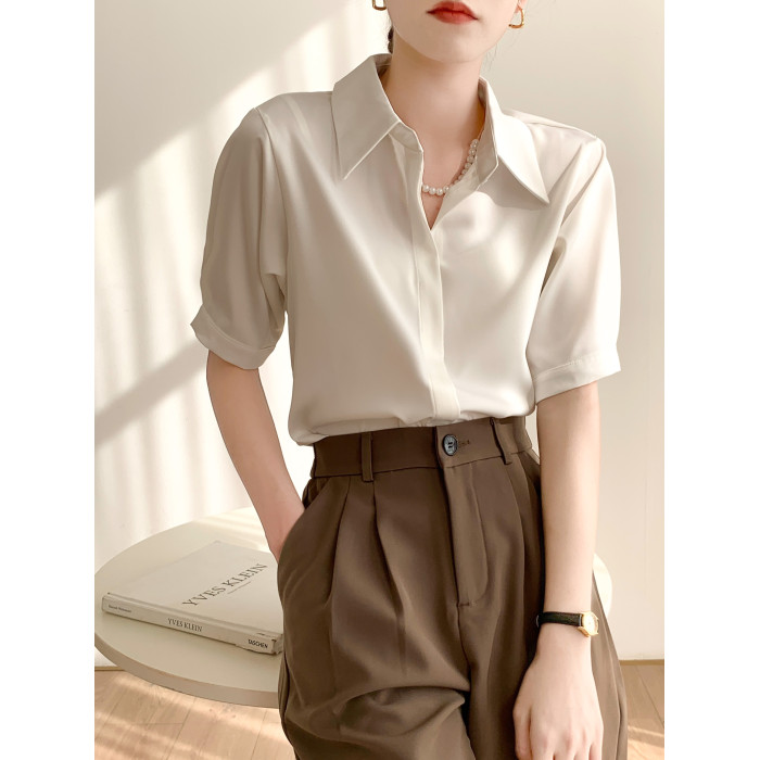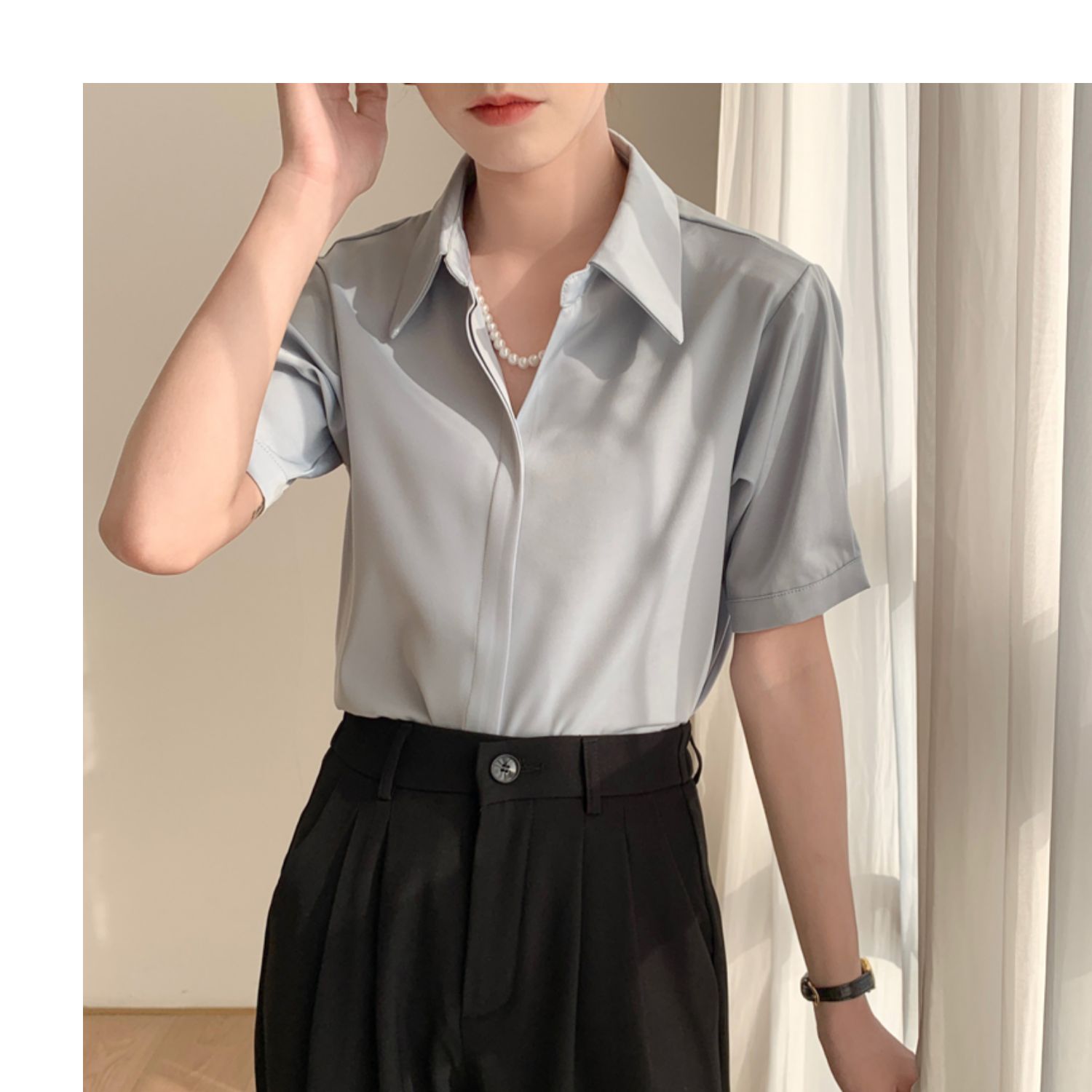 白色襯衫女短袖夏季薄款職業氣質面試套裝中袖正裝免燙襯衣上衣