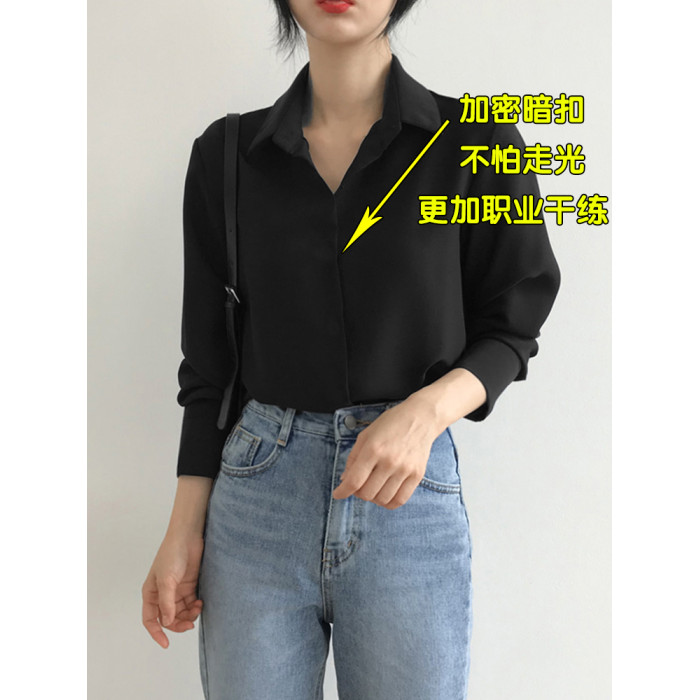 秋冬長袖黑色襯衫女200斤胖MM大碼OL工作服修身顯瘦職業正裝襯衣