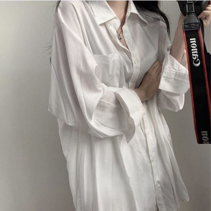 2025春秋新款大碼胖mm防曬襯衫女寬松BF風中長款上衣心機長袖襯衣