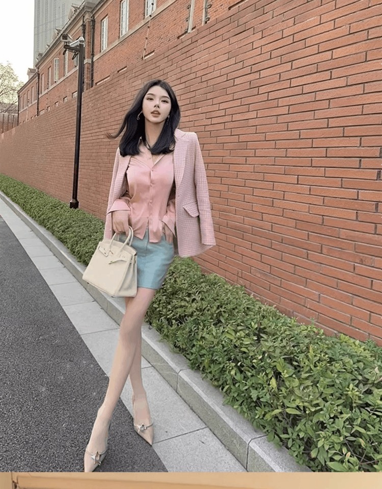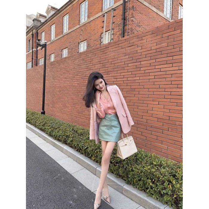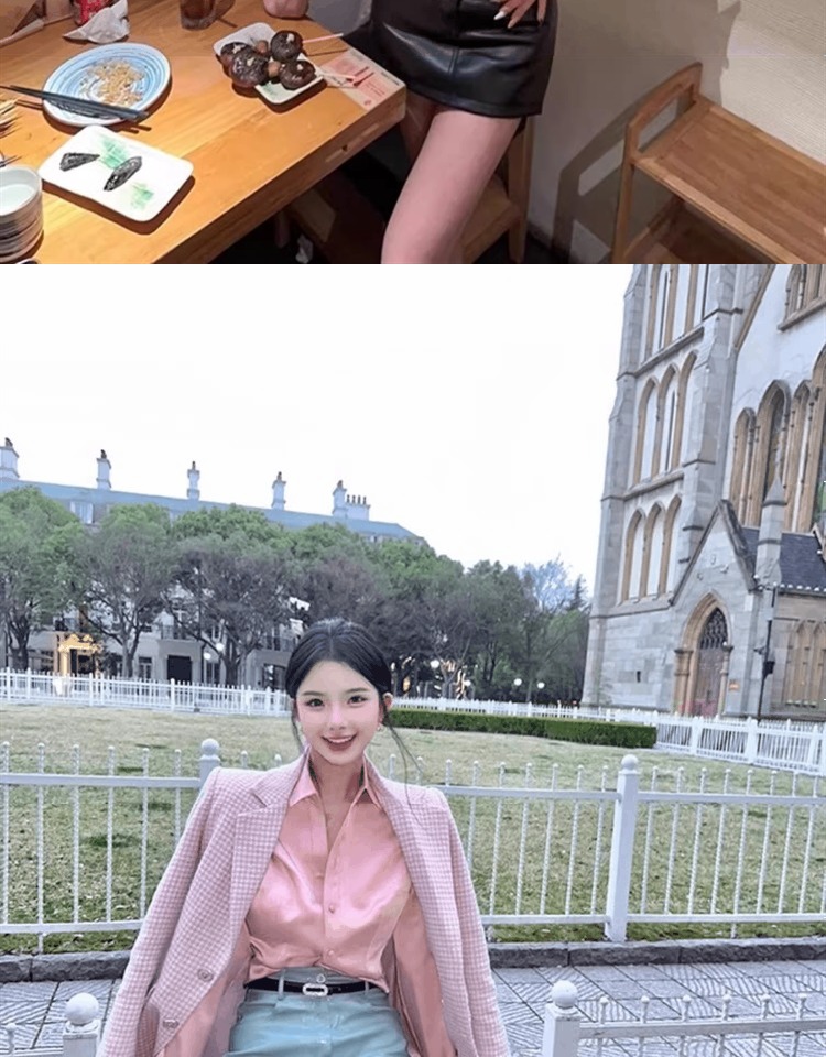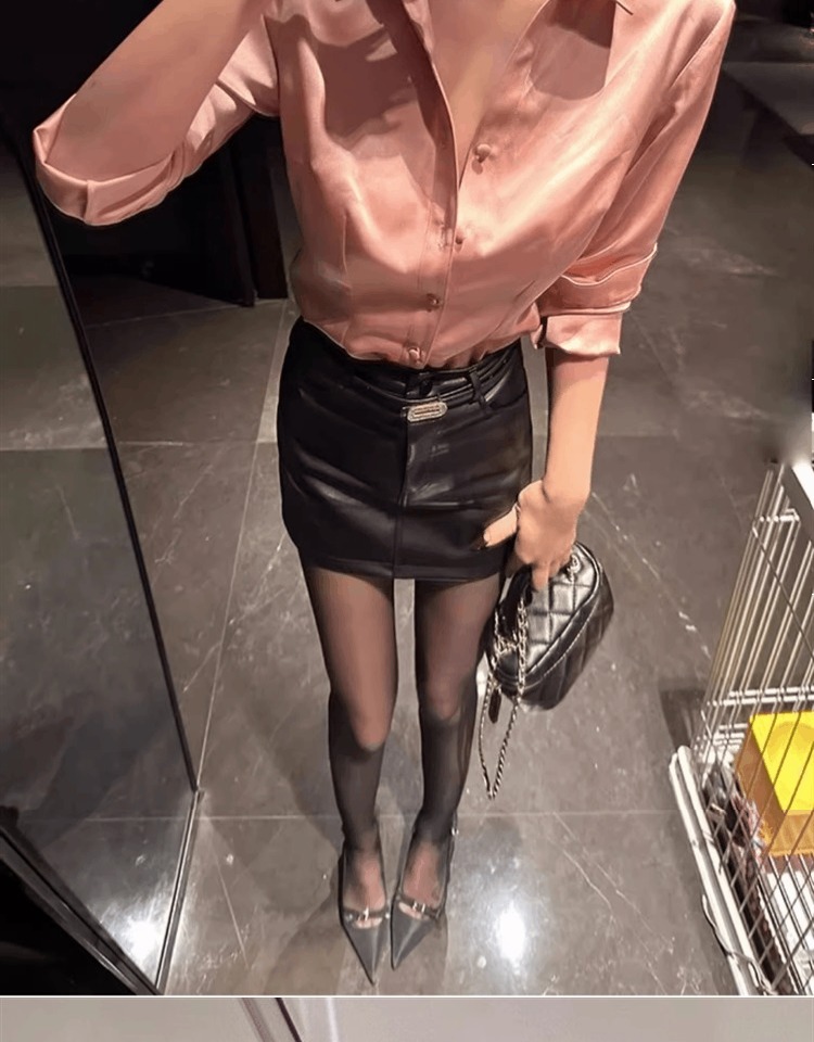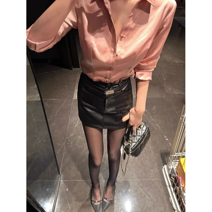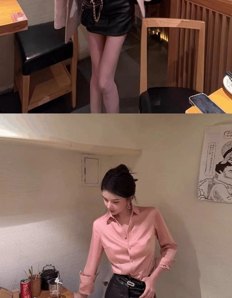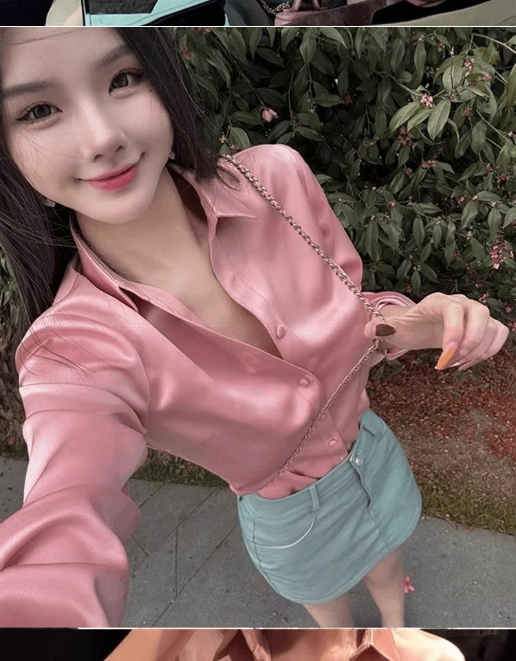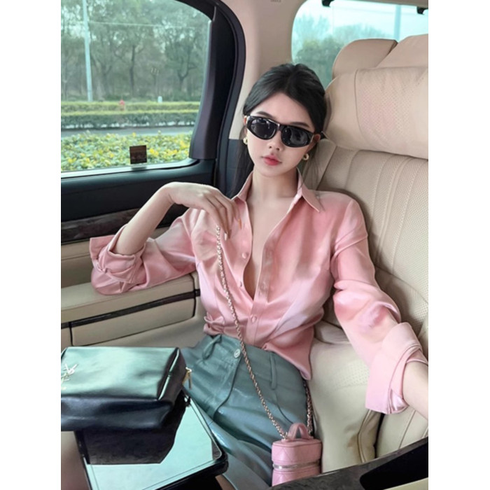 時尚醋酸緞面粉色襯衫女早秋季2025新款長袖法式掐腰正肩襯衣上衣