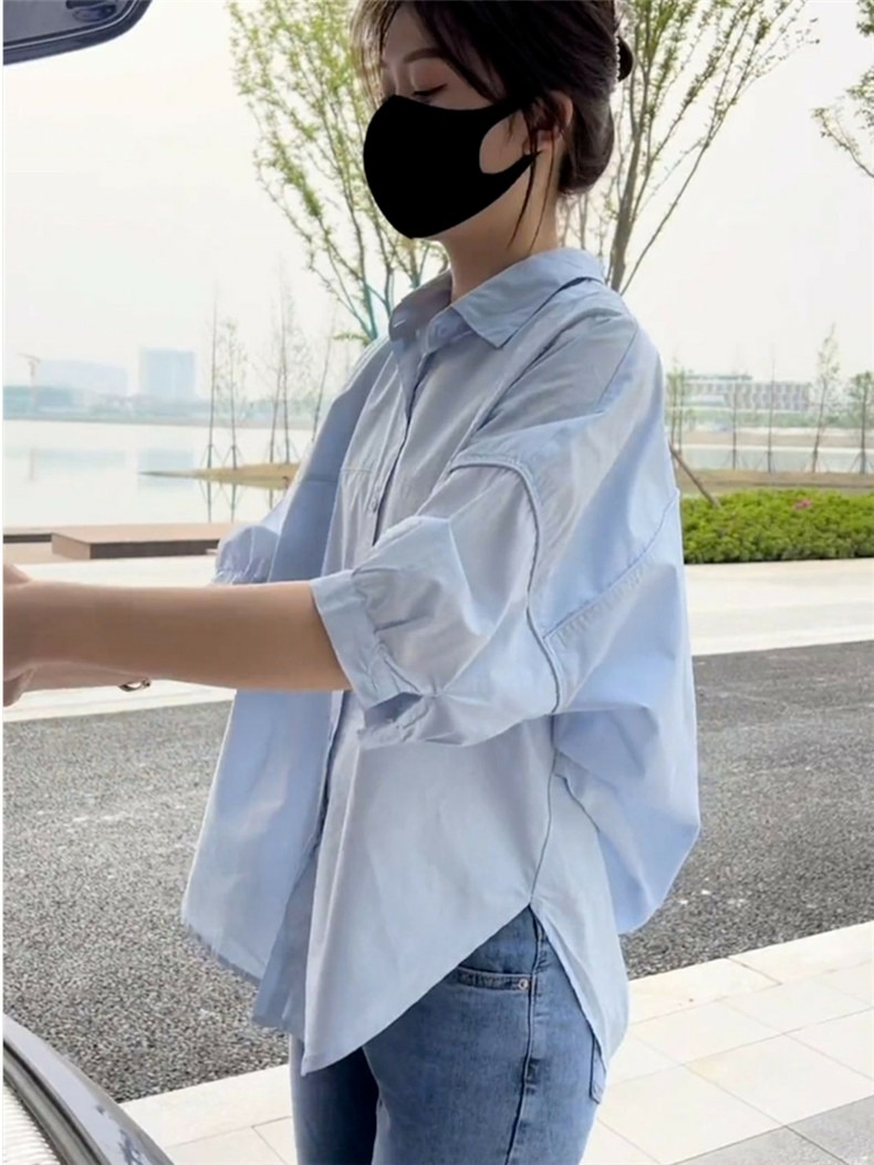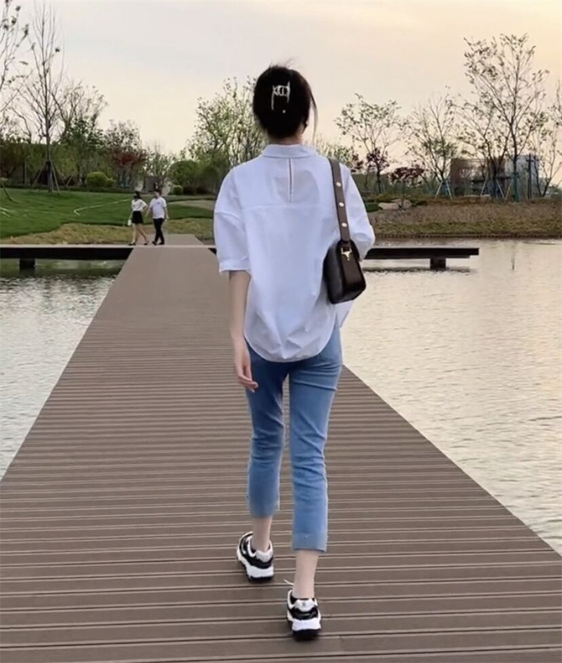 2025短袖襯衫女夏襯衣寬松小個子半袖上衣設計感小衆別致個性小衫