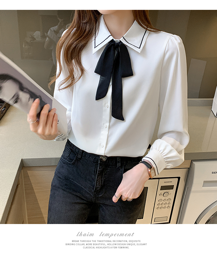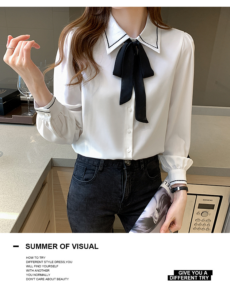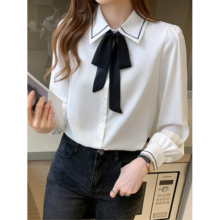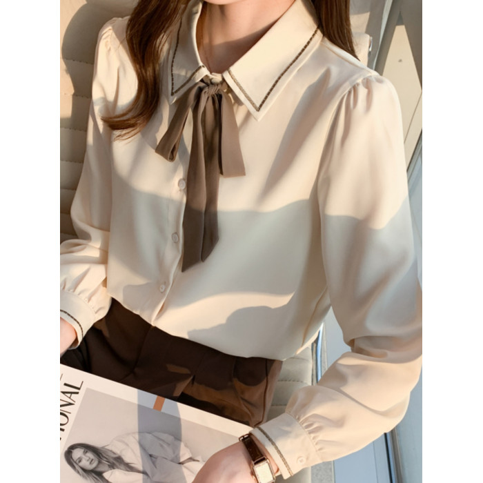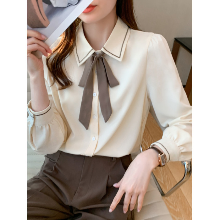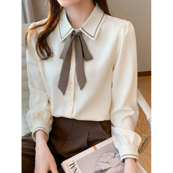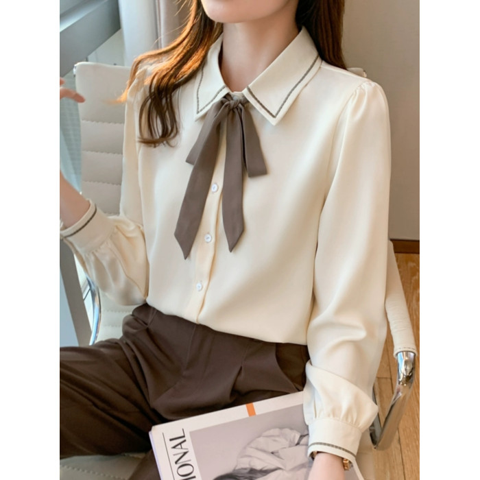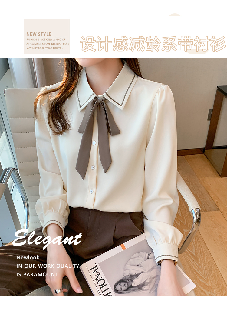高級感雪紡襯衫女春裝2025新款職業正裝面試襯衣飄帶領結長袖上衣