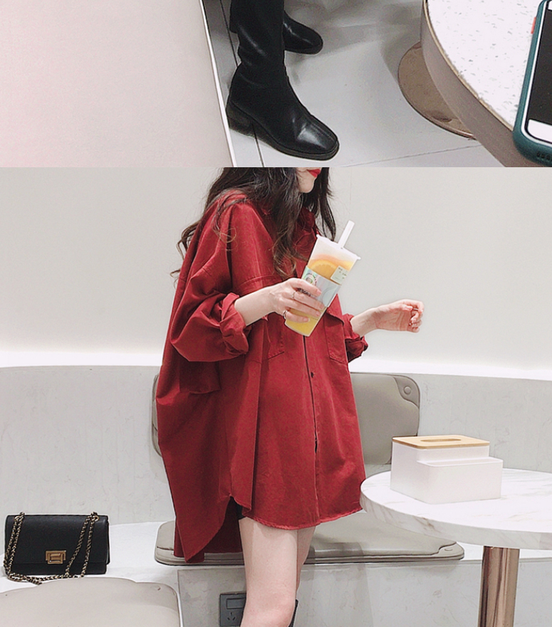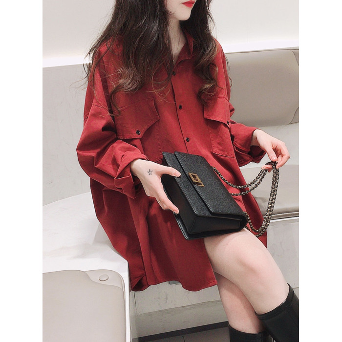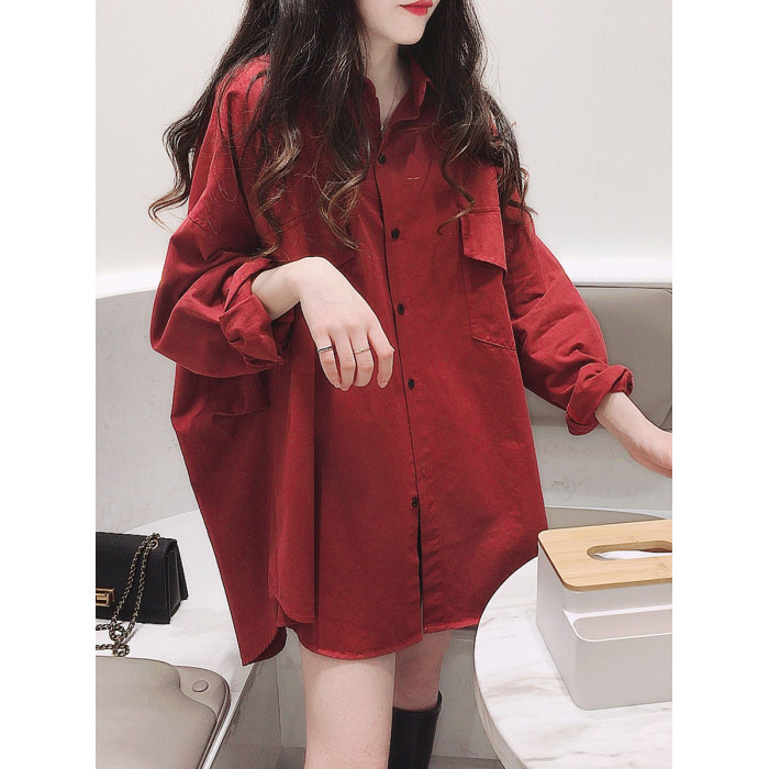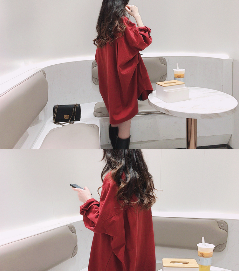 遮肉復古寬松減齡T恤衫大碼長袖休閒文藝春秋季洋氣上衣顯瘦襯衣