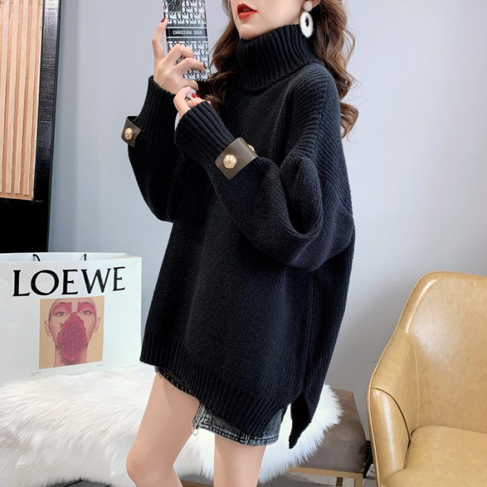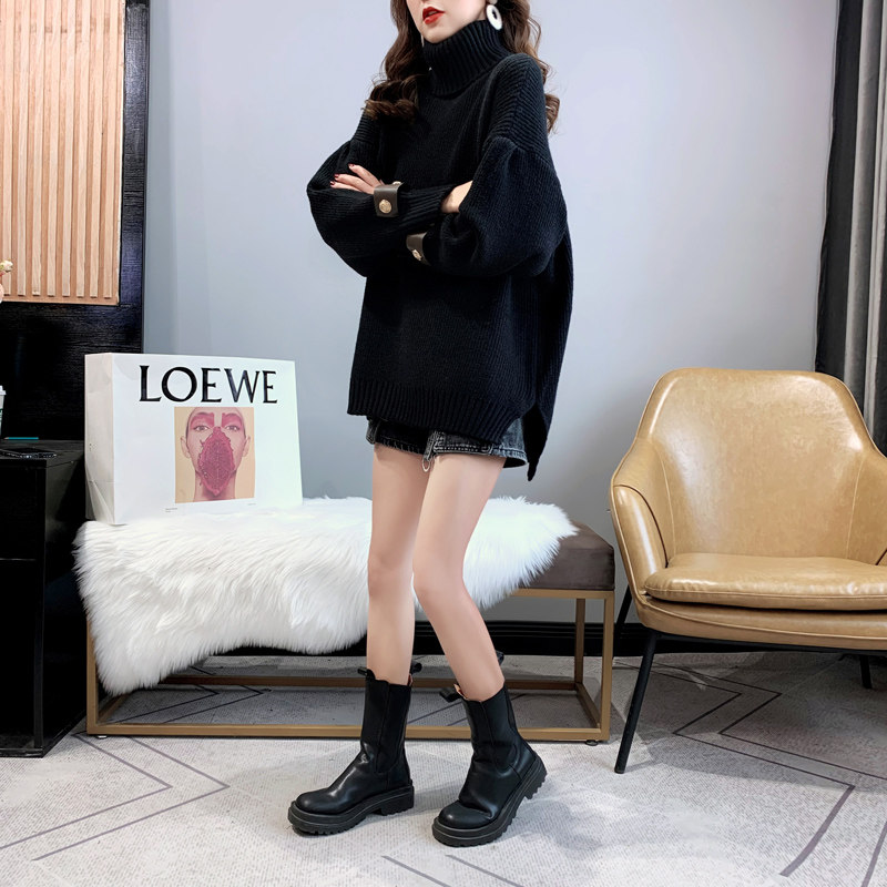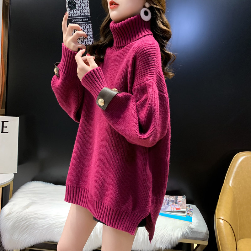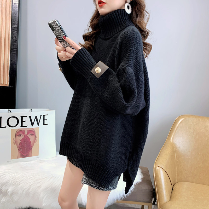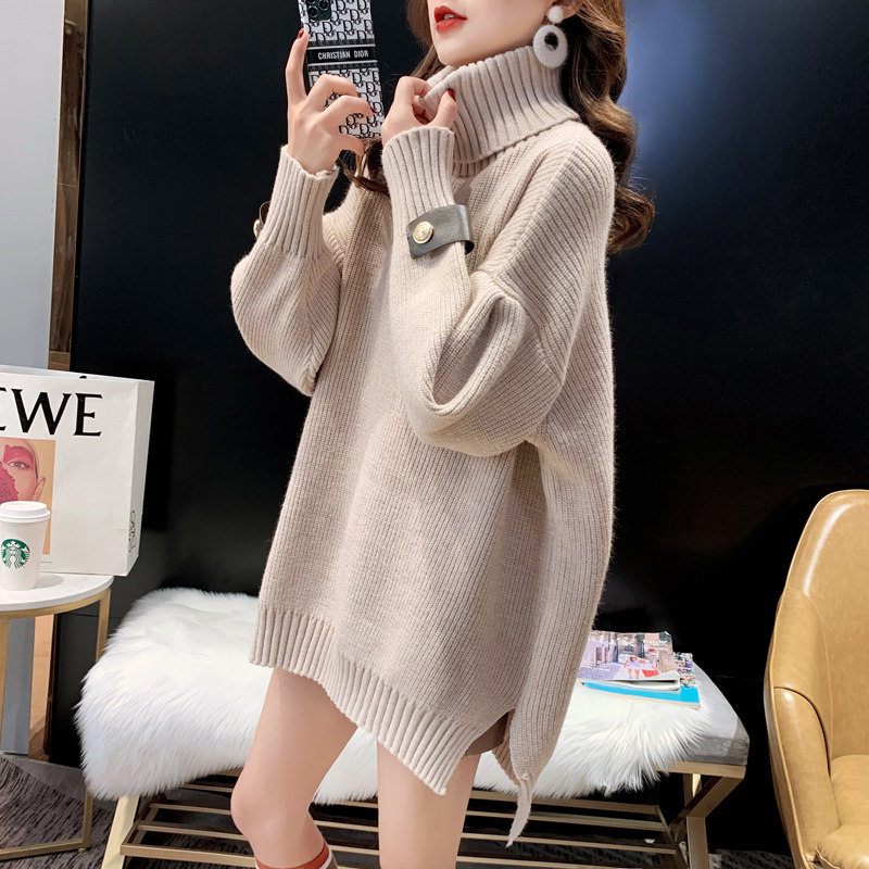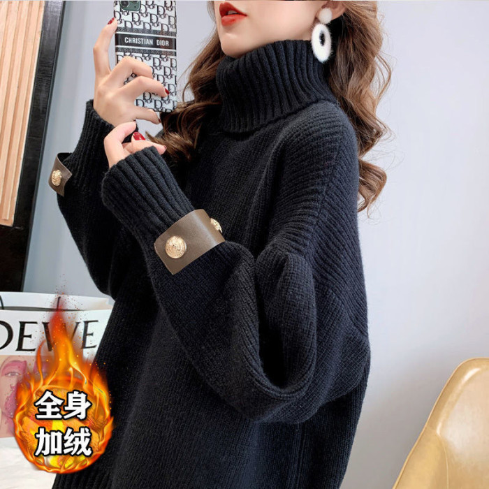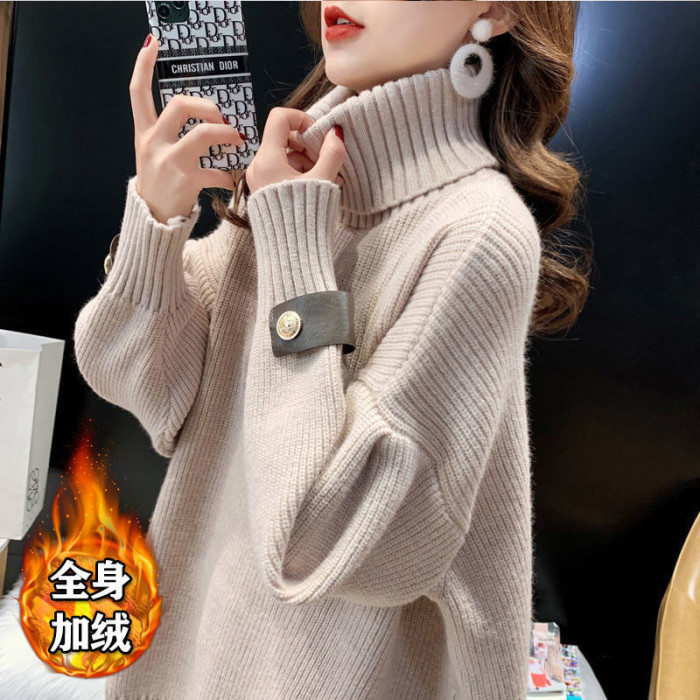 高領毛衣女加絨加厚中長款2025秋冬新款韓版寬松兩翻領打底針織衫