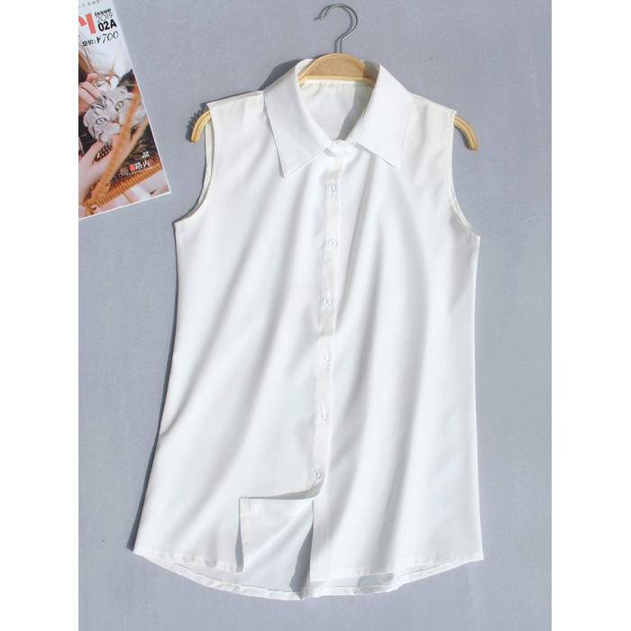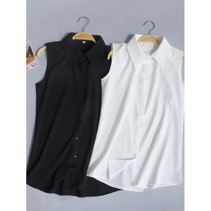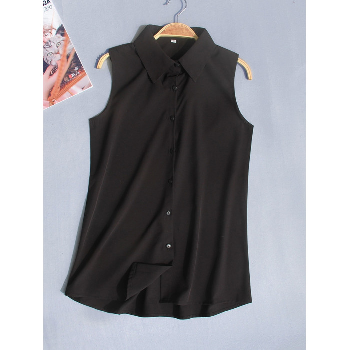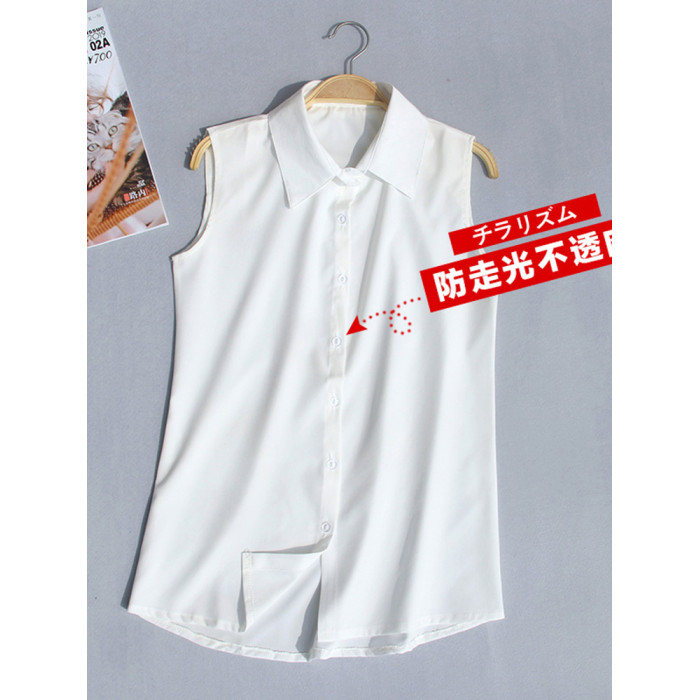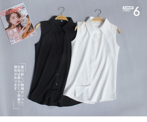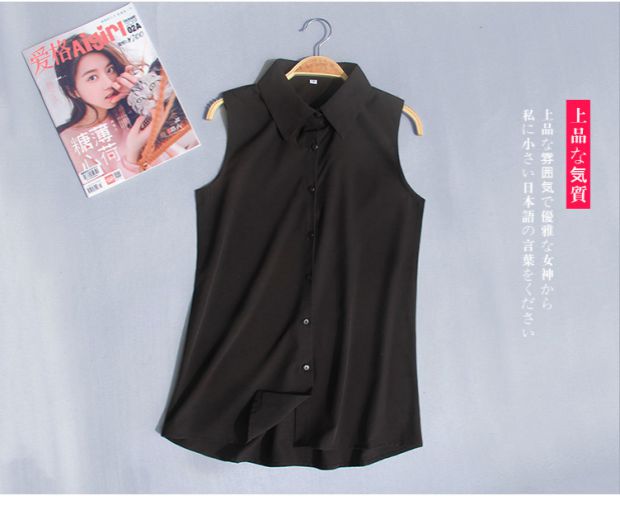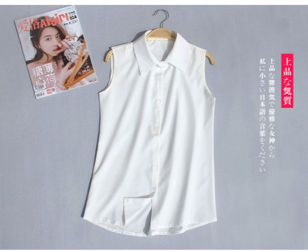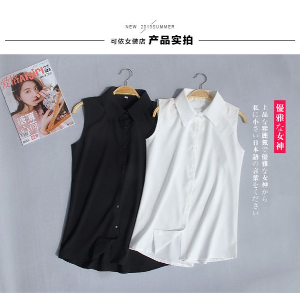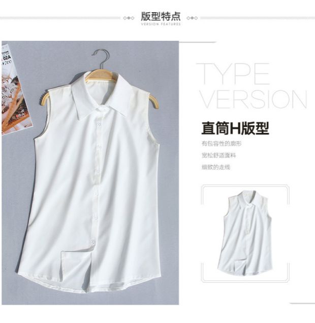 夏季新款加大碼無袖襯衫女韓版職業裝雪紡衫百搭白襯衣背心打底衫