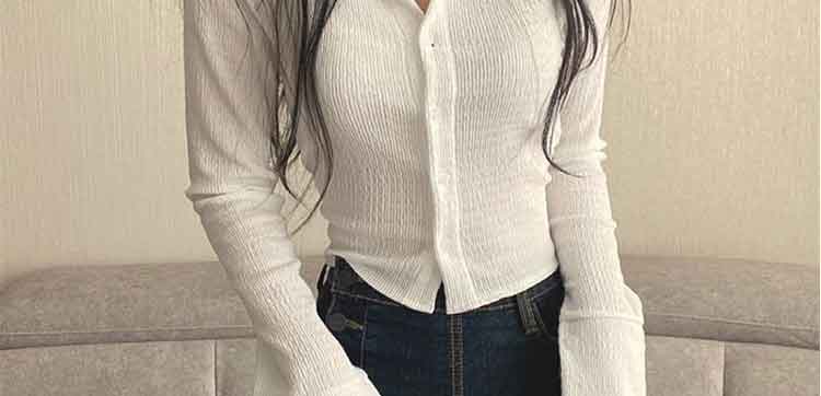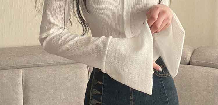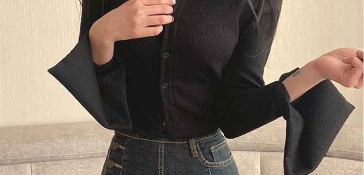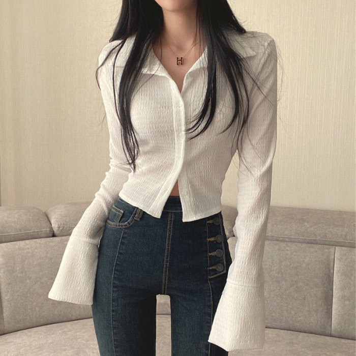 撿漏特價剪鏢折釦女裝秋季修身喇叭長袖襯衫女辣妹短款上衣潮