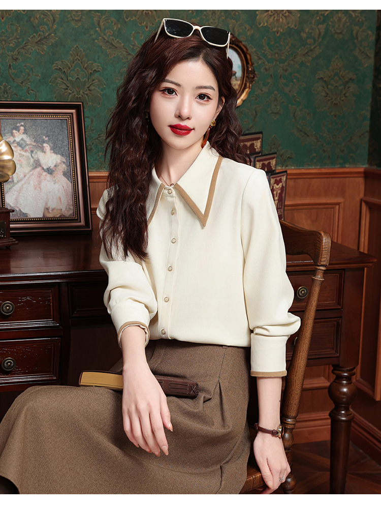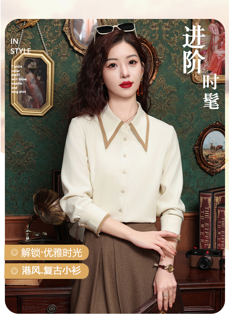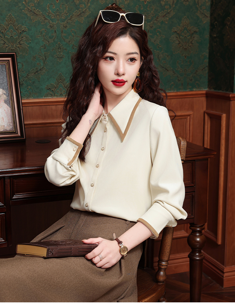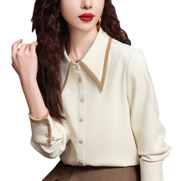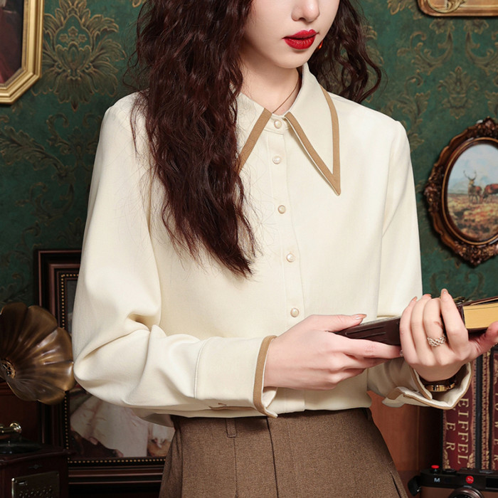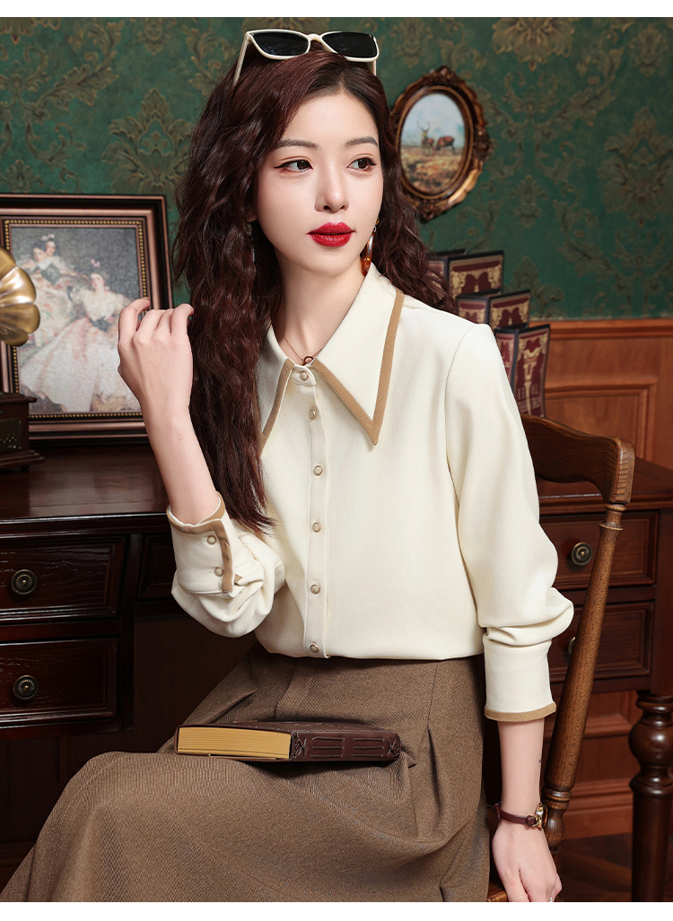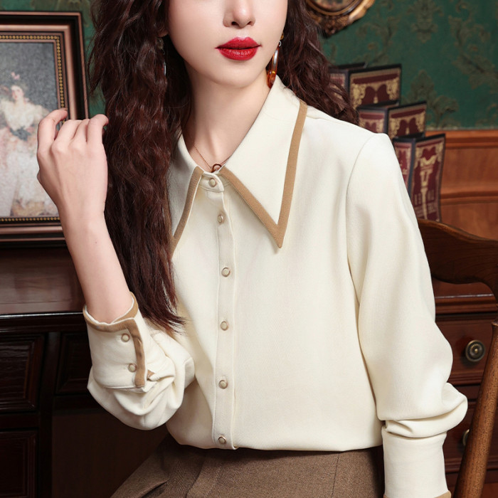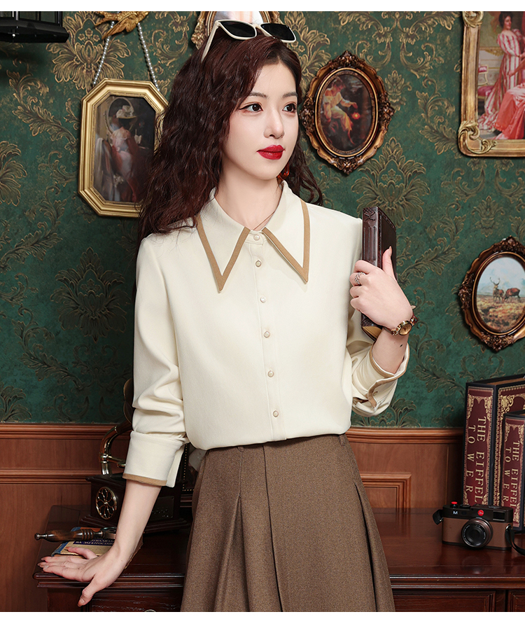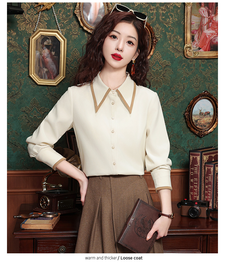 高級感氣質長袖襯衫女裝春秋冬新款洋氣港風上衣翻領磨毛打底襯衣
