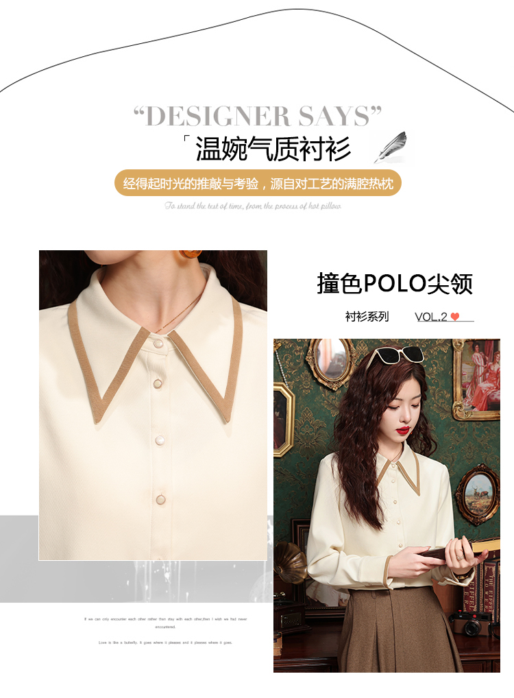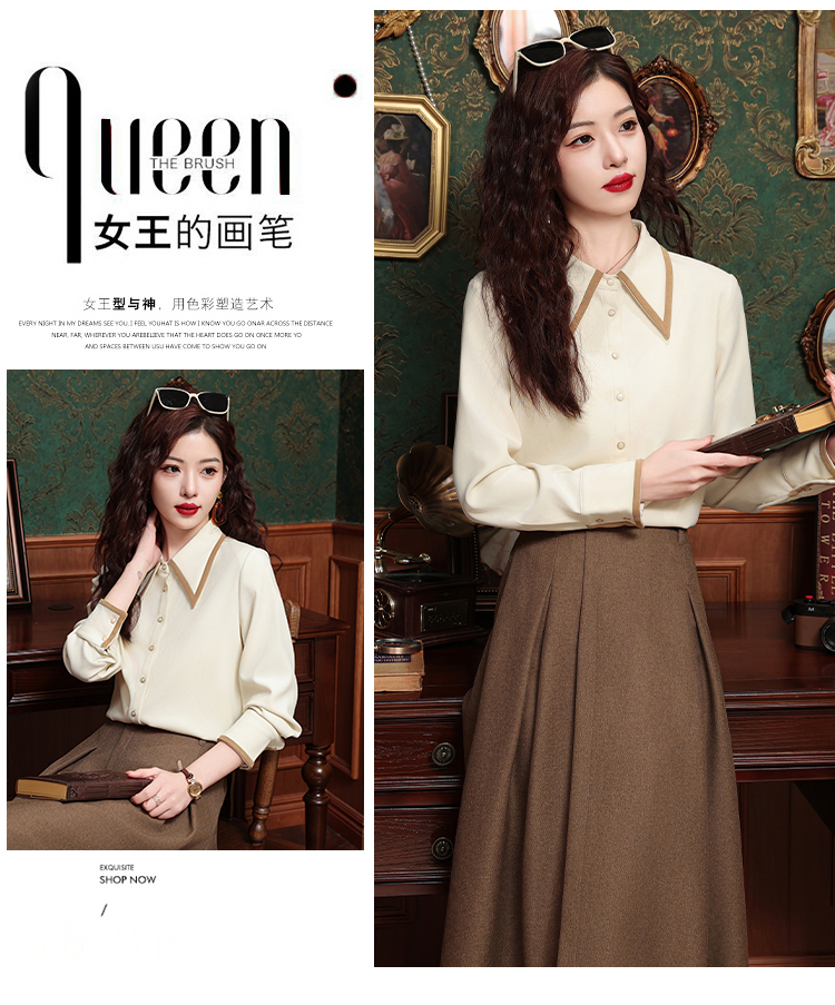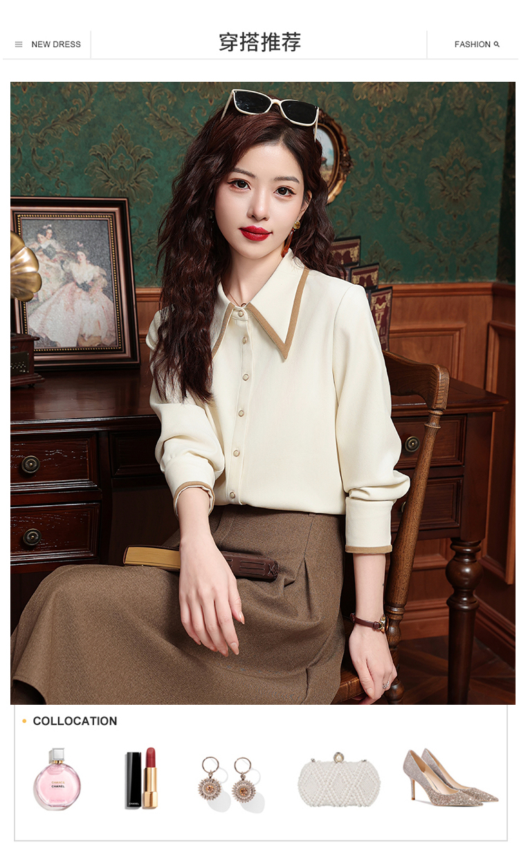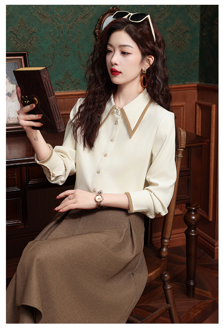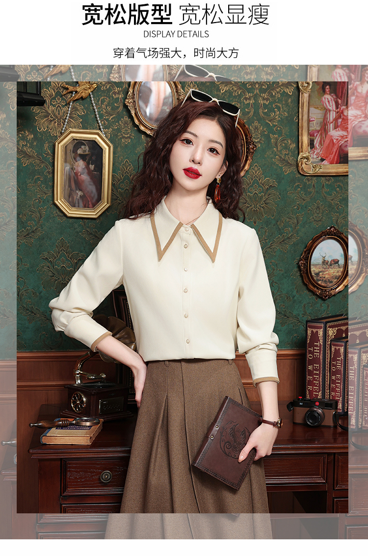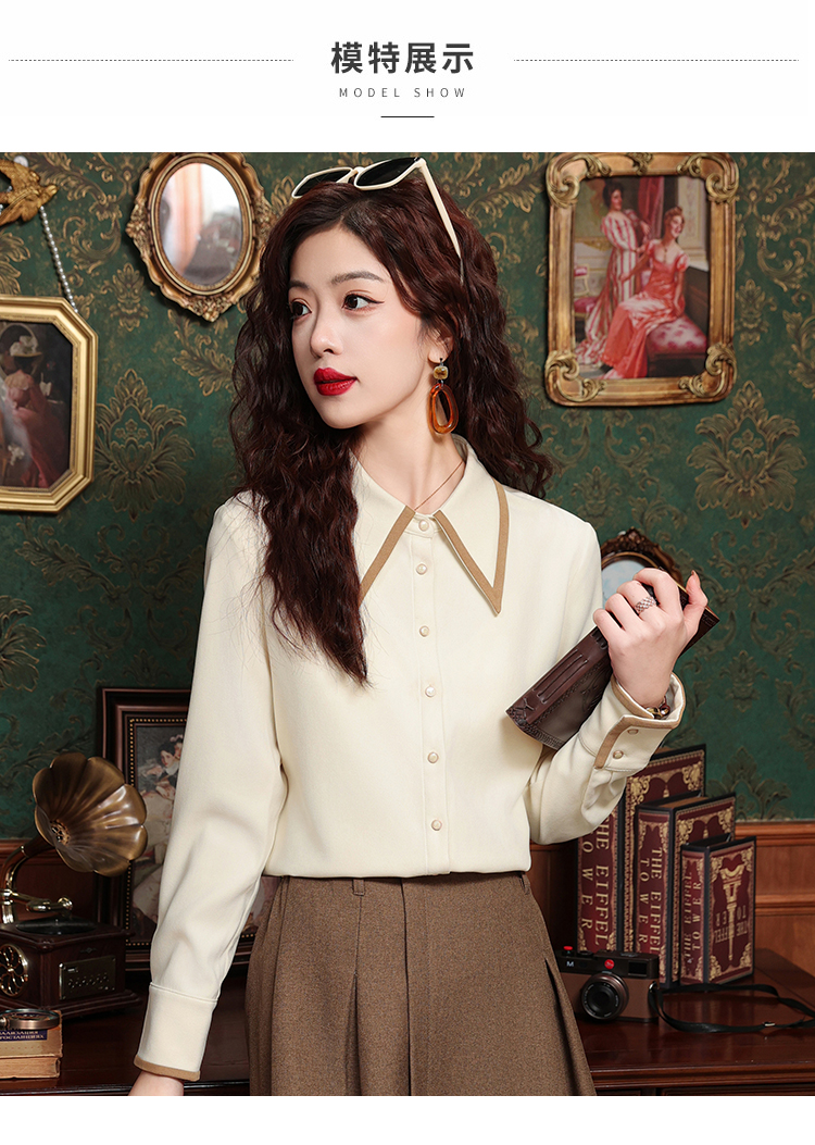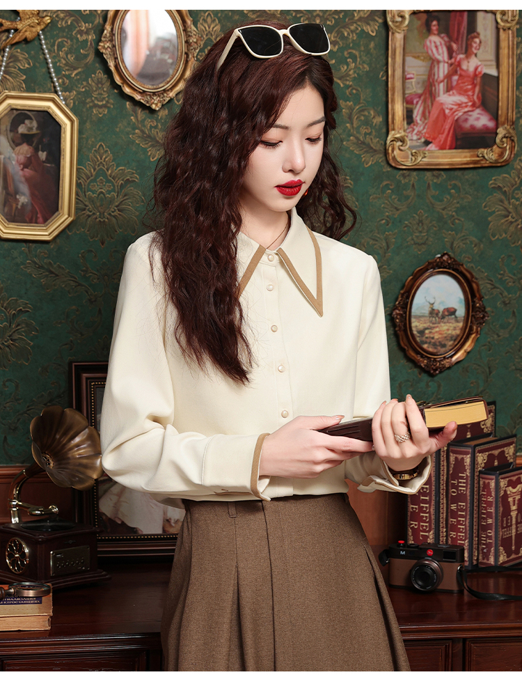 高級感氣質長袖襯衫女裝春秋冬新款洋氣港風上衣翻領磨毛打底襯衣