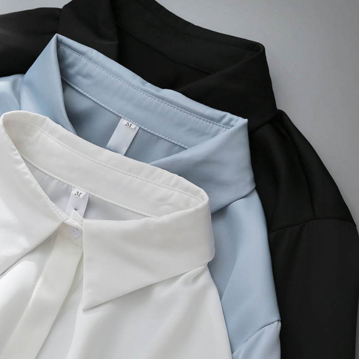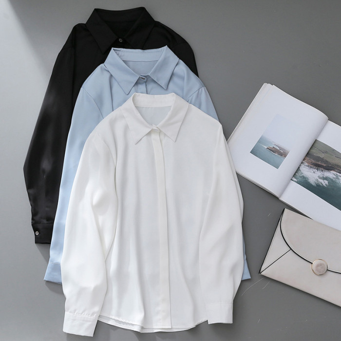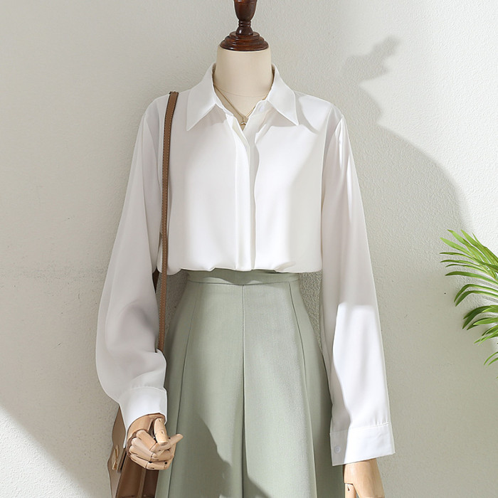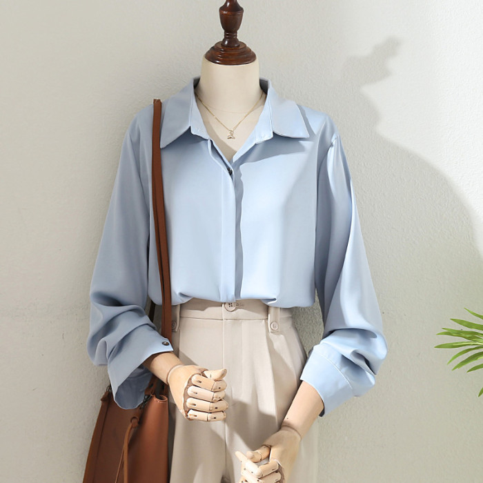 職業通勤垂感百搭藍色雪紡襯衫女2025春秋新款正裝港風長袖OL上衣