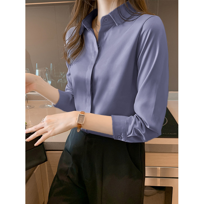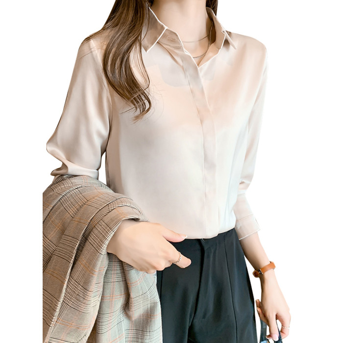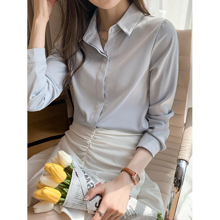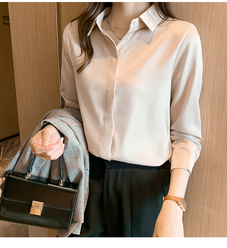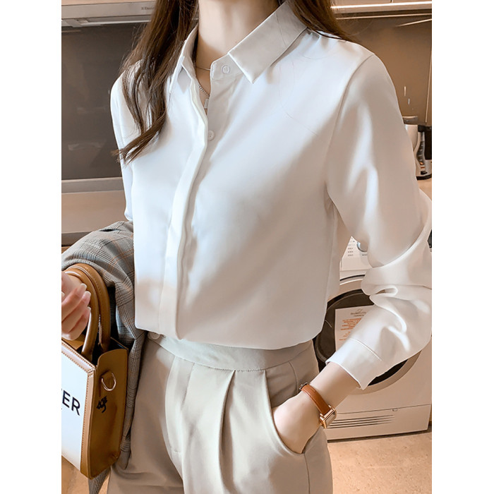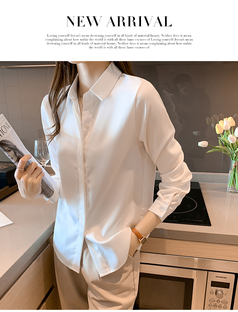 白色雪紡防走光襯衫女春秋新款設計感小衆寬松正裝職業面試襯衣女