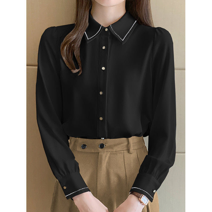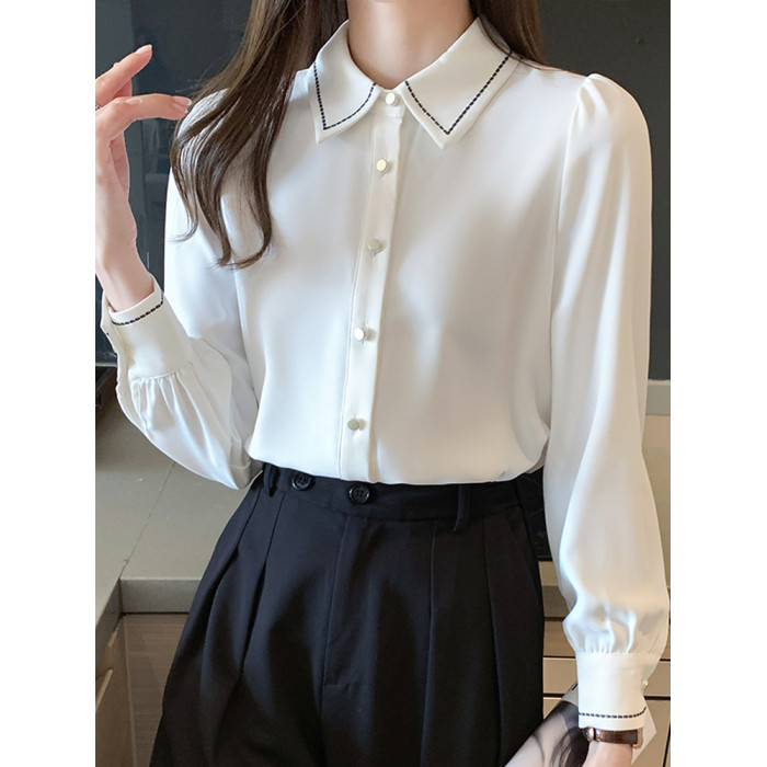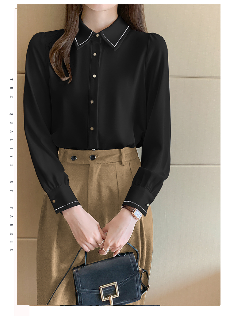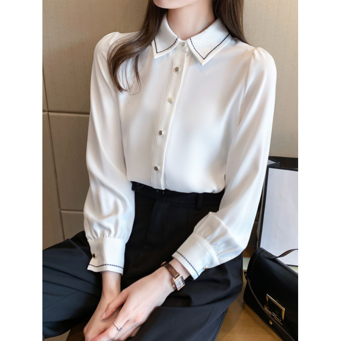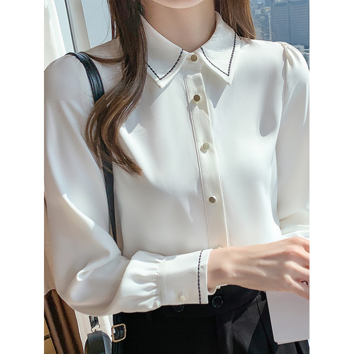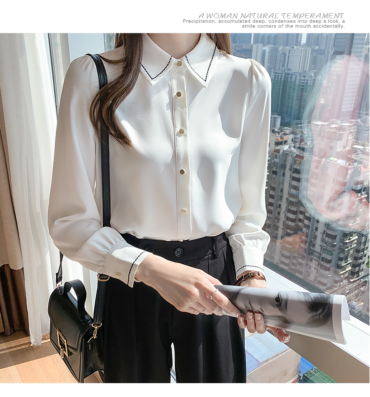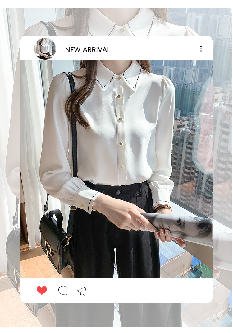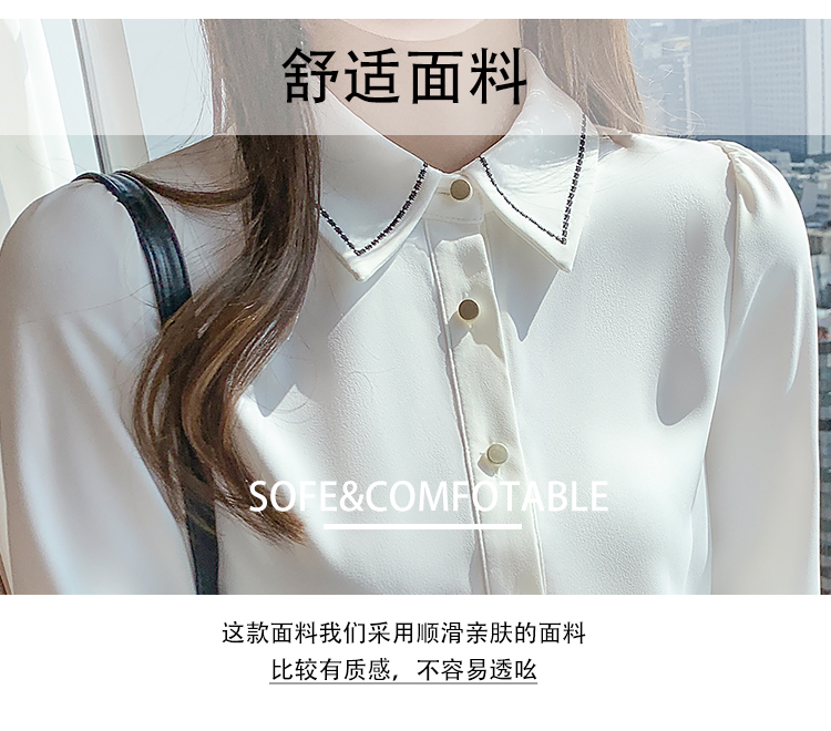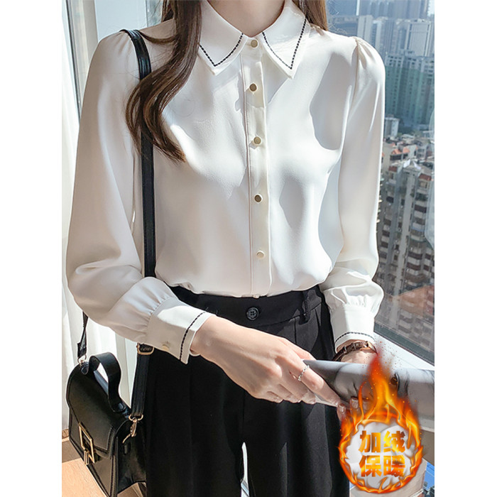 白色緞面襯衫女秋冬季法式職業正裝加絨保暖襯衣內搭打底長袖上衣