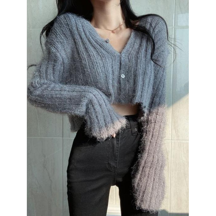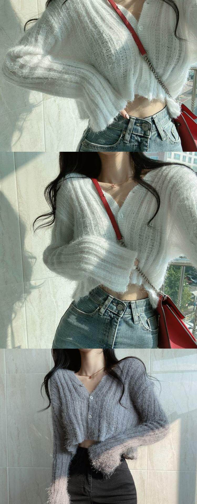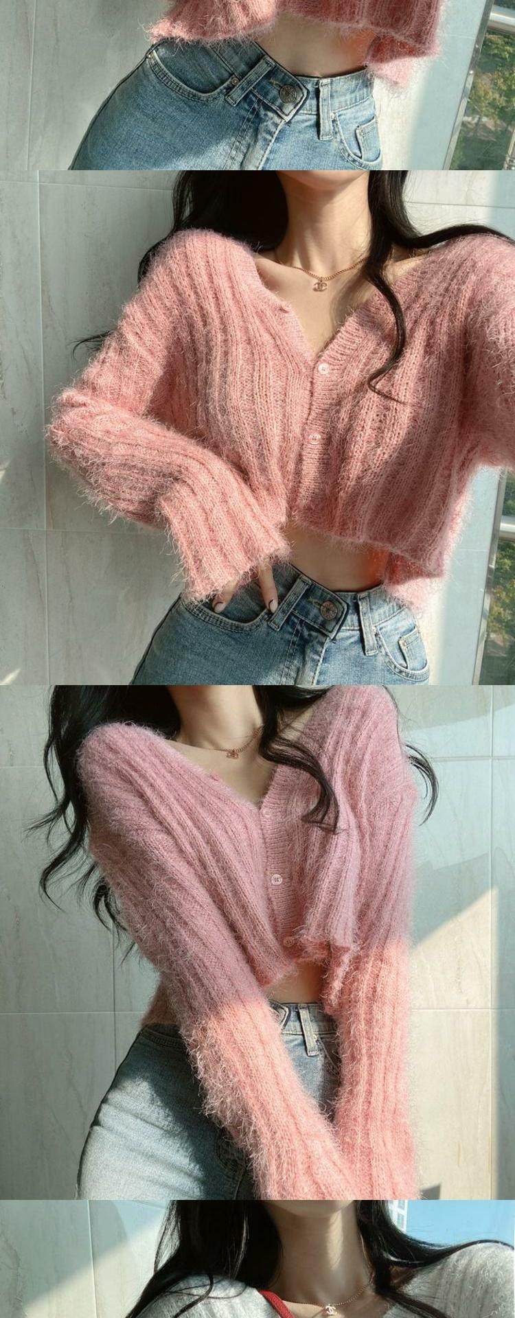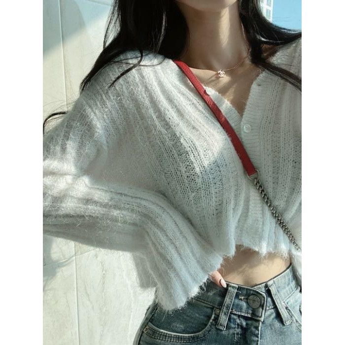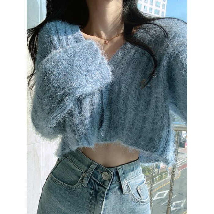 馬海毛毛衣女2025秋冬慵懶風加厚保暖上衣百搭短款針織開衫外套潮