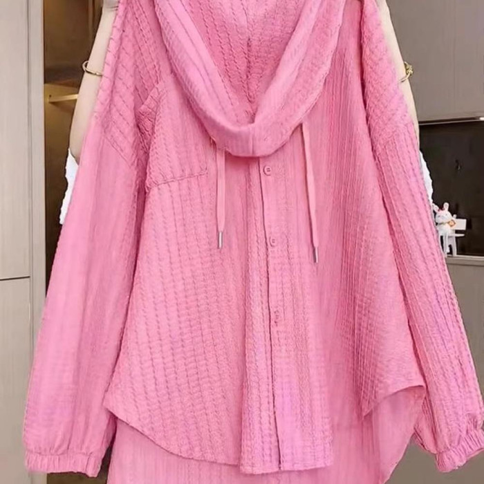 早秋襯衫特大碼300斤歐貨連帽開衫衛衣女微胖mm顯瘦休閒遮肉外套T