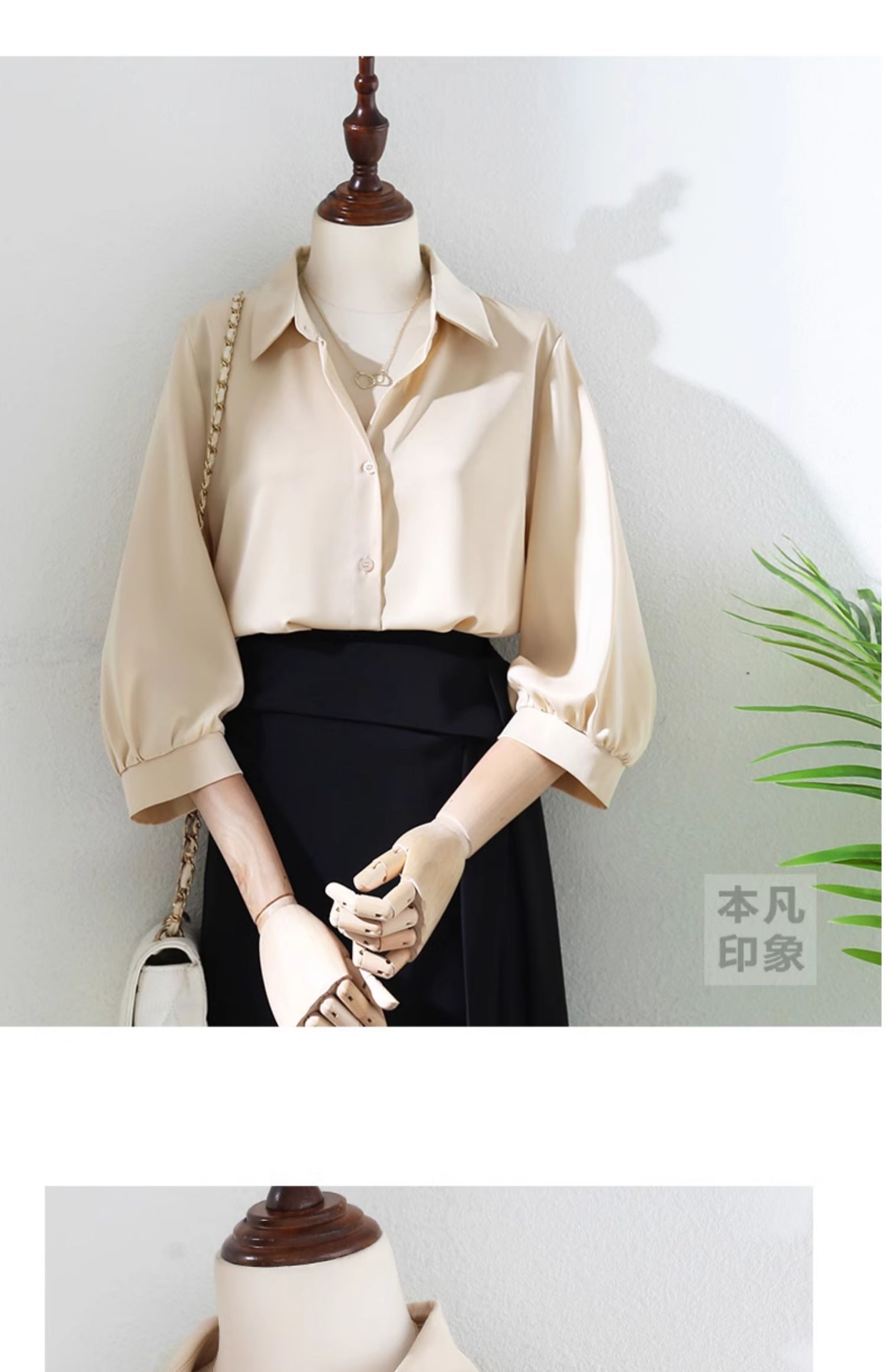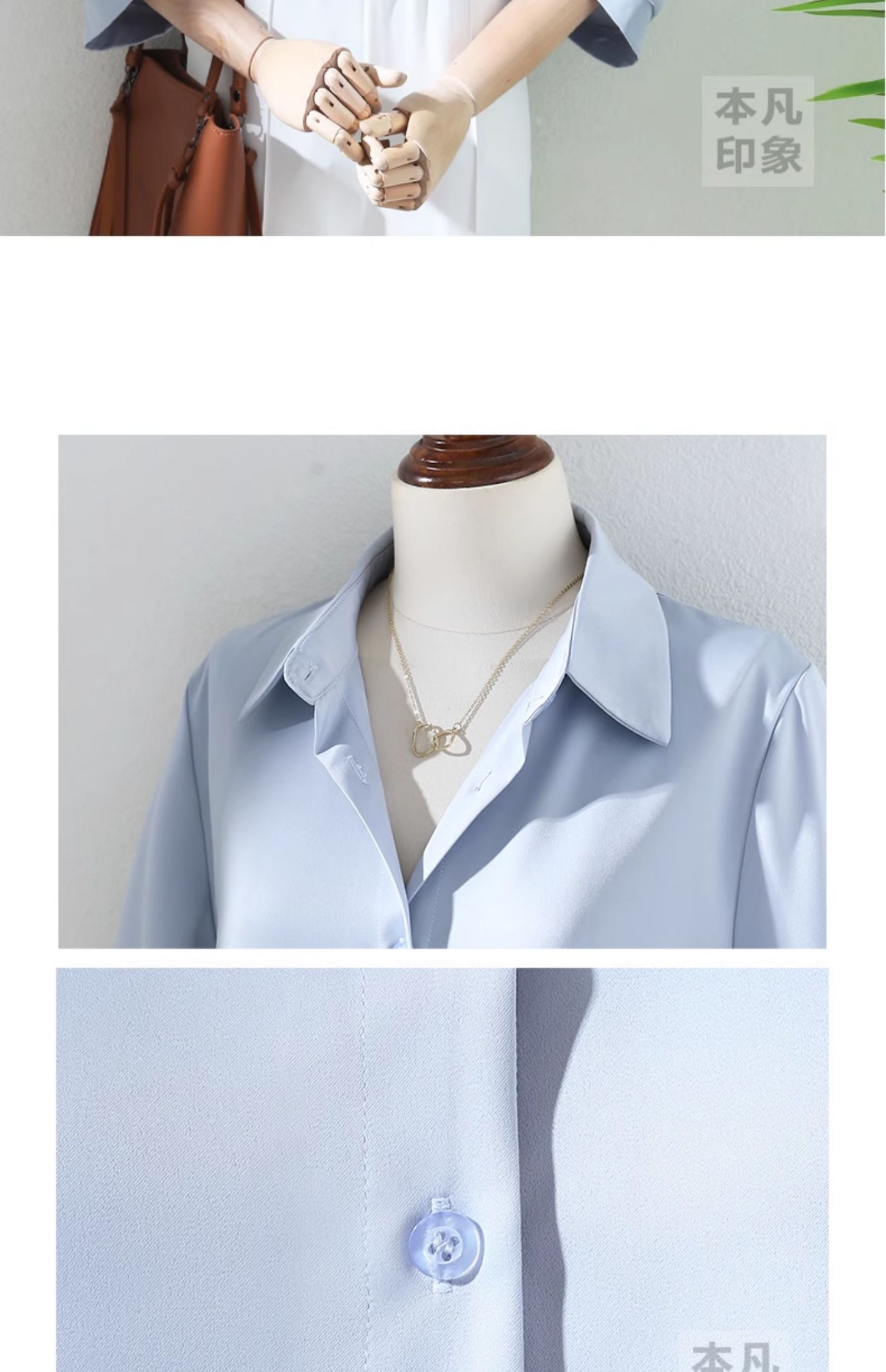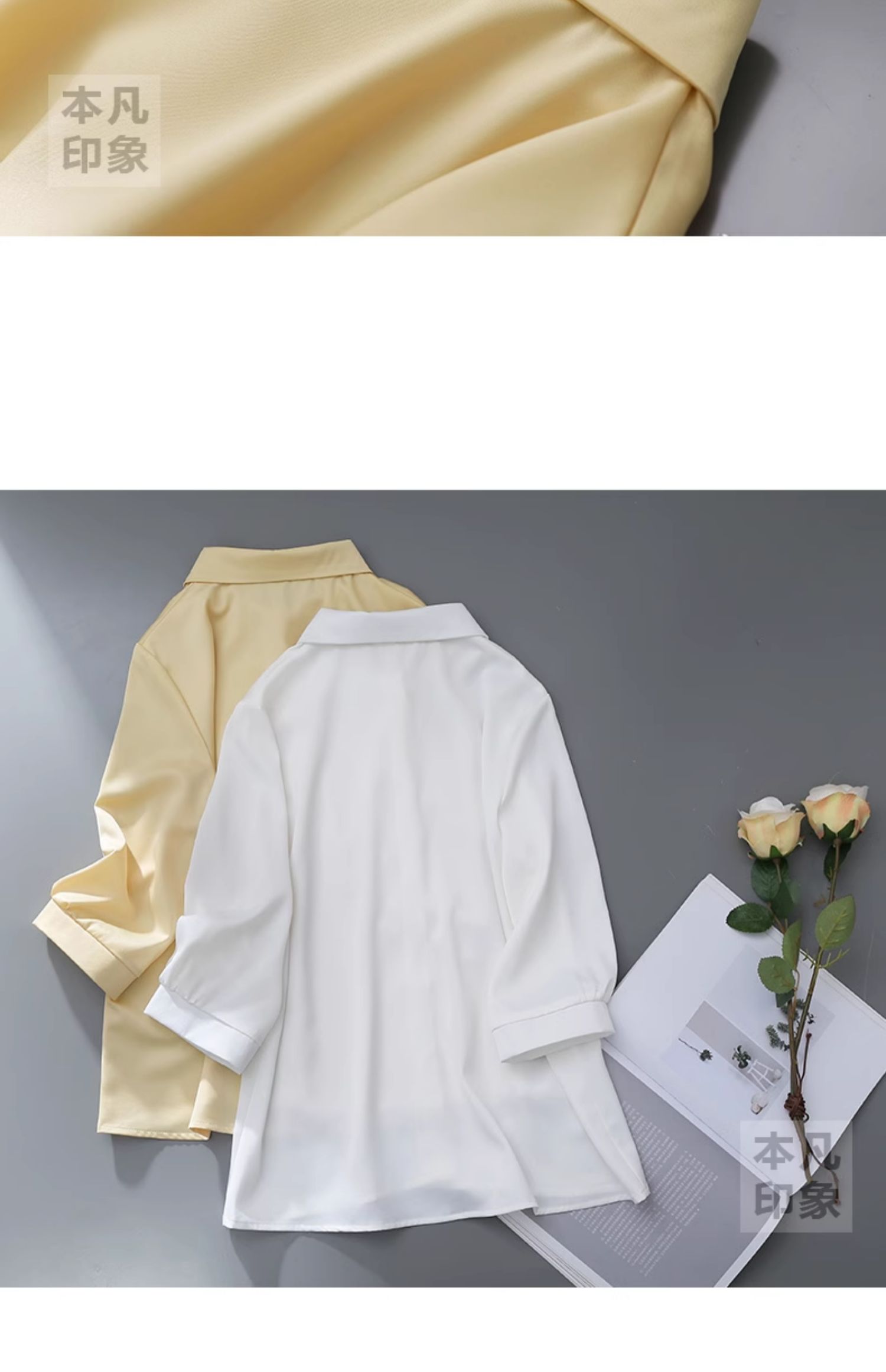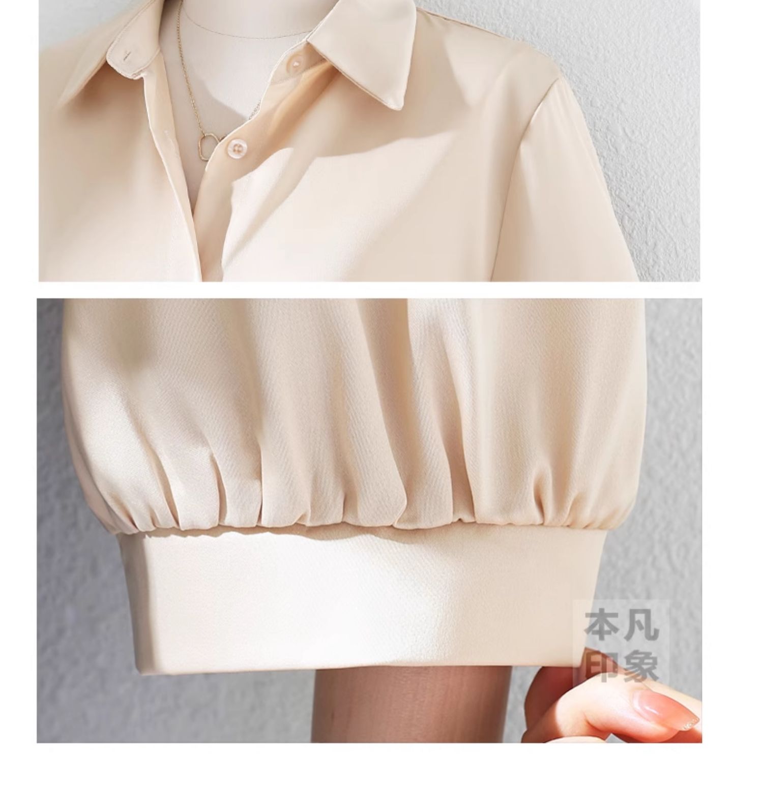 夏裝垂墜感氣質緞面五分袖白襯衫女2025女裝翻領職業通勤短袖上衣