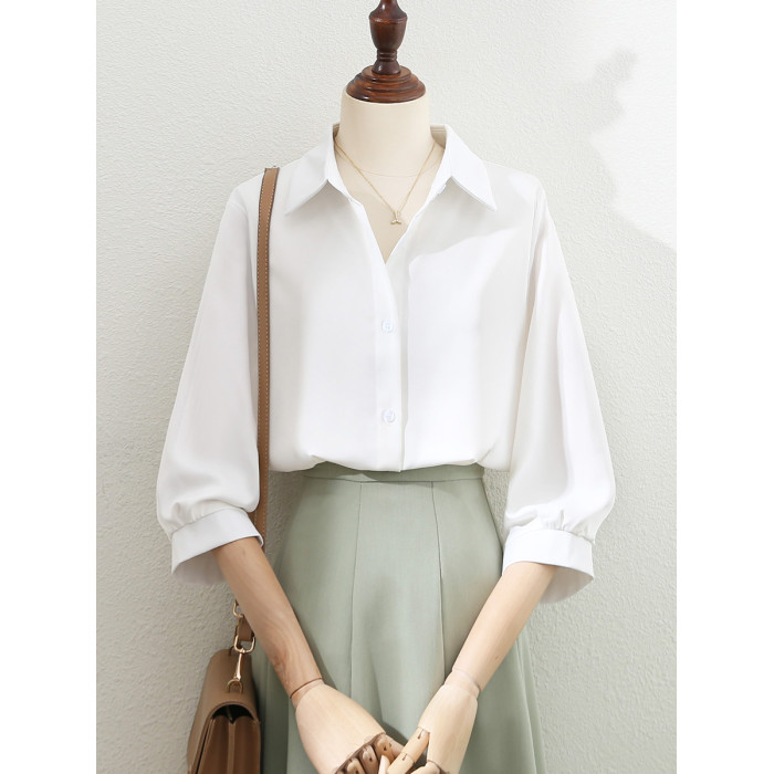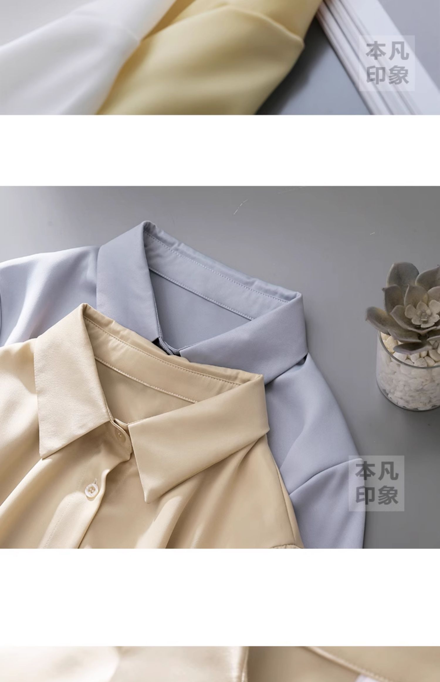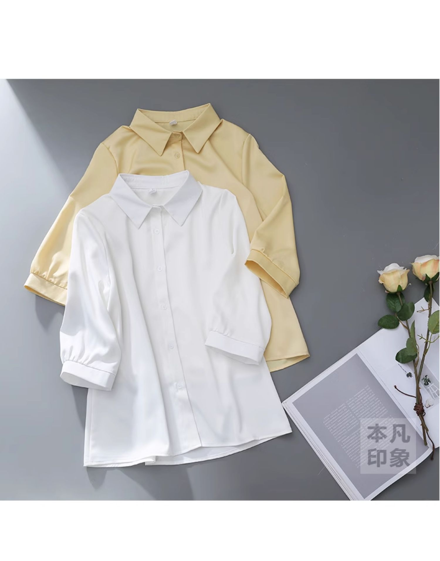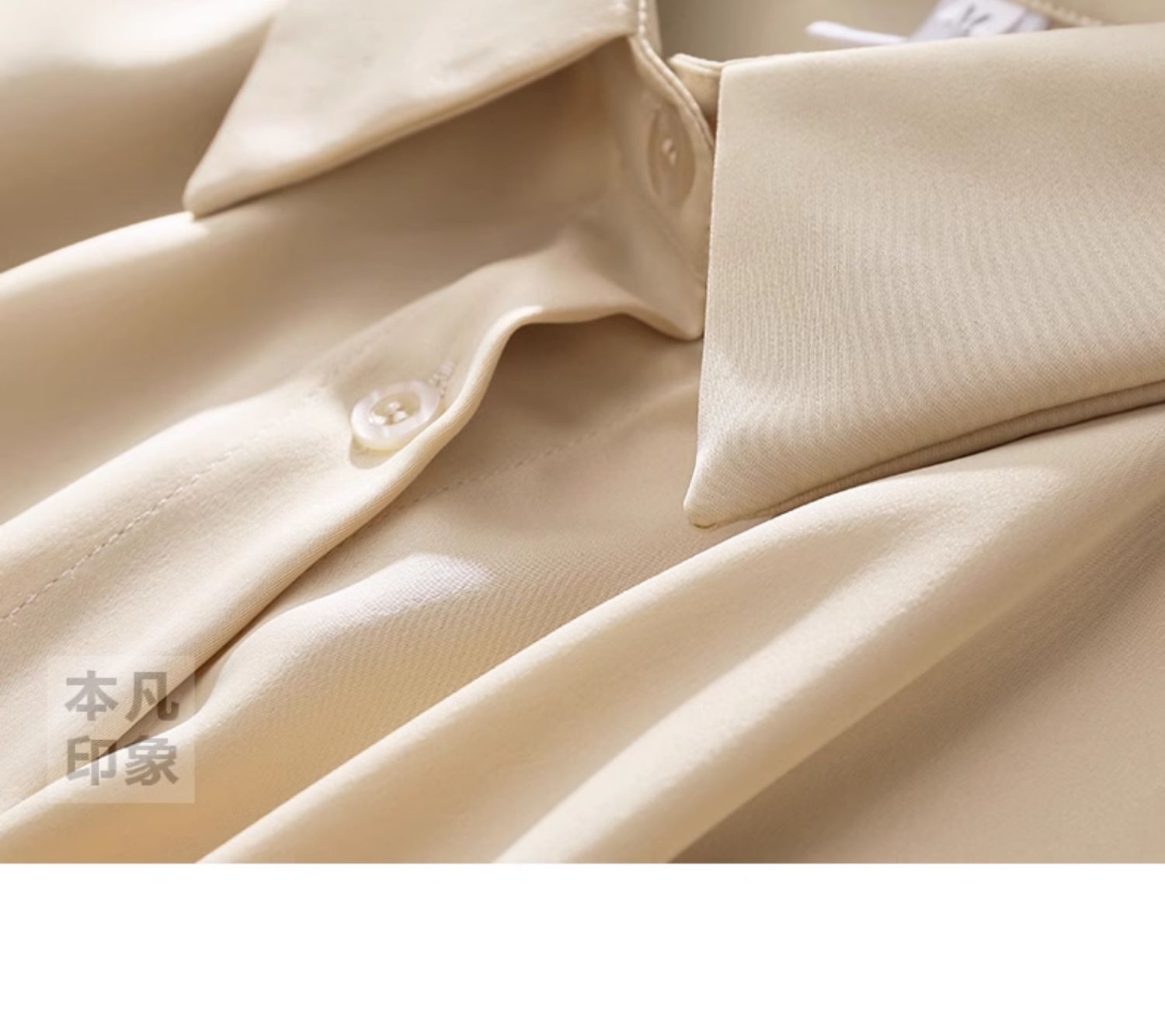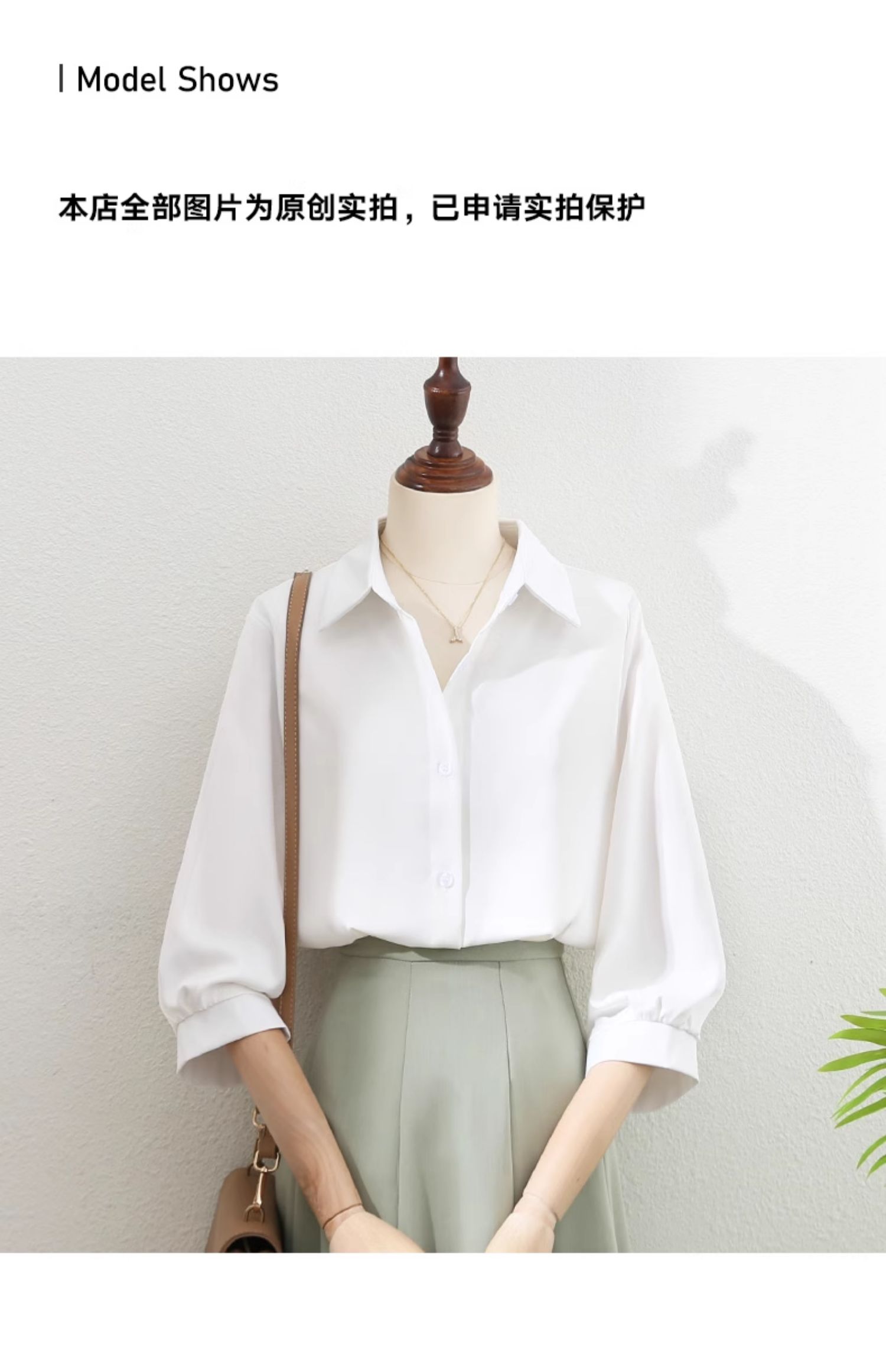 夏裝垂墜感氣質緞面五分袖白襯衫女2025女裝翻領職業通勤短袖上衣