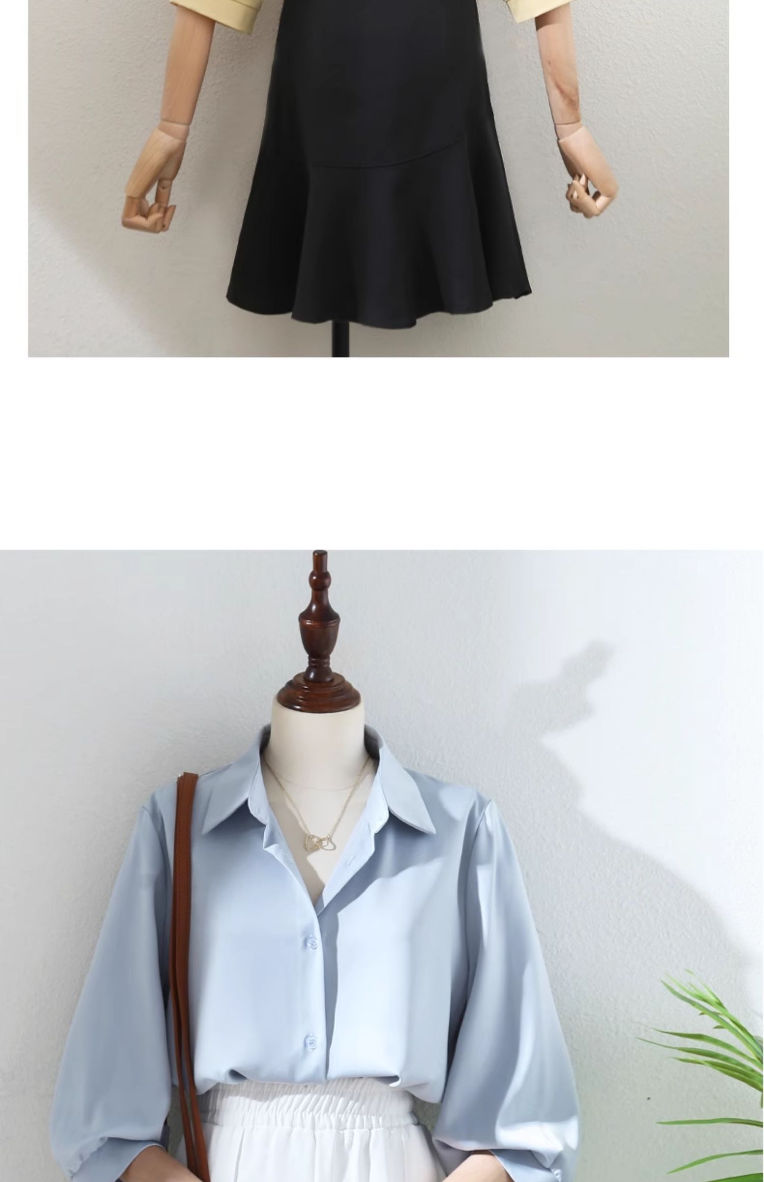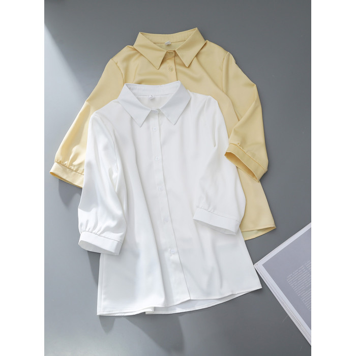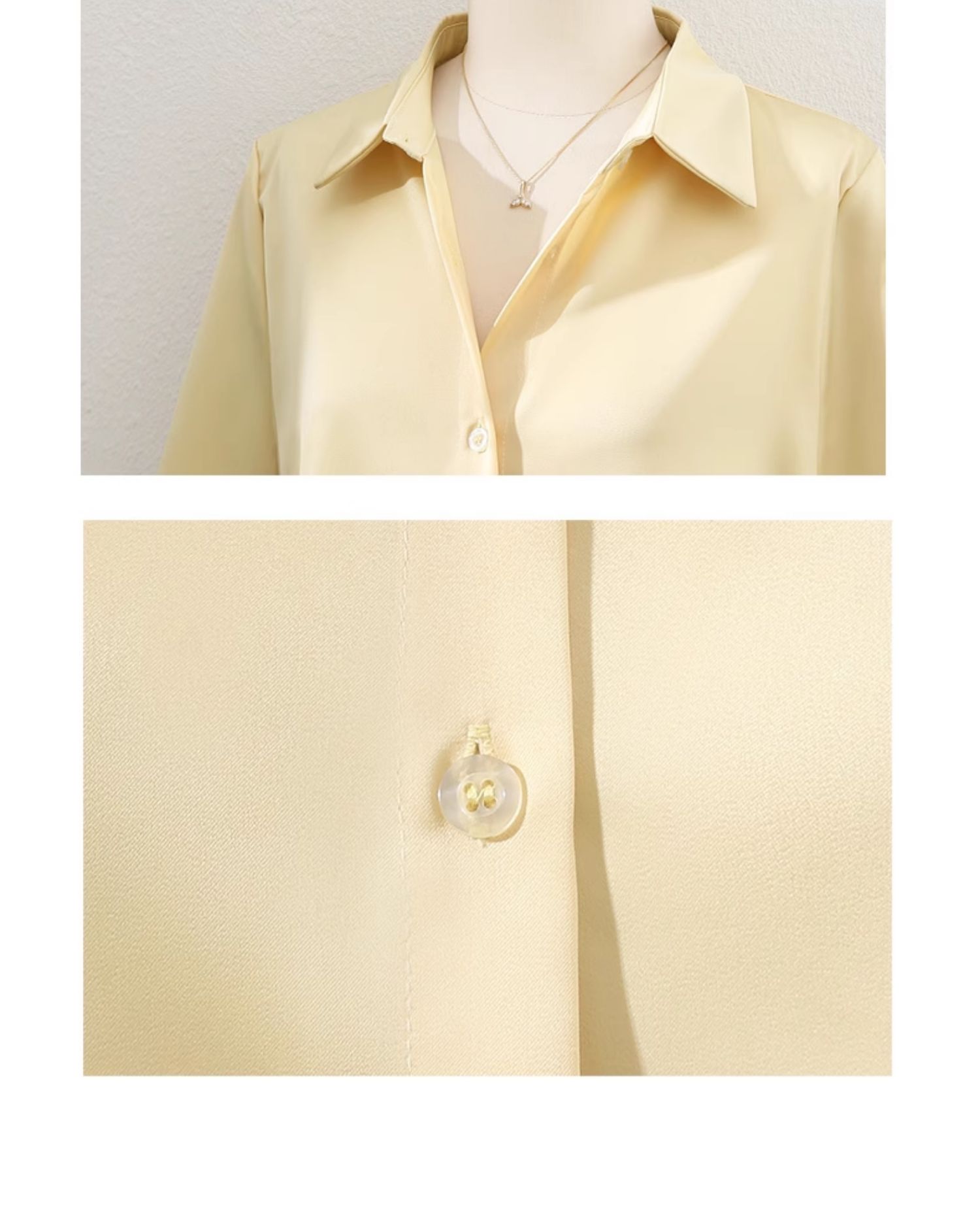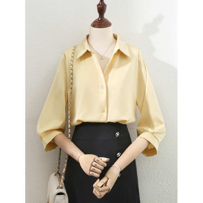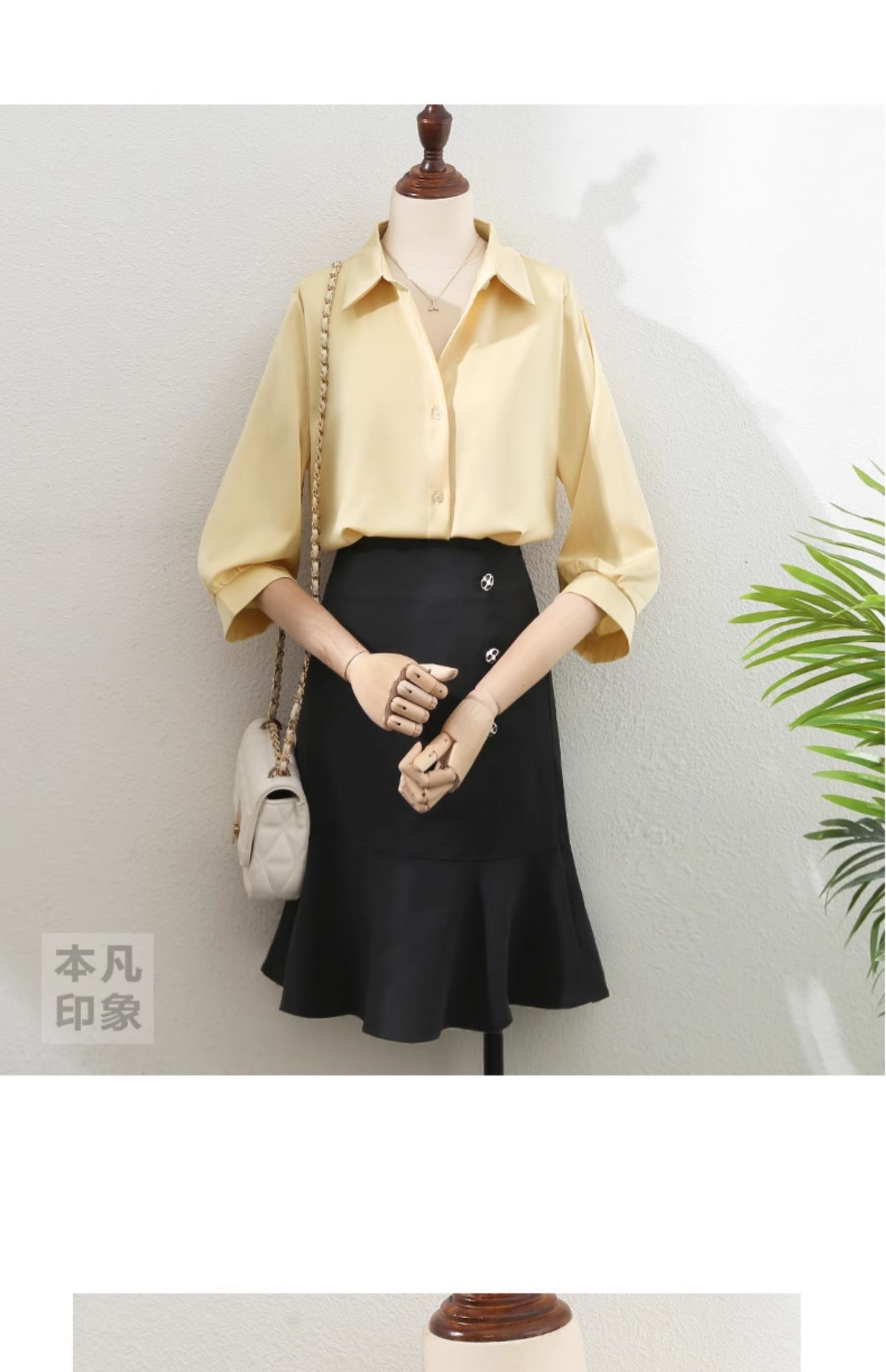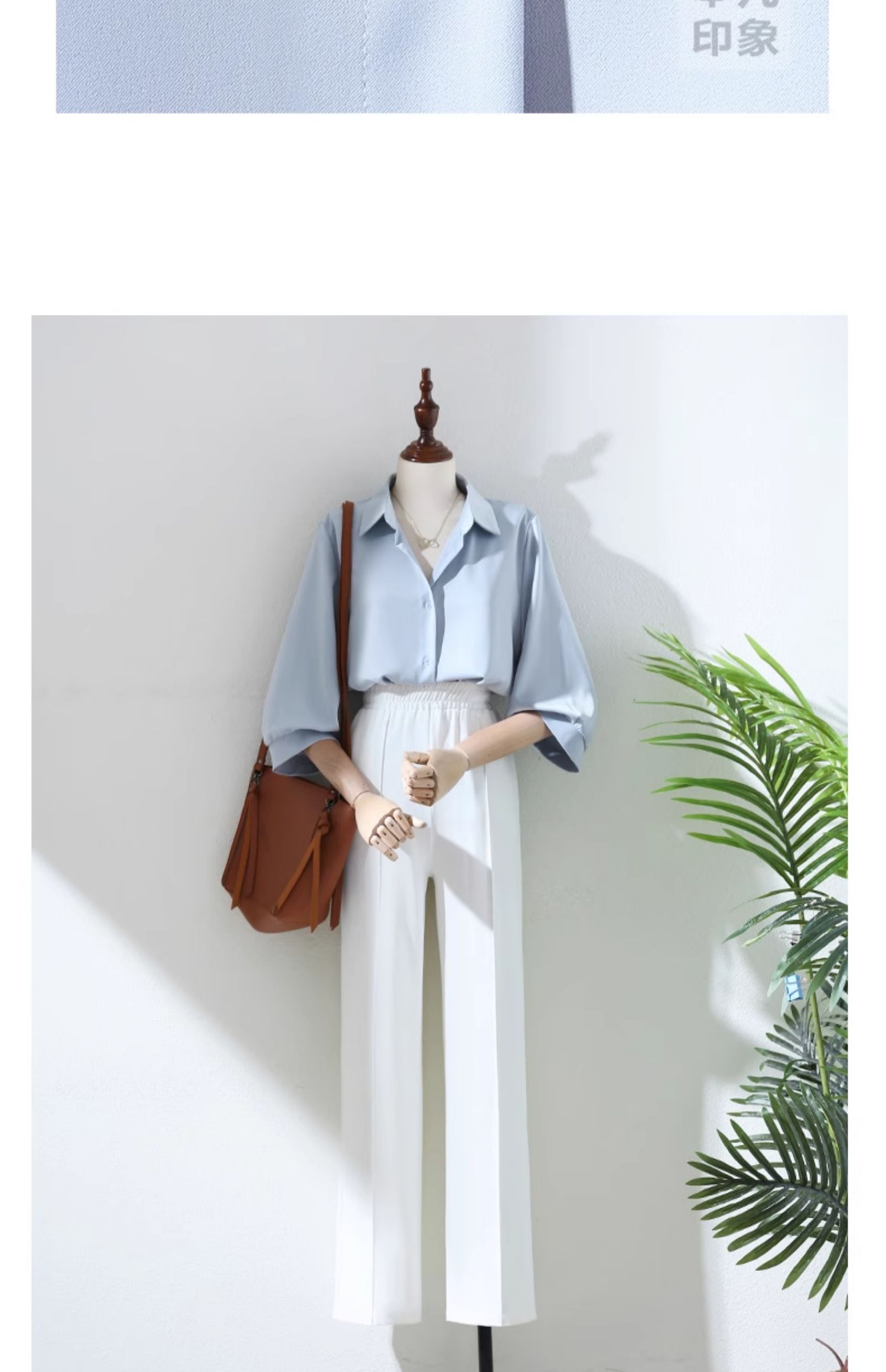 夏裝垂墜感氣質緞面五分袖白襯衫女2025女裝翻領職業通勤短袖上衣