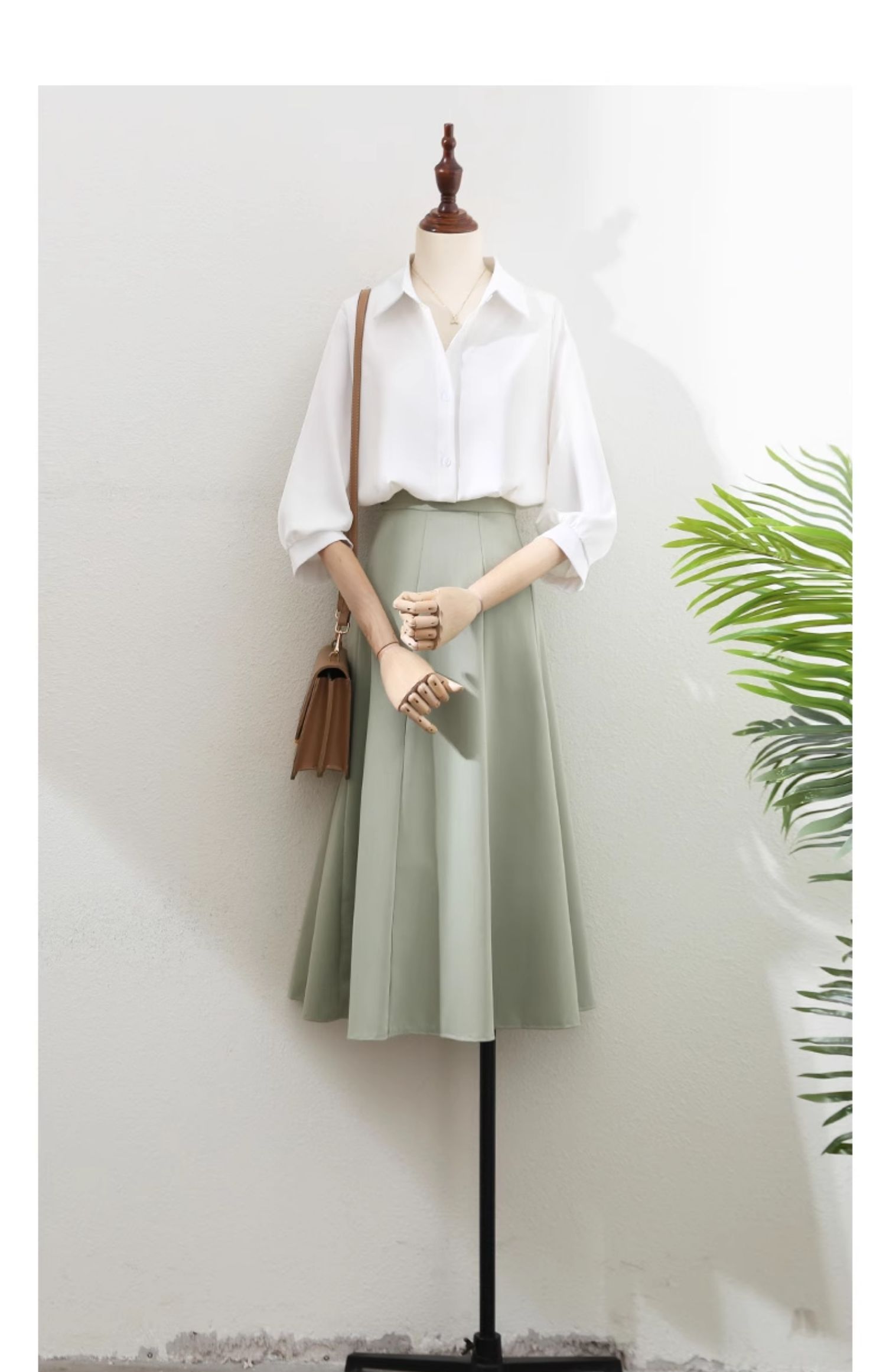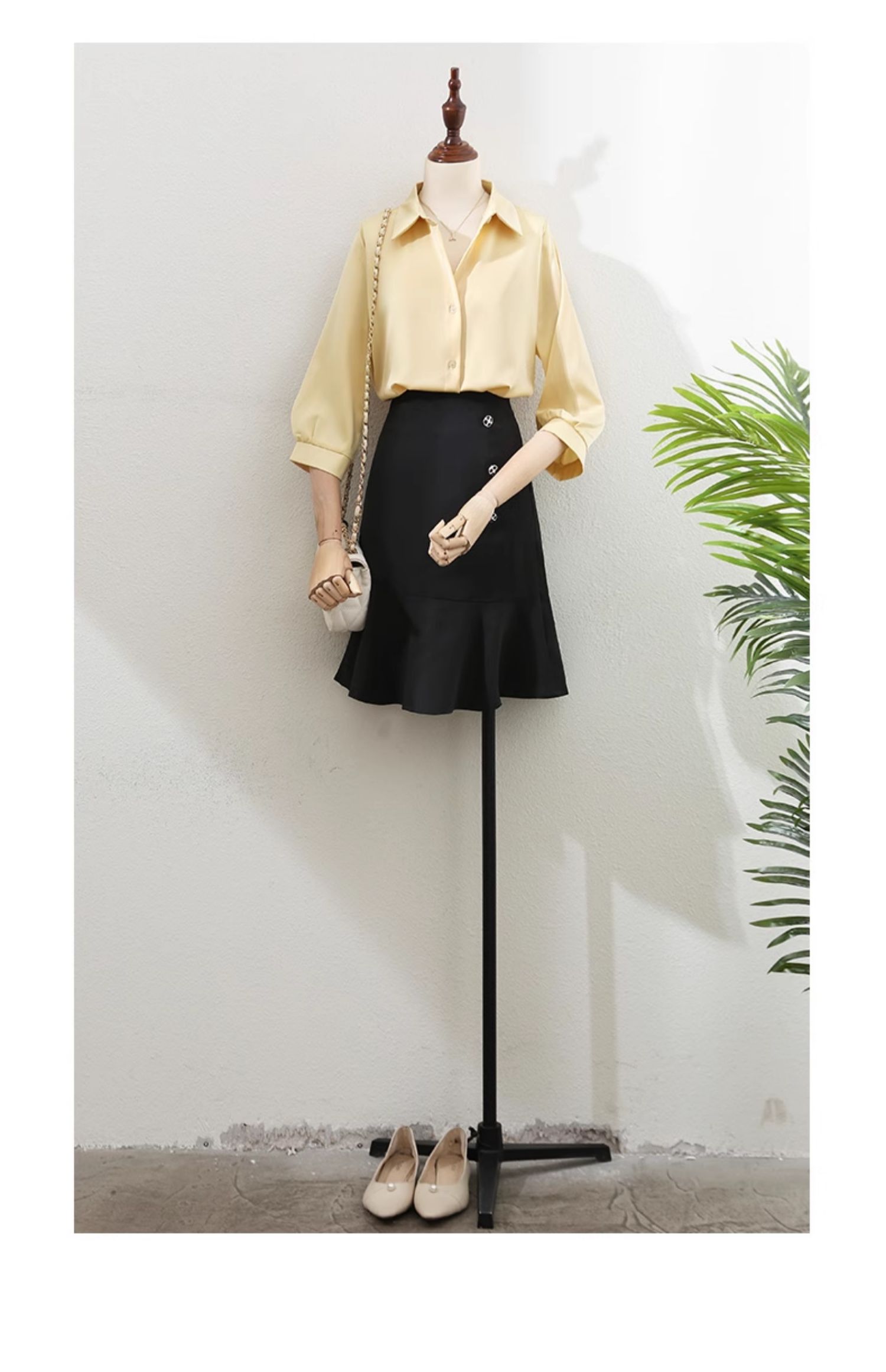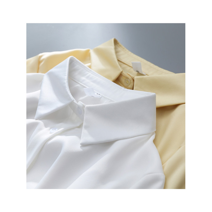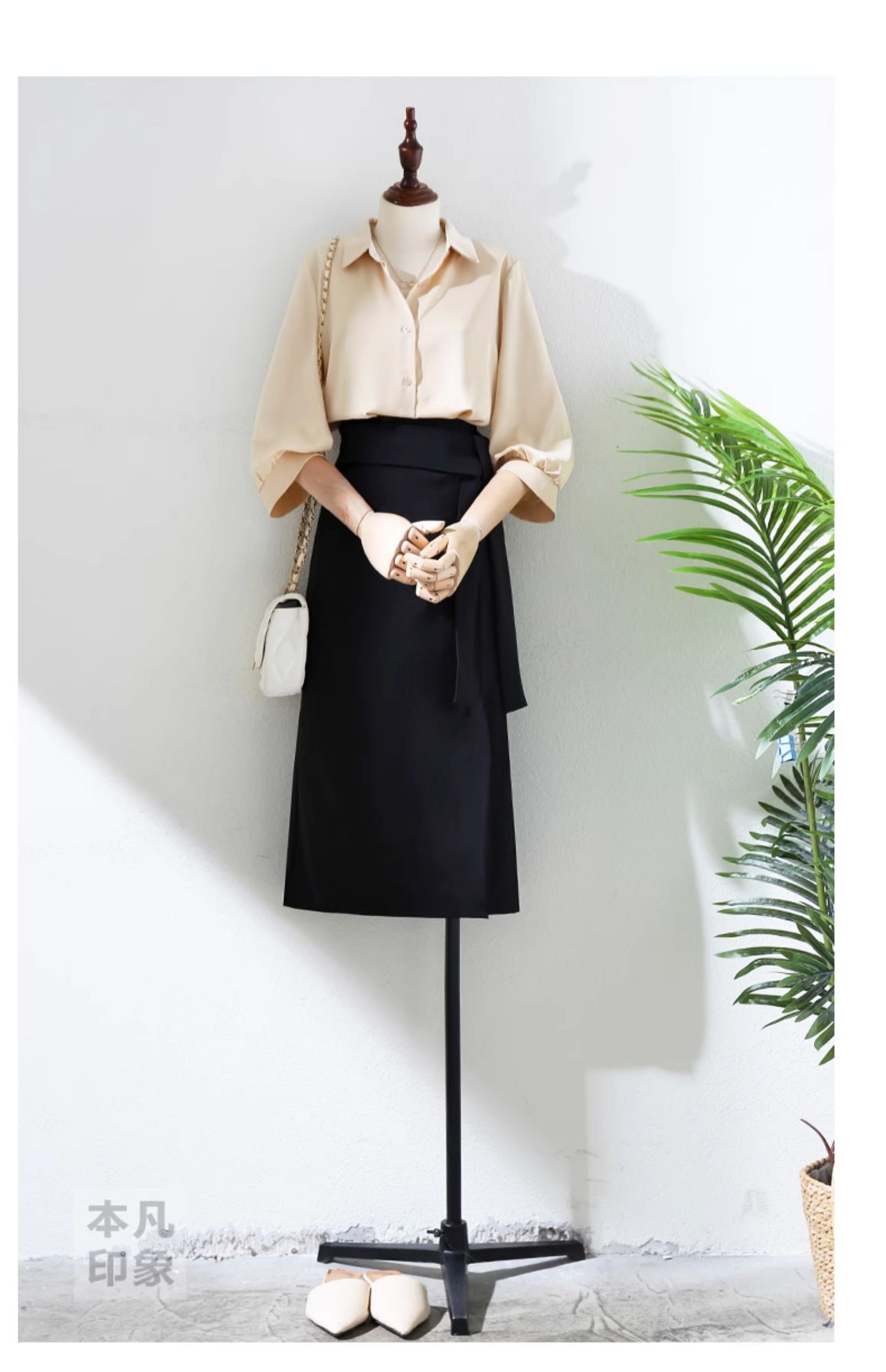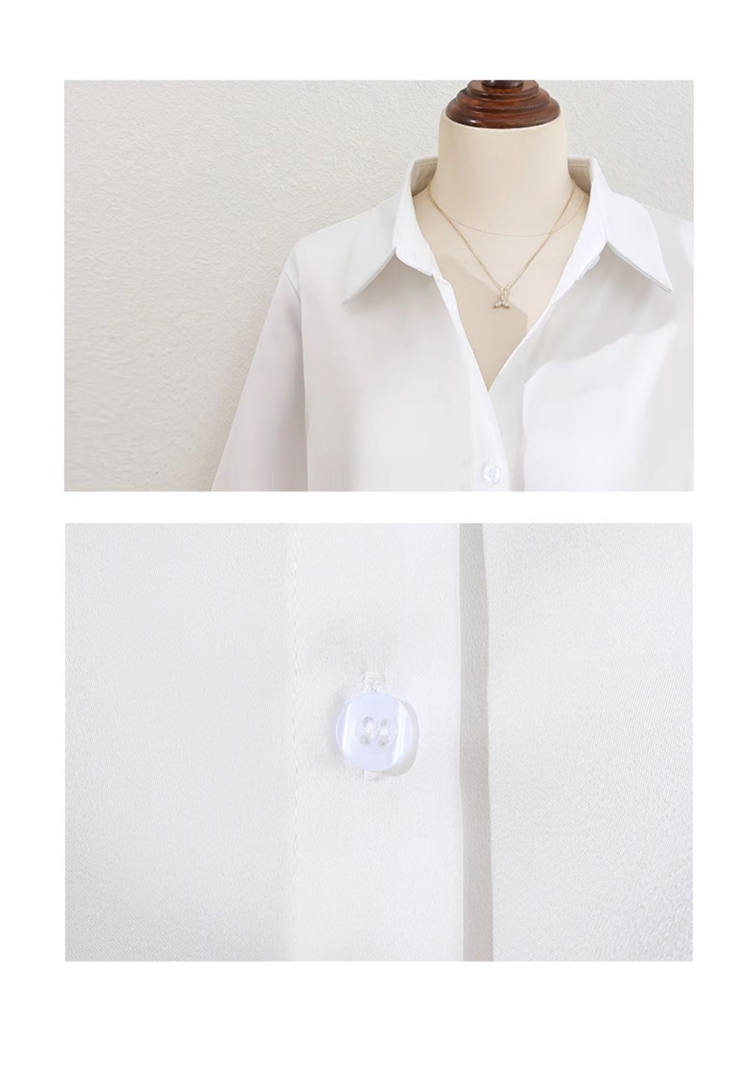 夏裝垂墜感氣質緞面五分袖白襯衫女2025女裝翻領職業通勤短袖上衣
