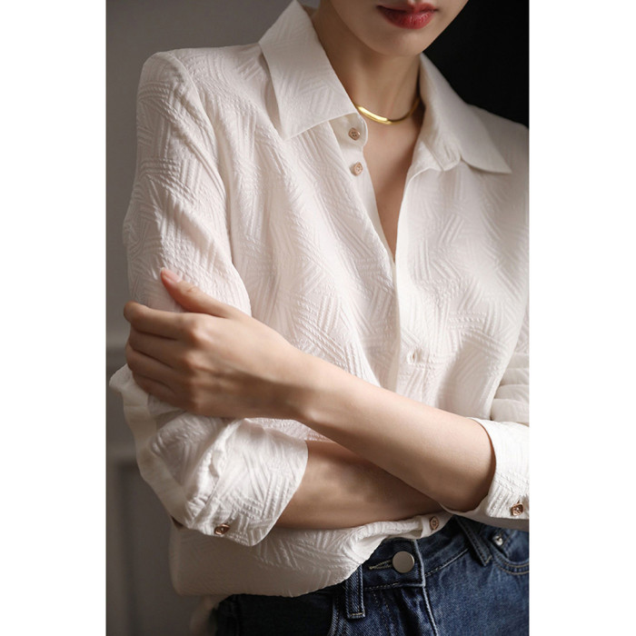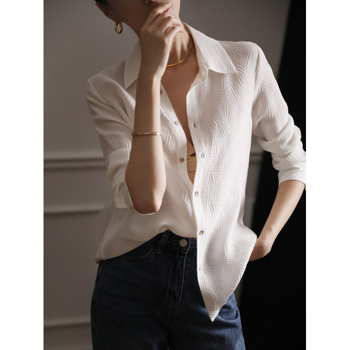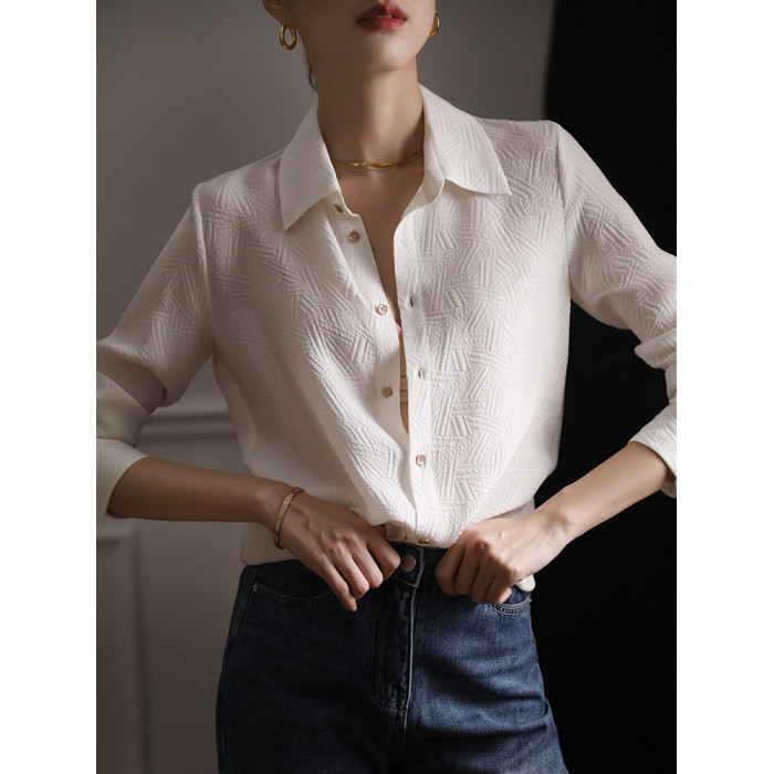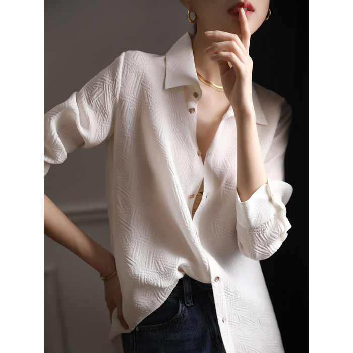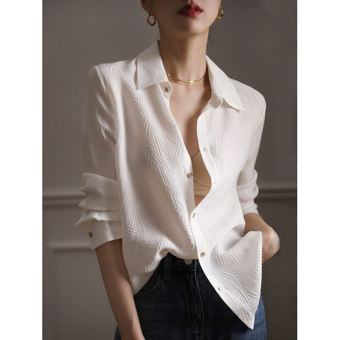 高級感壓花暗紋白色襯衫女春裝2025年新款設計感職業氣質長袖上衣