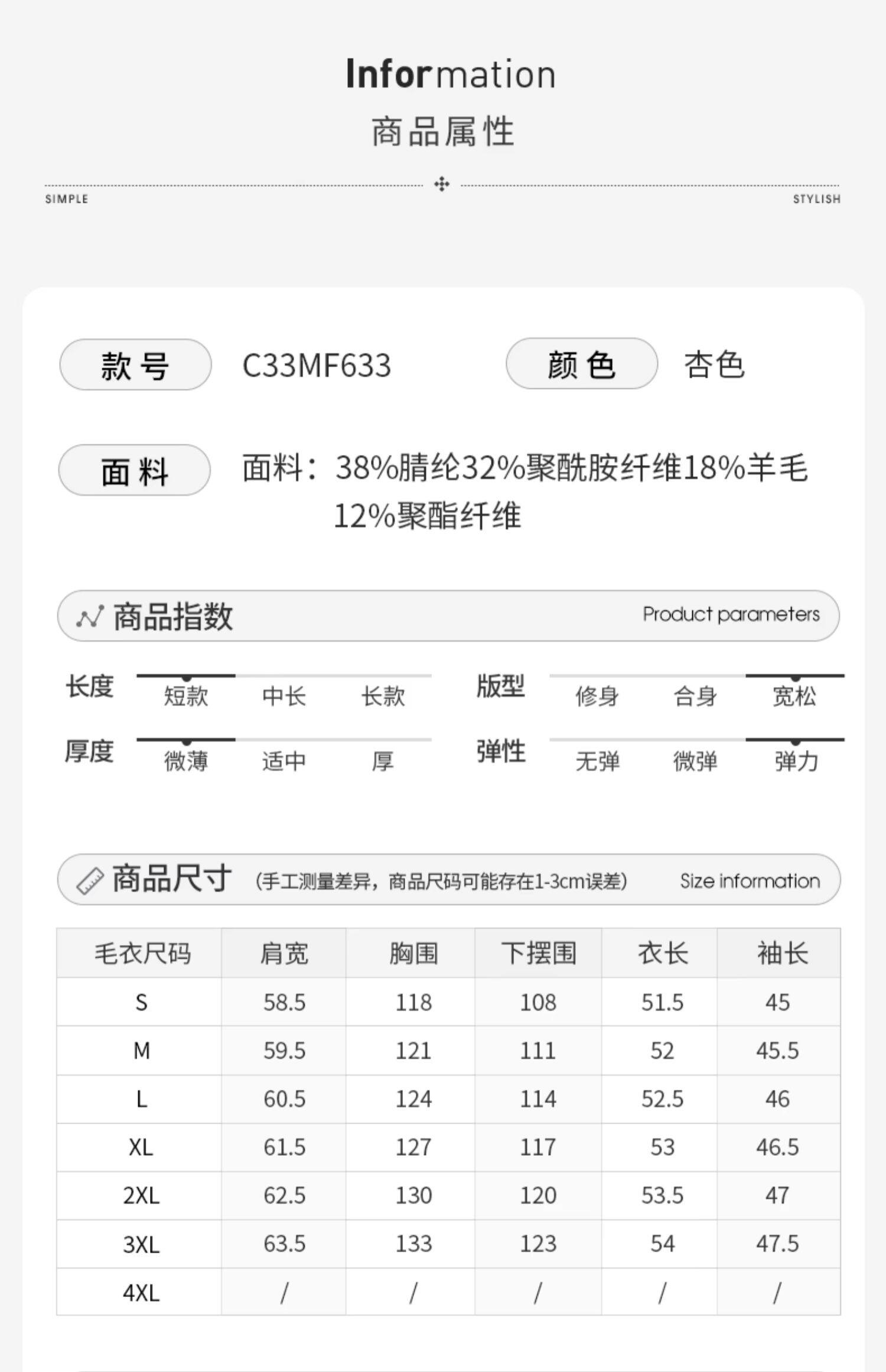 | 服裝版型 | 寬松型 |