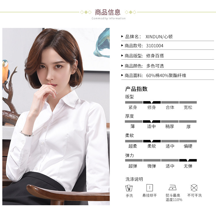 工帝雅GDY2000年經典款女裝長袖襯衫職業斜紋免燙韓版修身白襯衣