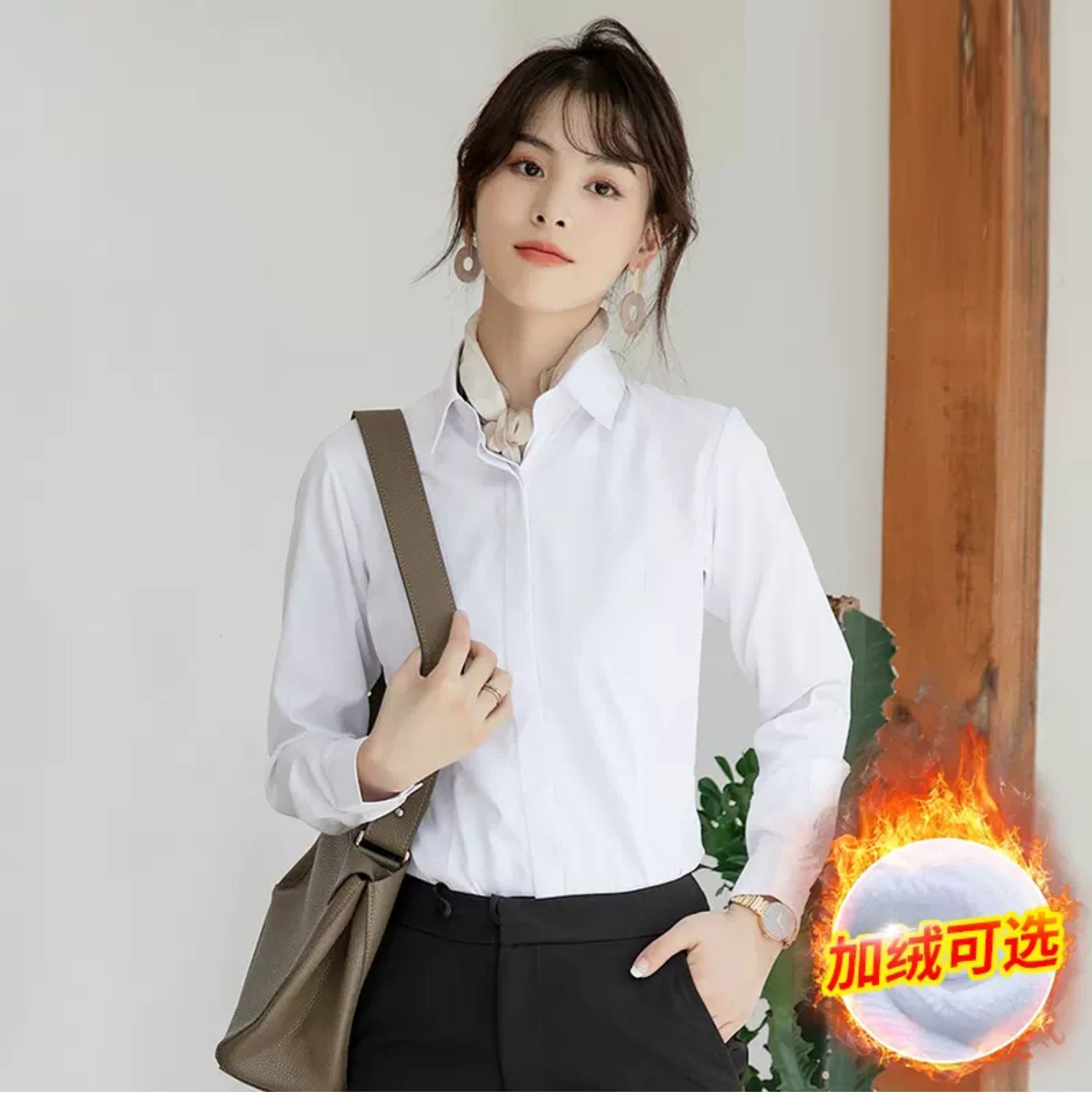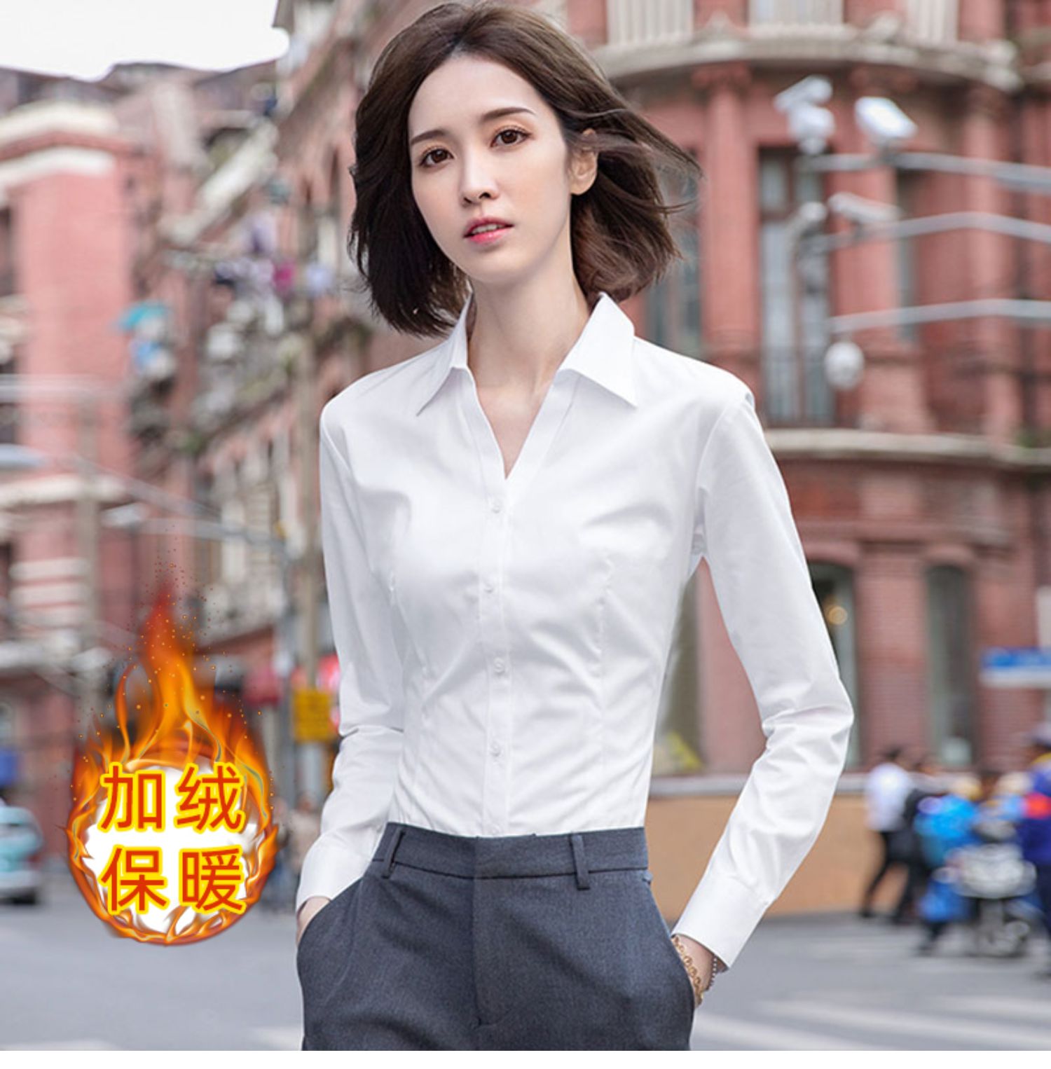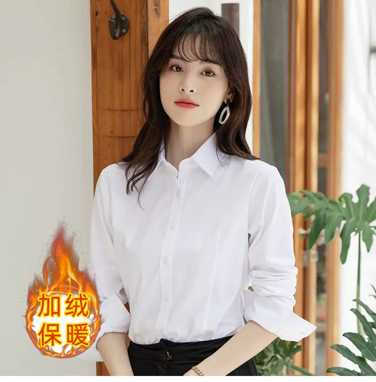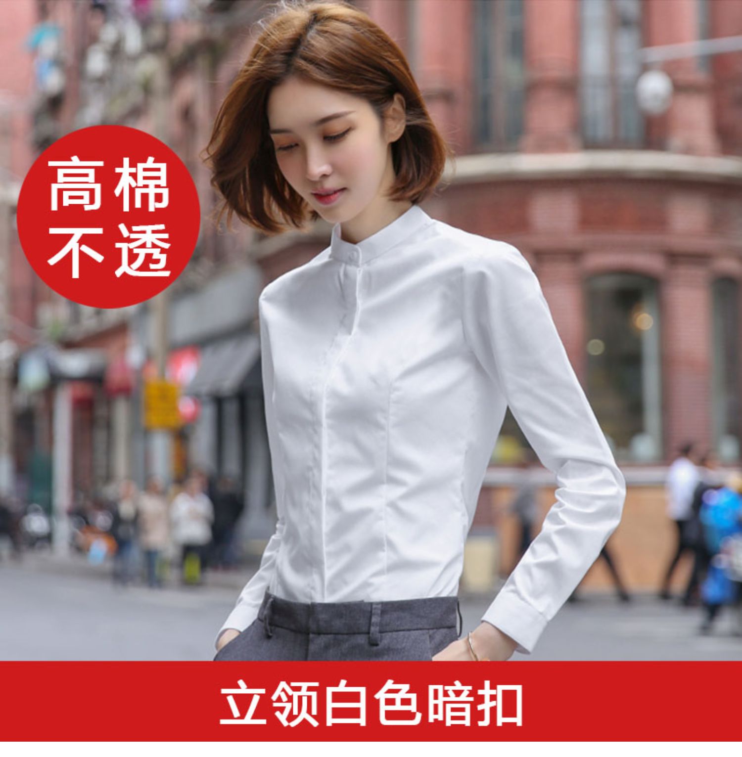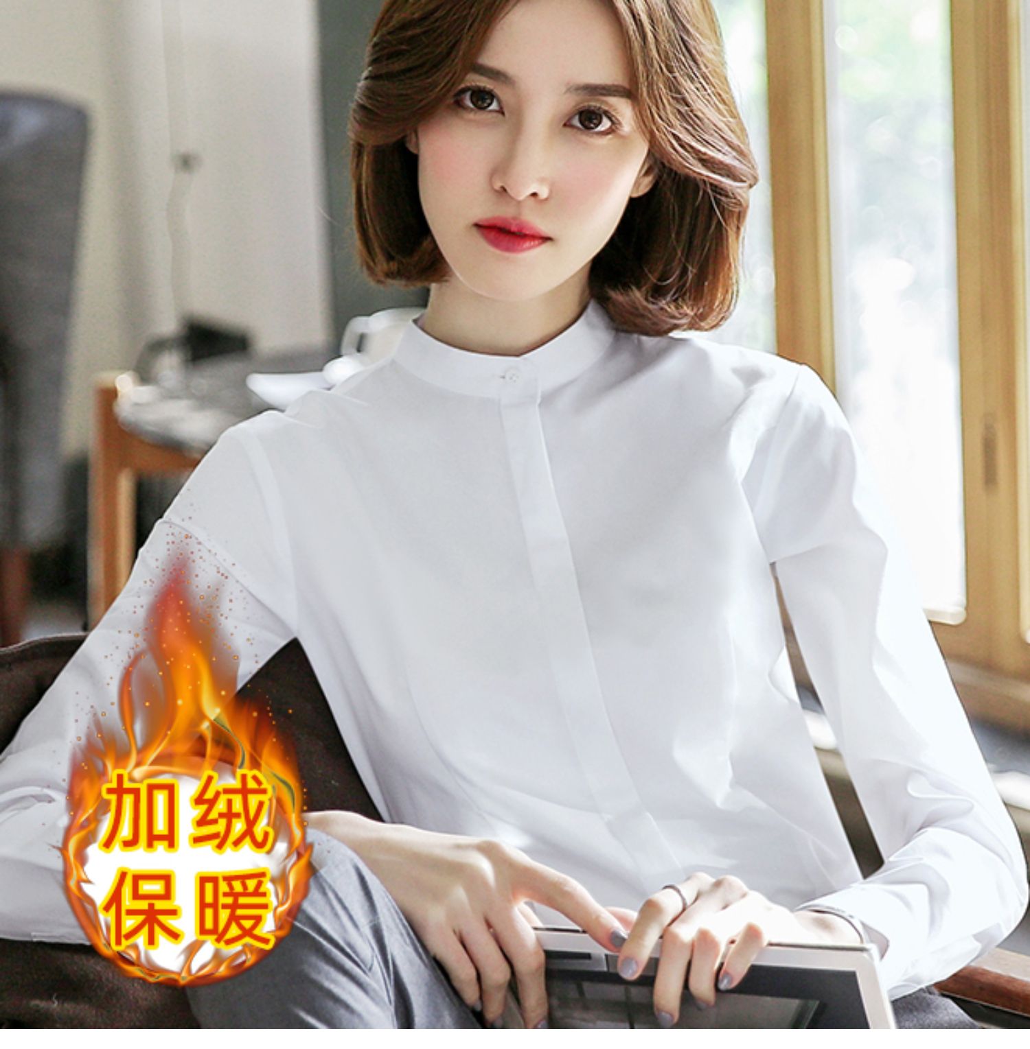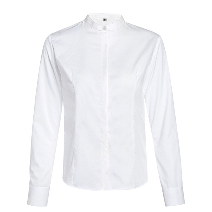 立領襯衫女春秋長袖職業正裝白色氣質內搭通勤工作服冬季加絨襯衣