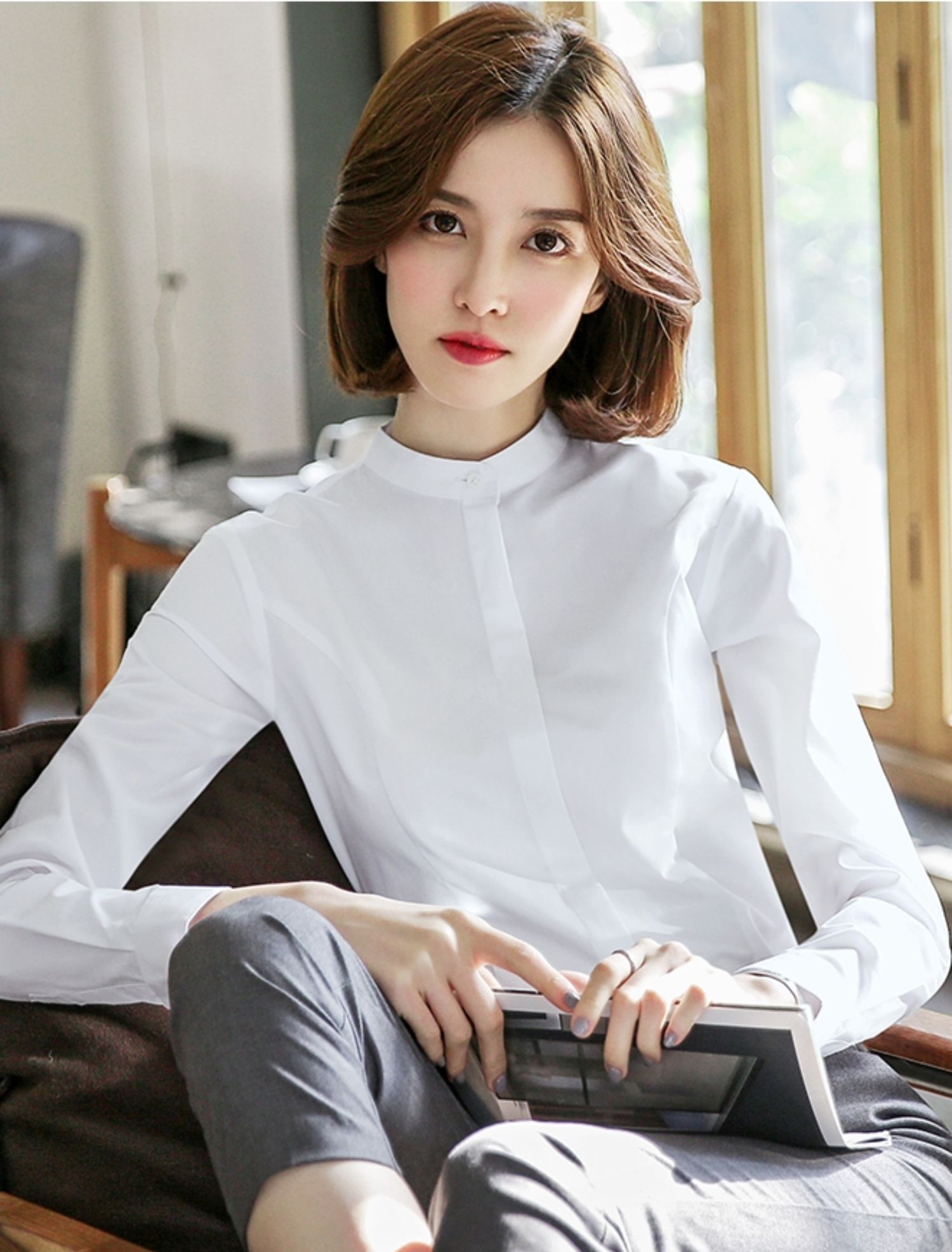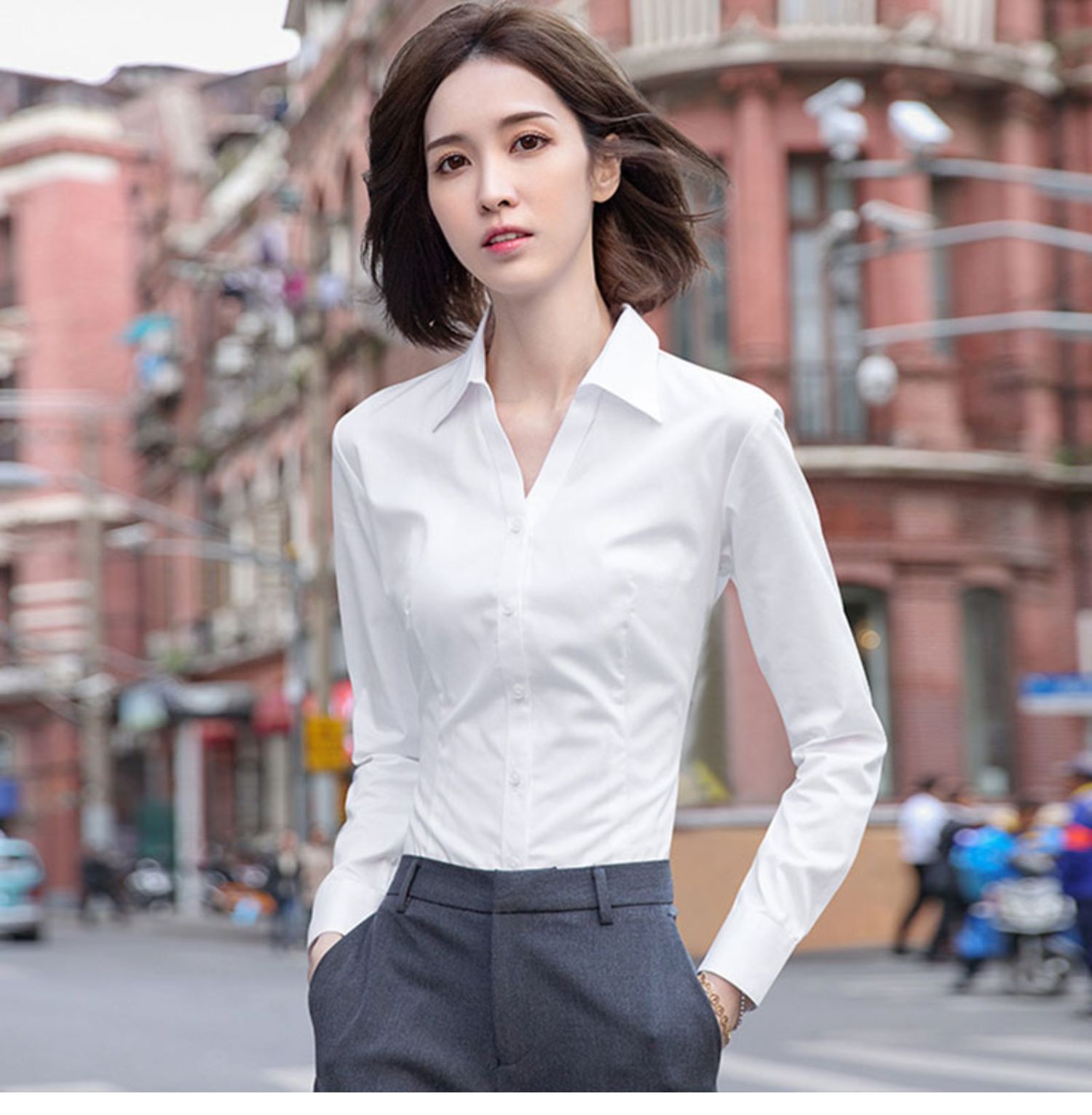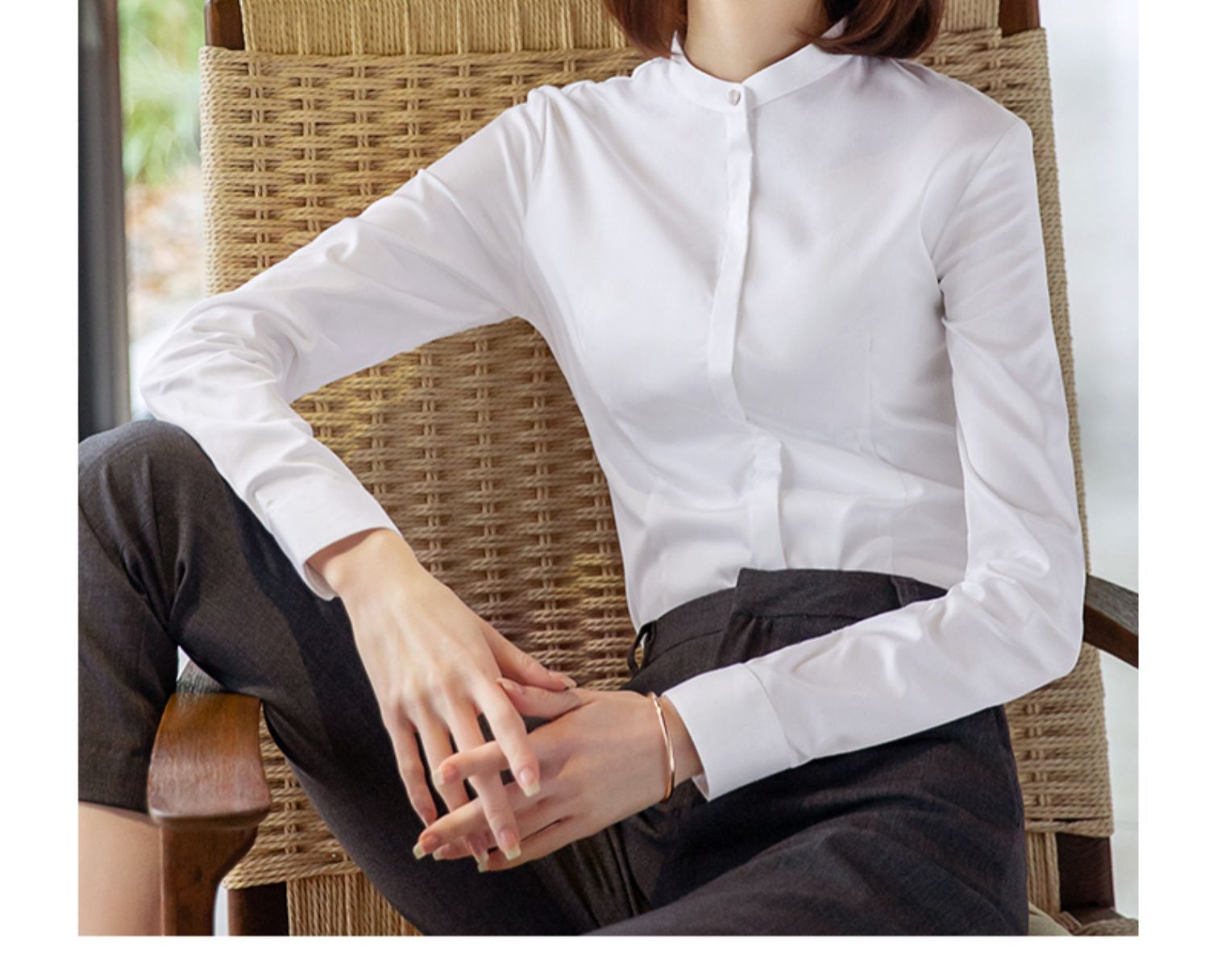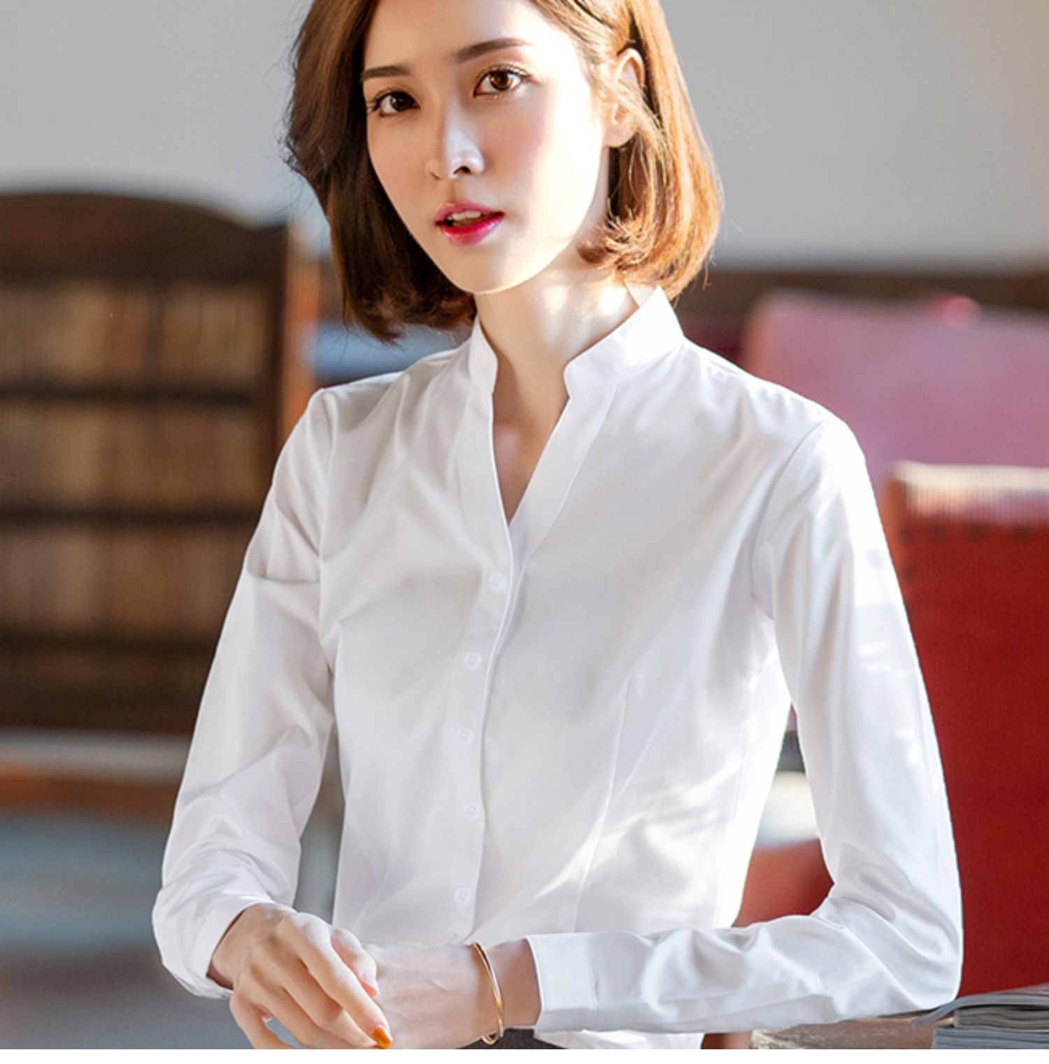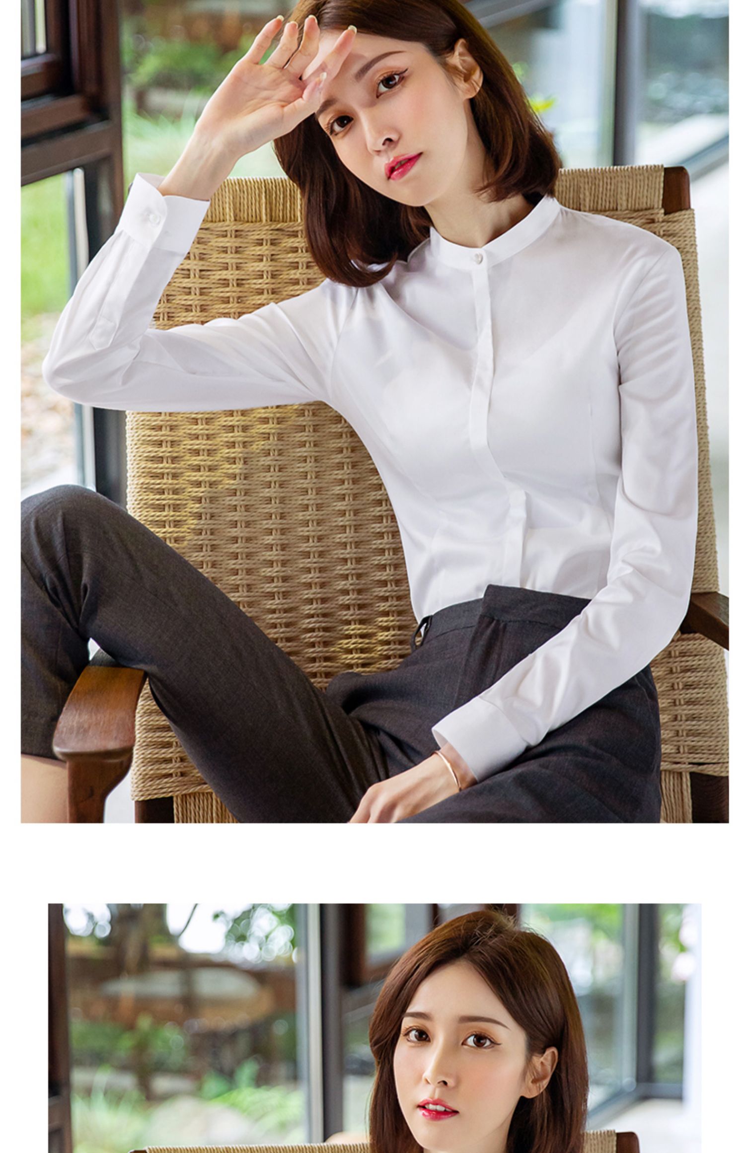立領襯衫女春秋長袖職業正裝白色氣質內搭通勤工作服冬季加絨襯衣