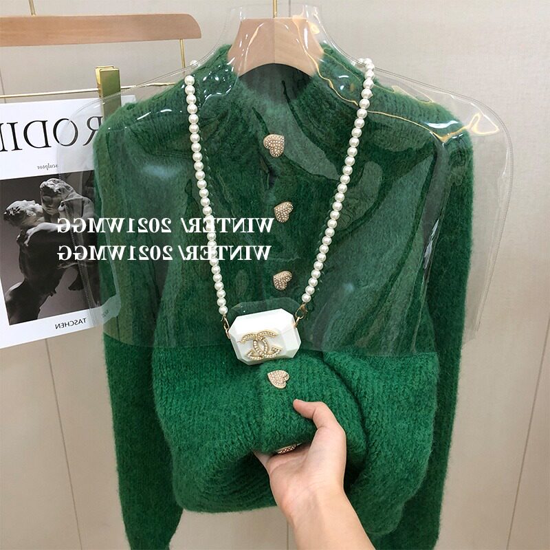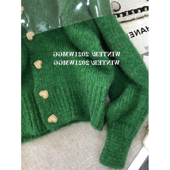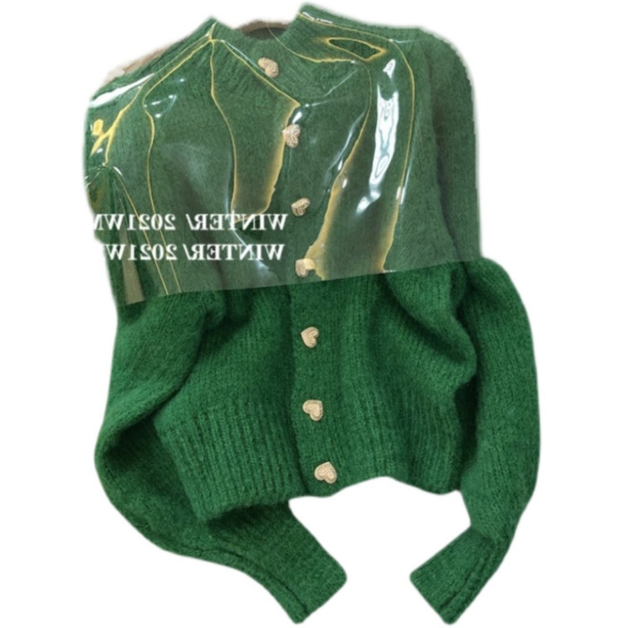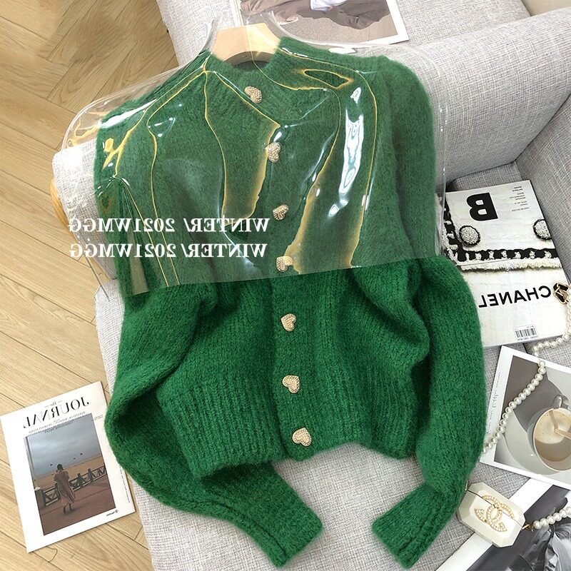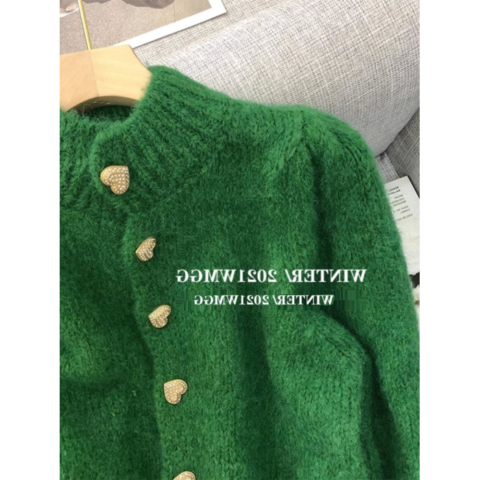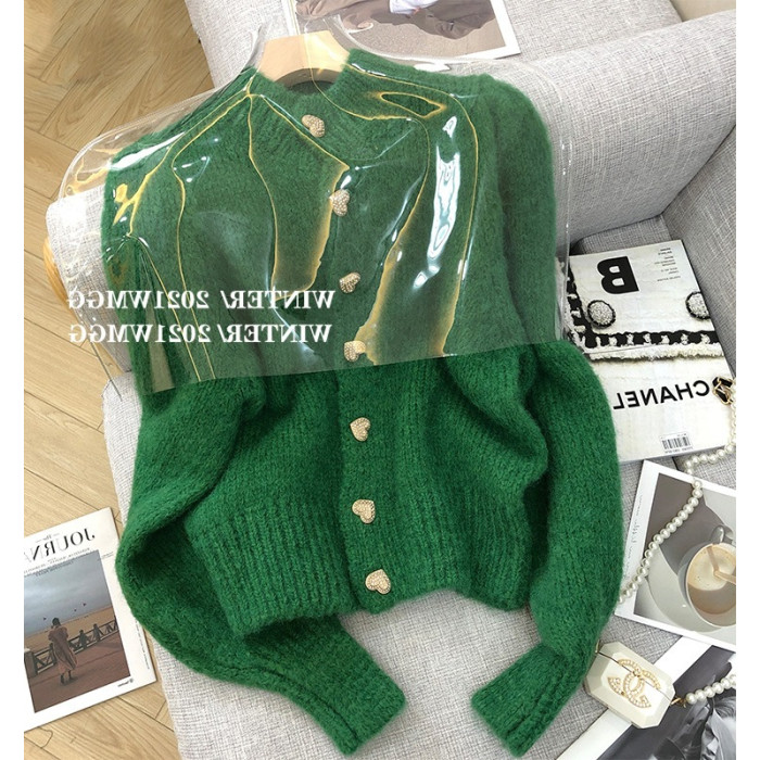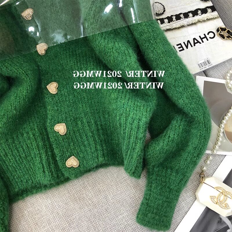 綠色毛衣外套女秋冬寬松設計感高級愛心短款針織開衫上衣寬松針織
