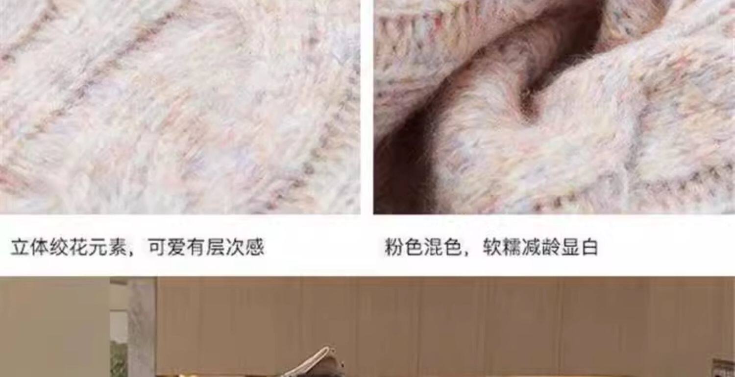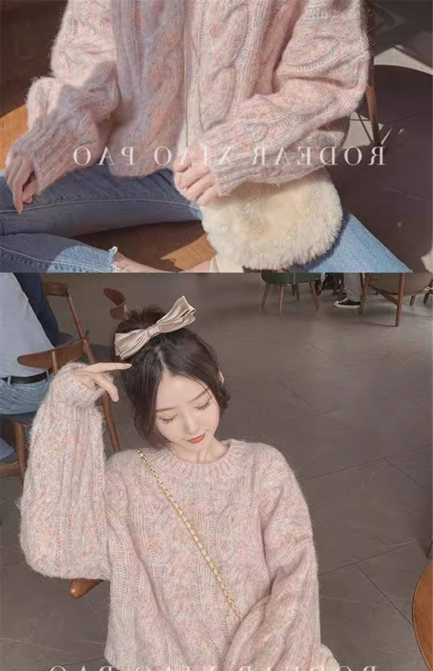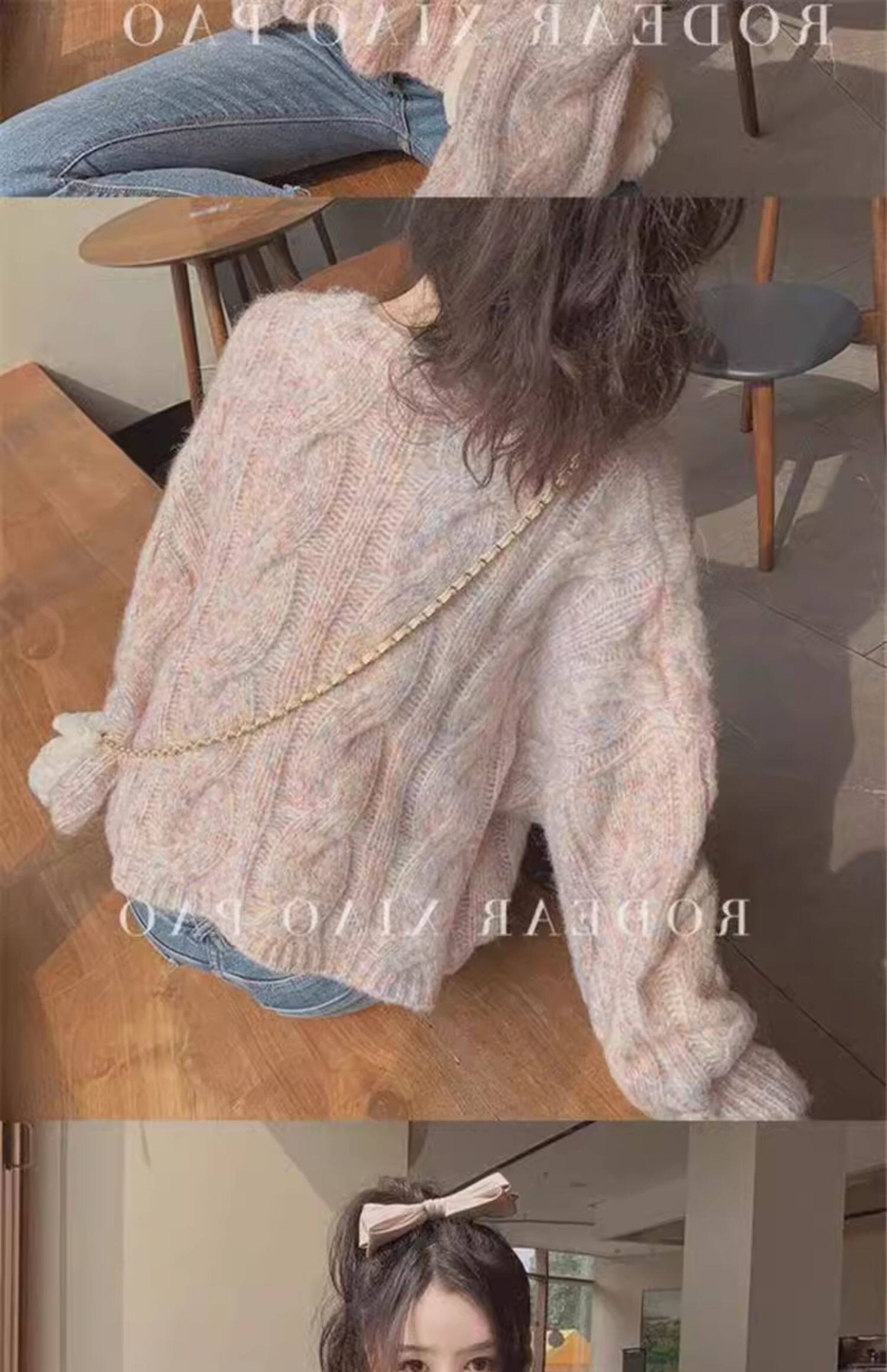 粉色溫柔系短款毛衣女2024新款秋冬甜美寬松外穿慵懶風麻花針織衫