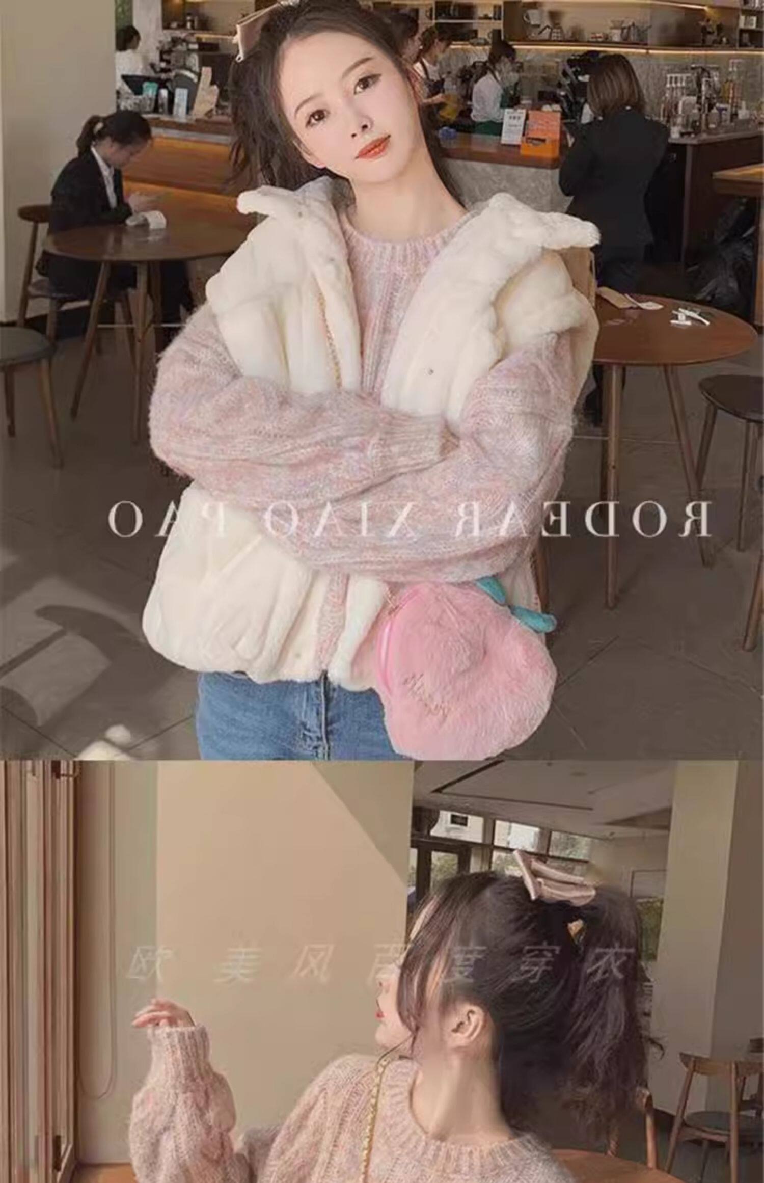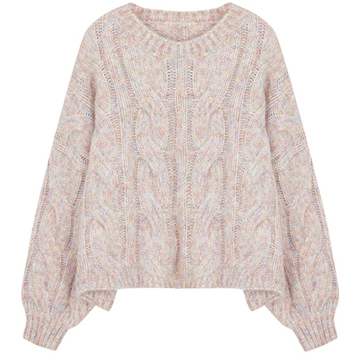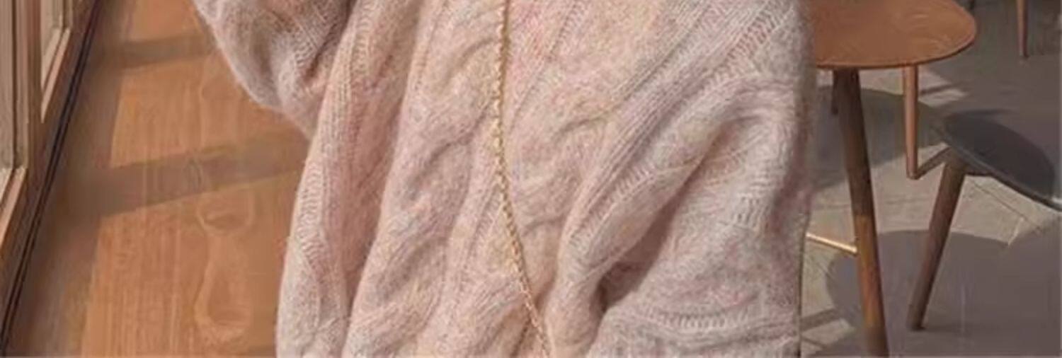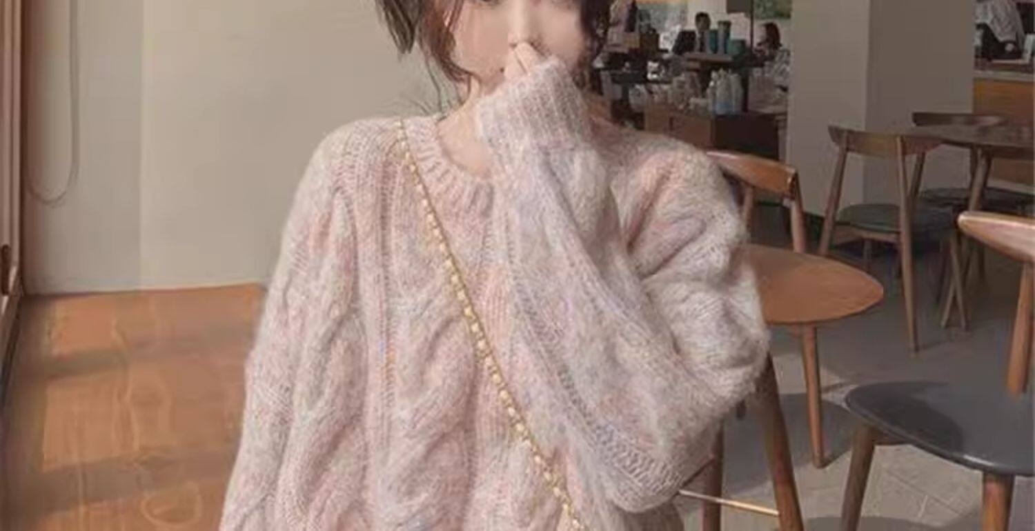 粉色溫柔系短款毛衣女2024新款秋冬甜美寬松外穿慵懶風麻花針織衫