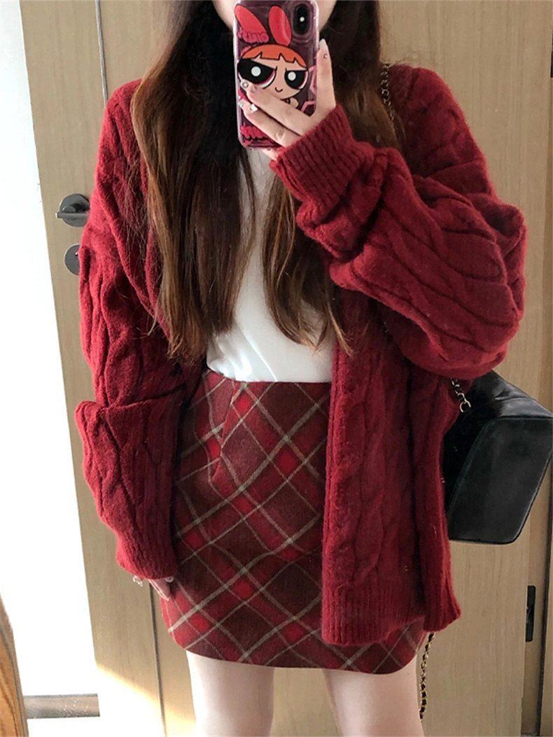 慵懶風過年新年紅色毛衣外套女秋冬季2025新款高級感針織開衫上衣